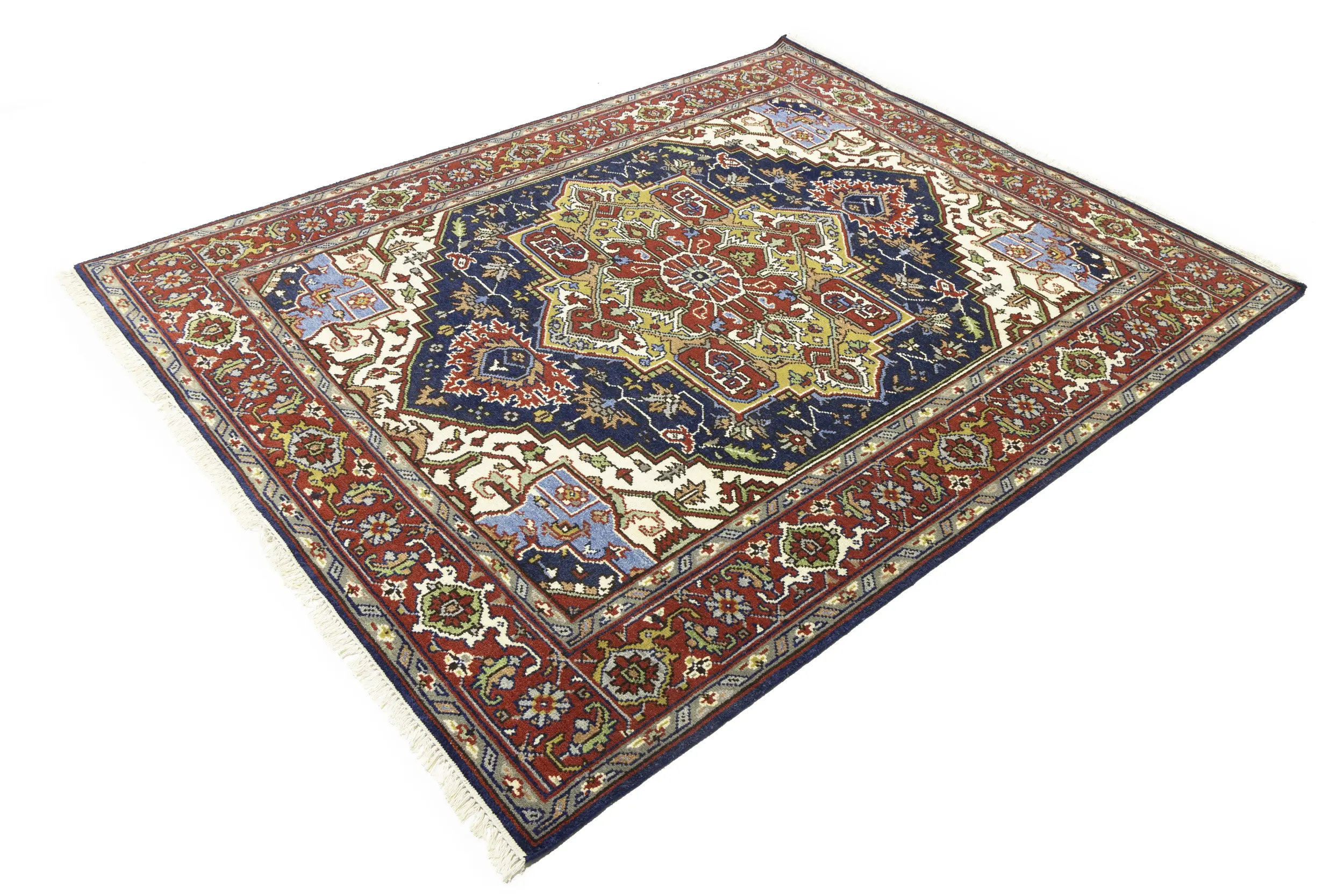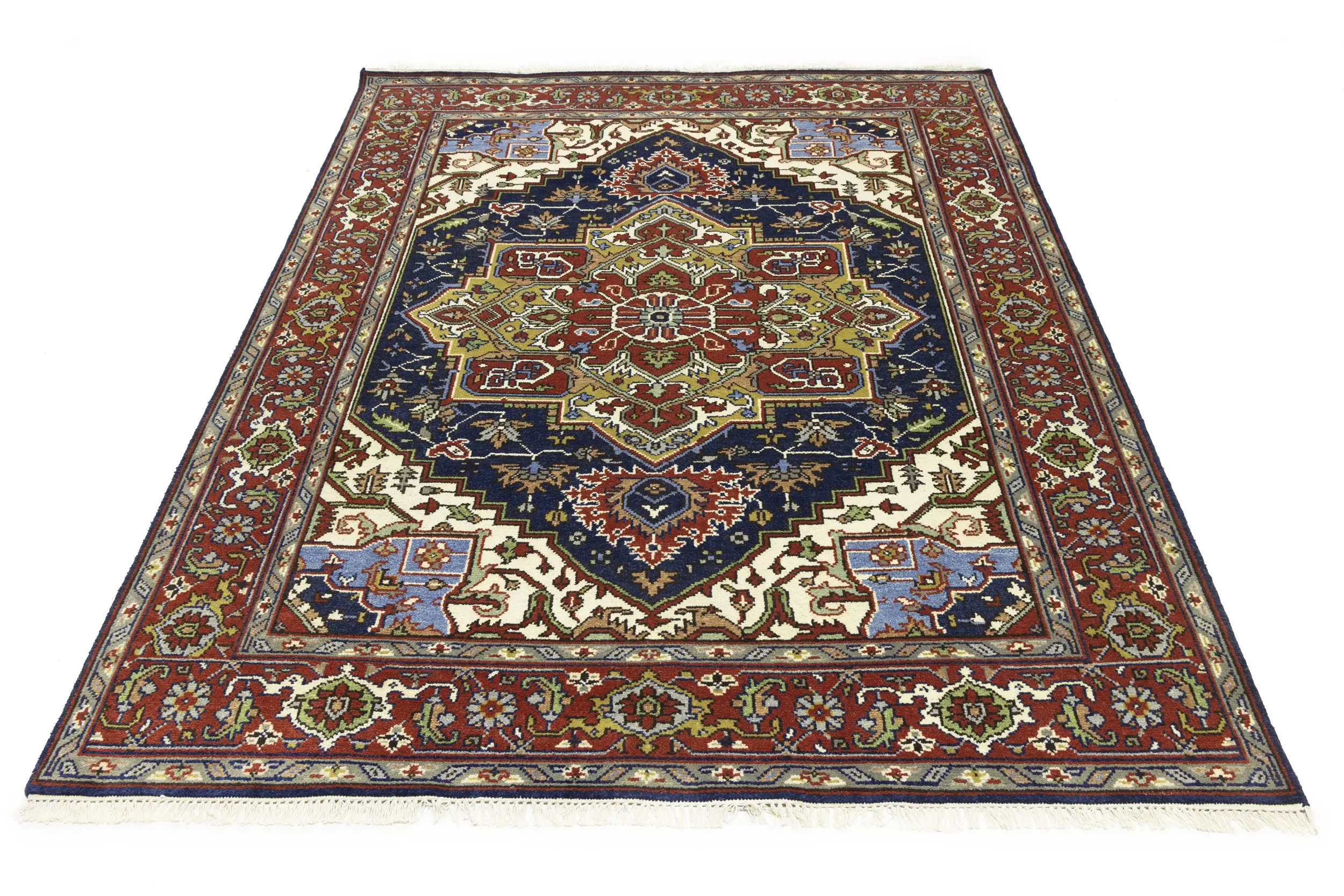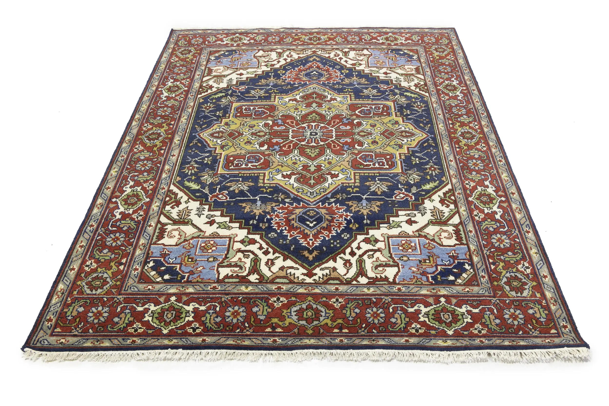 Dark Navy Geometric 8X10 Heriz Serapi Oriental Rug