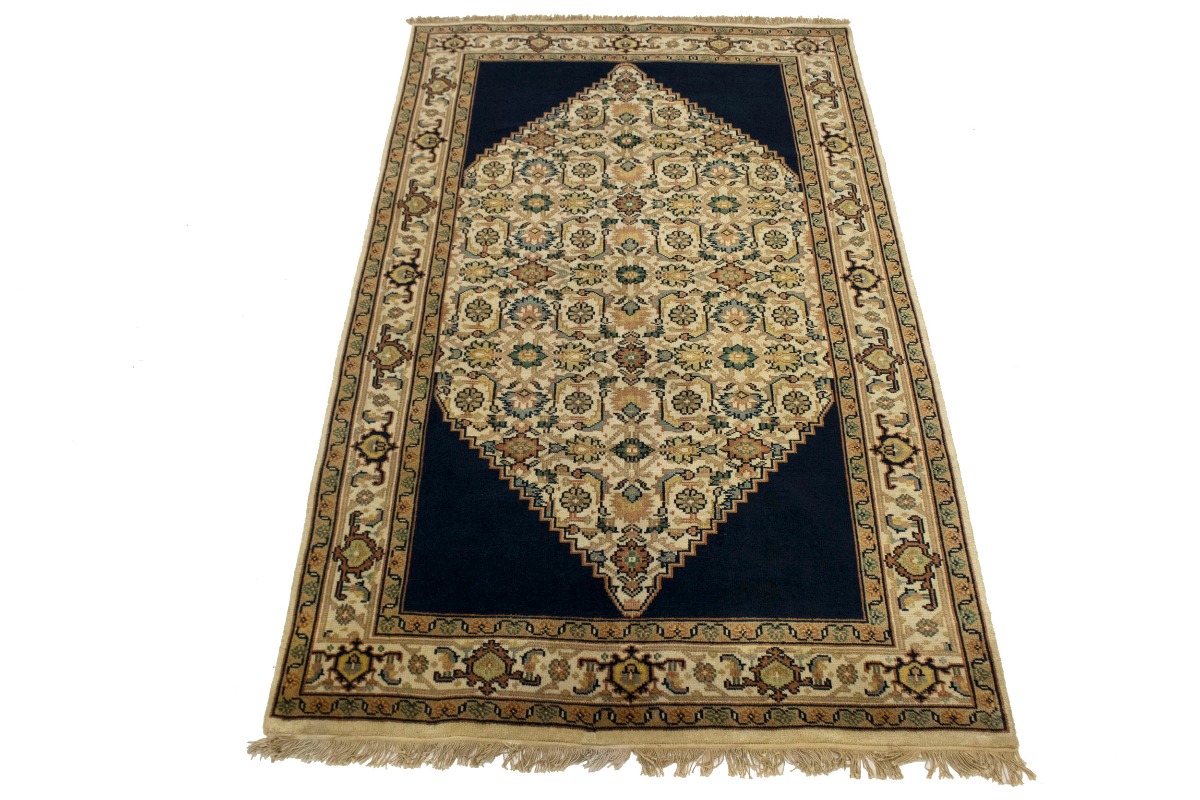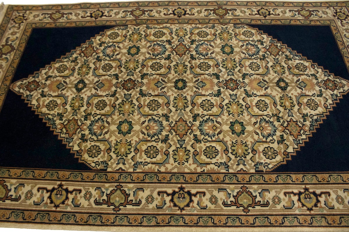 Dark Navy Geometric Floral 5X8 Indo-Bidjar Oriental Rug