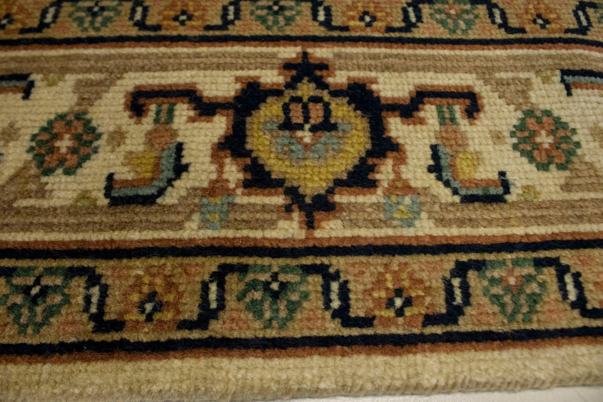 This authentic 5X8 new Oriental rug was masterly knotted by the hands of weavers inspired by a variety of wonderful artistic designs, to recreate the aged look of the original piece with a richness of color and intricate patterned background field. What set this vintage style Oriental area rug from the others are the material and dye used (wool pile and cotton foundation), knot count, antique designs, fantastic grades, and its regional historical connection: it has deep roots, from the story of the people who produced it to the meaning of the symbols and colors displayed across its canvas that have been praised for centuries. This Indian home décor carpet will be completely cozy and inviting that never will go out of style! Also, this Oriental rug would be among your most valuable treasures, it is a great investment that accrues value over time, and it will last for generations because was woven with high-quality, all-natural wool. Environmentally friendly, opulent yet affordable; this rug/runner will give you a thorough amount of character to help define your living space with luxury and warmth that will capture the eyes and attention of your audience (homeowners, designers, decorators, family and friends). RT-4126