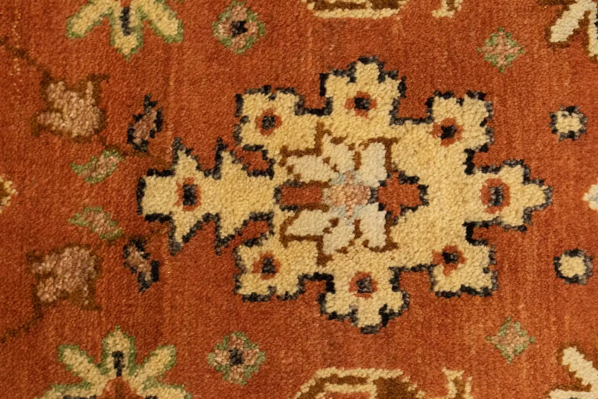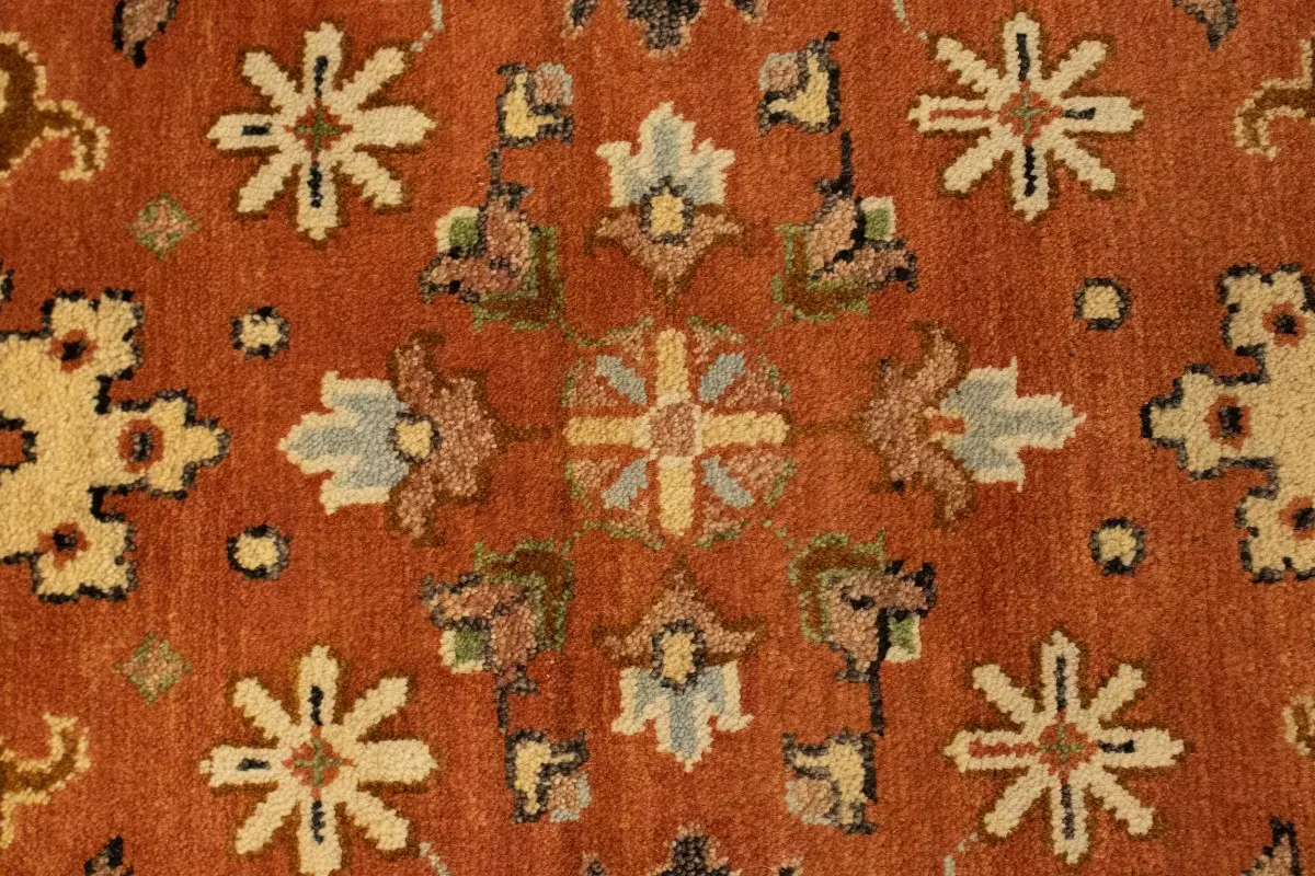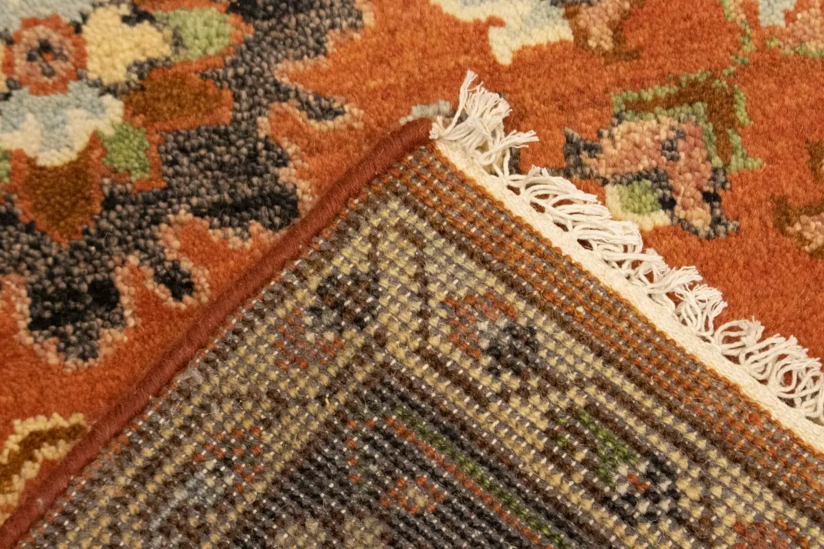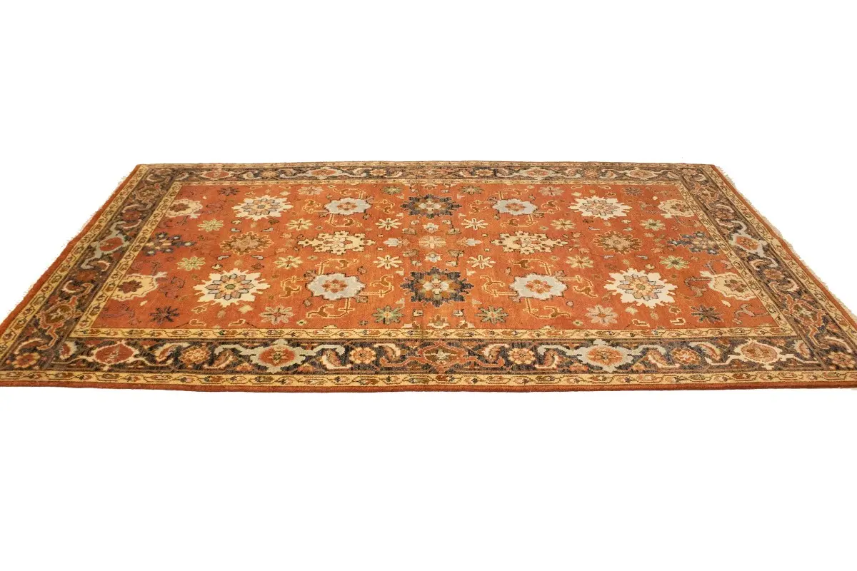 Handmade 6X10 orange Oriental rug made with natural dyes (fine wool pile and cotton foundation), superior knot count, and appealing ancient designs. This Oriental rug never will go out of style and would be among your most valuable treasures.