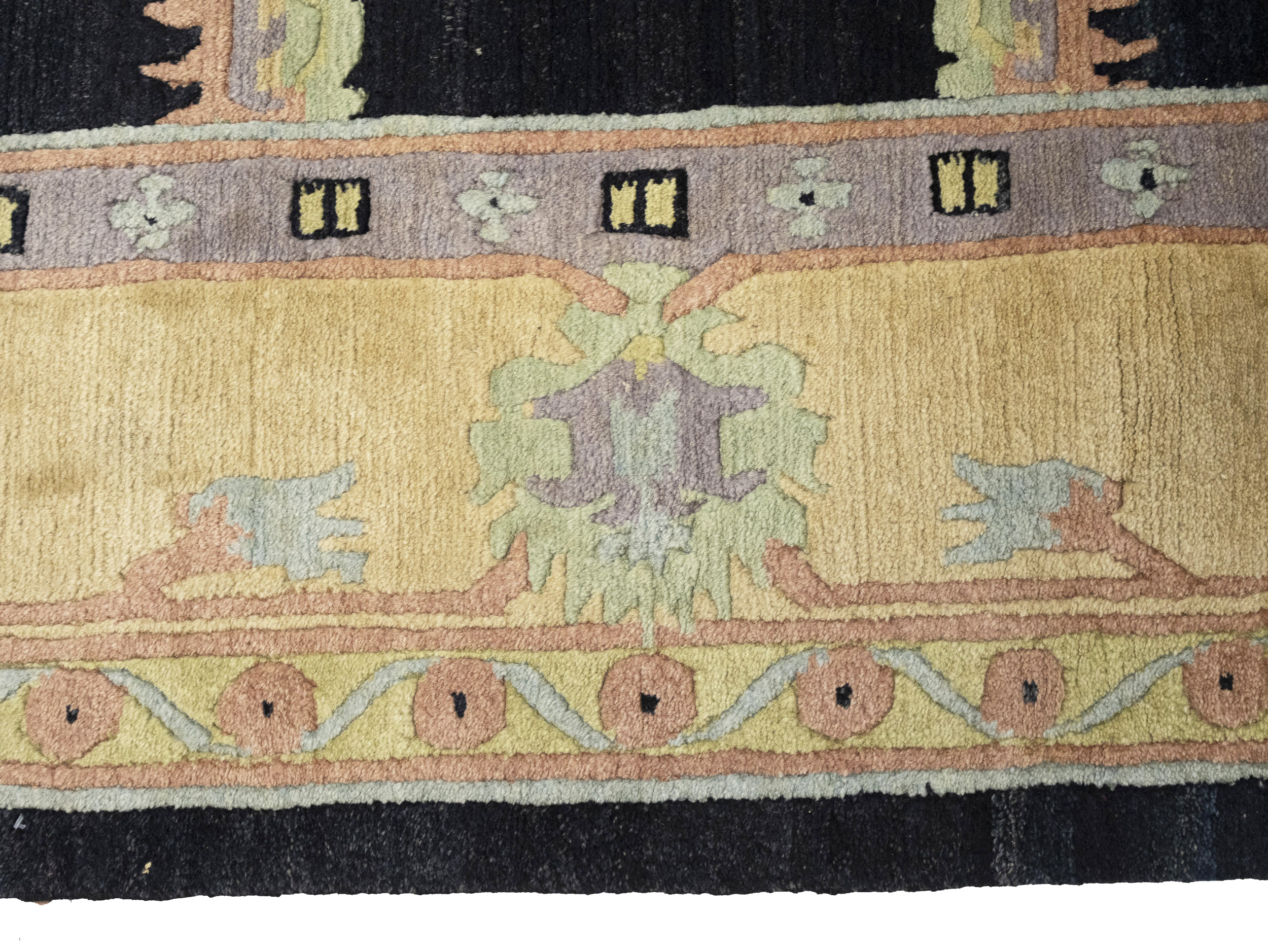 This genuine 8X11 dark purple-navy new Oriental rug was masterly knotted by the hands of weavers inspired by a variety of wonderful artistic designs, to recreate the aged look of the original piece with a richness of color and intricate patterned background field. What set this vintage style Oriental area rug from the others are the material and dye used (wool pile and cotton foundation), knot count, antique designs, fantastic grades, and its regional historical connection: it has deep roots, from the story of the people who produced it to the meaning of the symbols and colors displayed across its canvas that have been praised for centuries. This Indian home décor carpet will be completely cozy and inviting that never will go out of style! Also, this Oriental rug would be among your most valuable treasures, it is a great investment that accrues value over time, and it will last for generations because was woven with high-quality, all-natural wool. Environmentally friendly, opulent yet affordable; this rug/runner will give you a thorough amount of character to help define your living space with luxury and warmth that will capture the eyes and attention of your audience (homeowners, designers, decorators, family and friends).