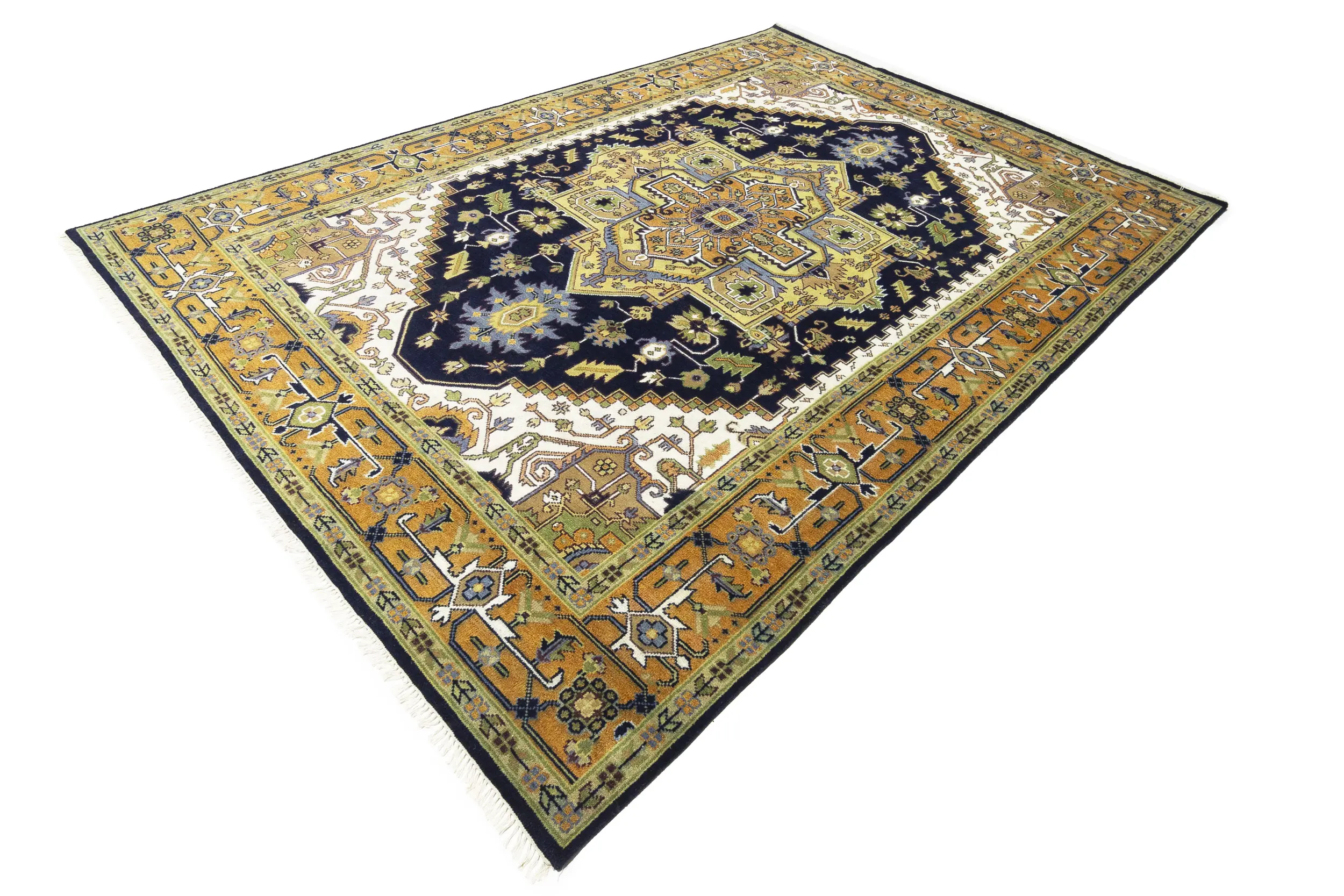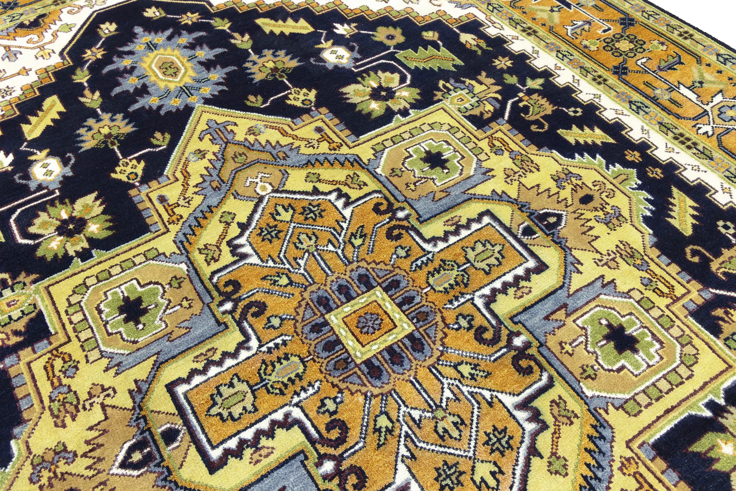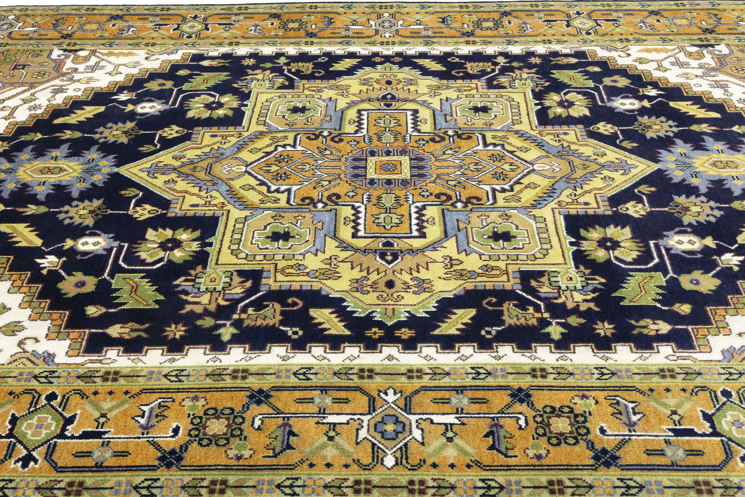 This original 10X13 purple-navy new Oriental rug was finely knotted by the hands of weavers influenced by a variety of amazing artistic designs, to recreate the aged look of the exceptional piece with a richness of color and embellished background field. What set this vintage style Oriental area rug from the others are the material and dye used (wool pile and cotton foundation), knot count, antique designs, fantastic grades, and its regional historical connection: it has deep roots, from the story of the people who produced it to the meaning of the symbols and colors displayed across its canvas that have been praised for centuries. This Indian home décor carpet will be completely cozy and inviting that never will go out of style! Also, this Oriental rug would be among your most valuable treasures, it is a great investment that increase in value over time, and it will last a lifetime because was woven with high-quality, all-natural wool. Eco-friendly, opulent yet affordable; this rug will give you an extra pop of character to help define your home environment with luxury and warmth that will capture the eyes and attention of your audience (homeowners, designers, decorators, family and friends).