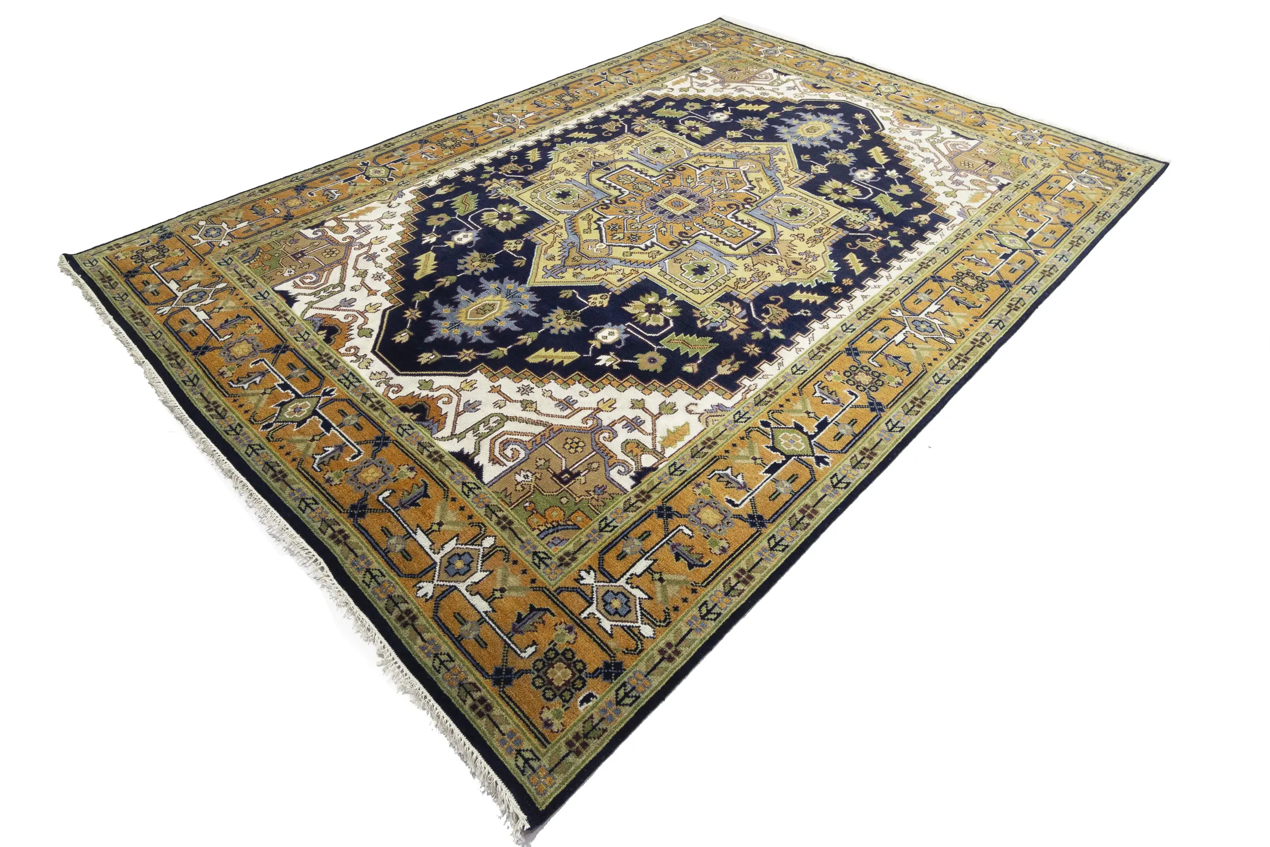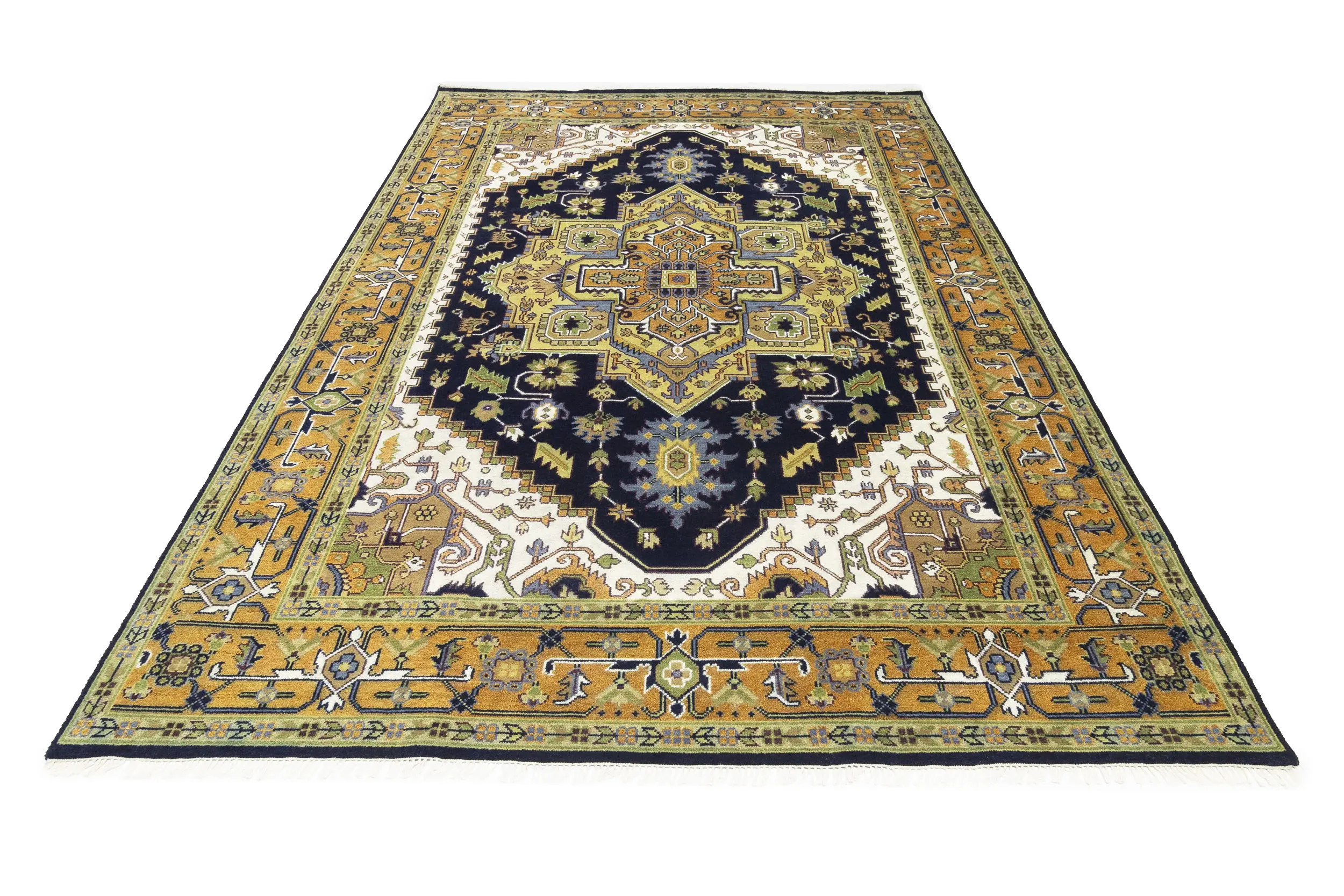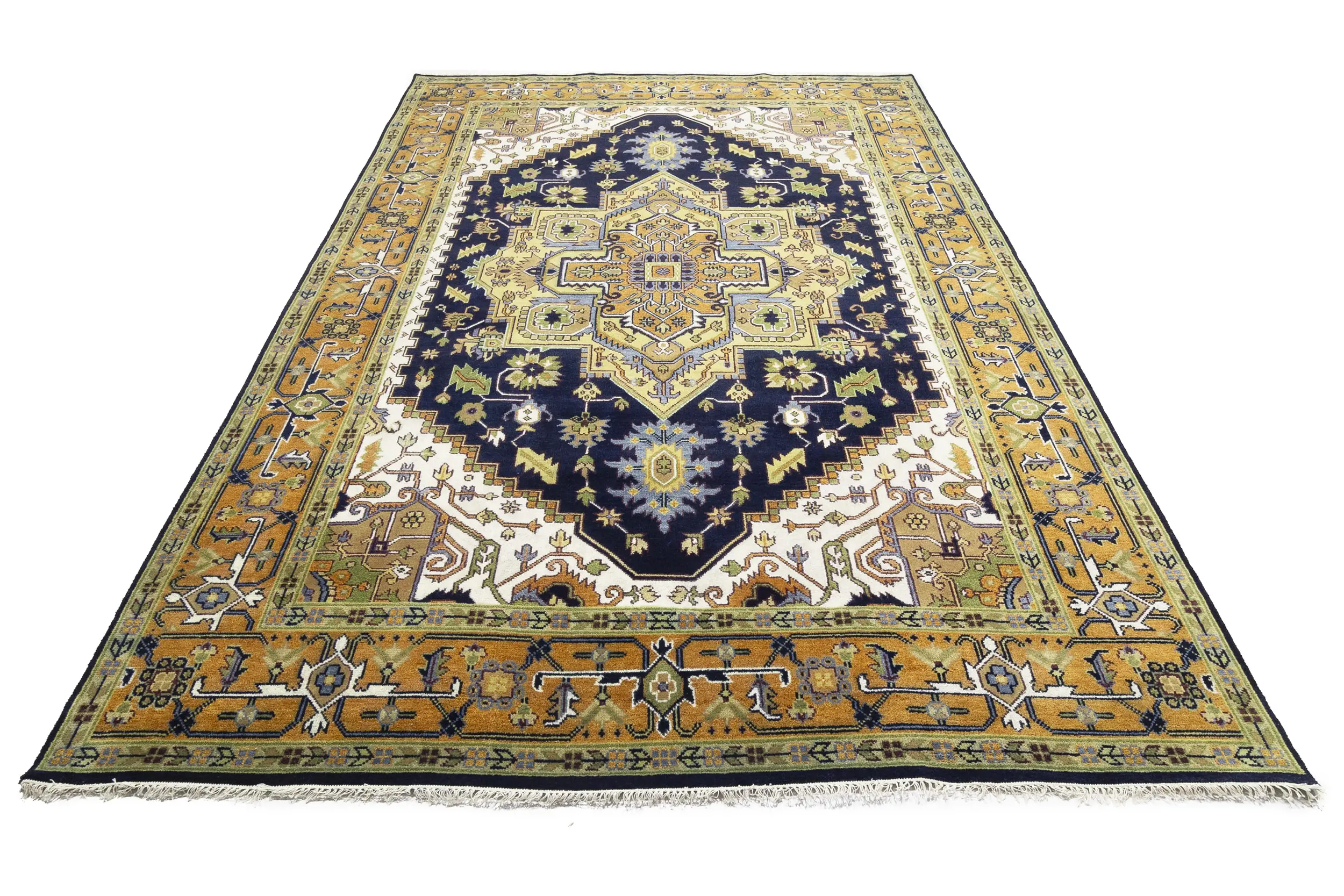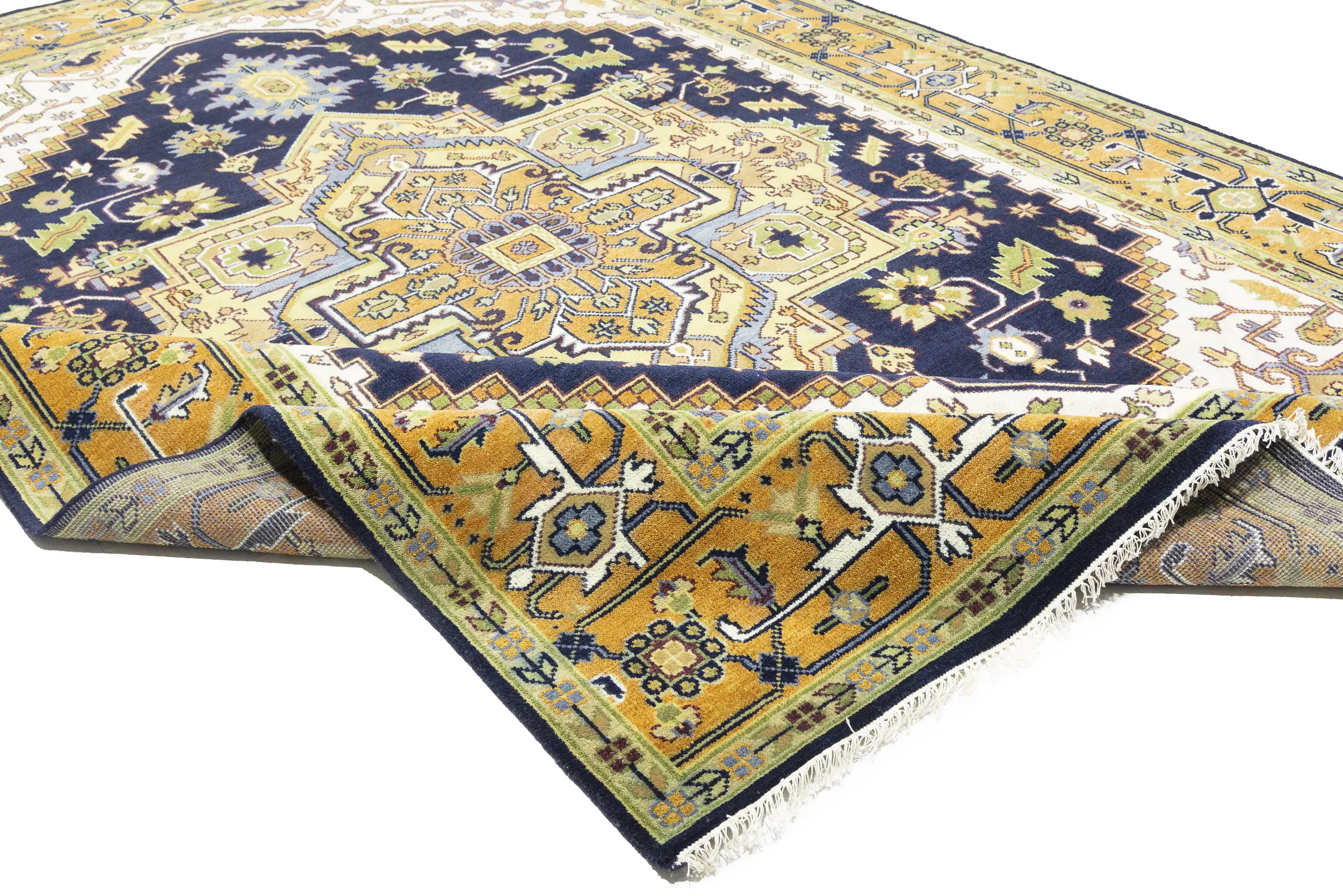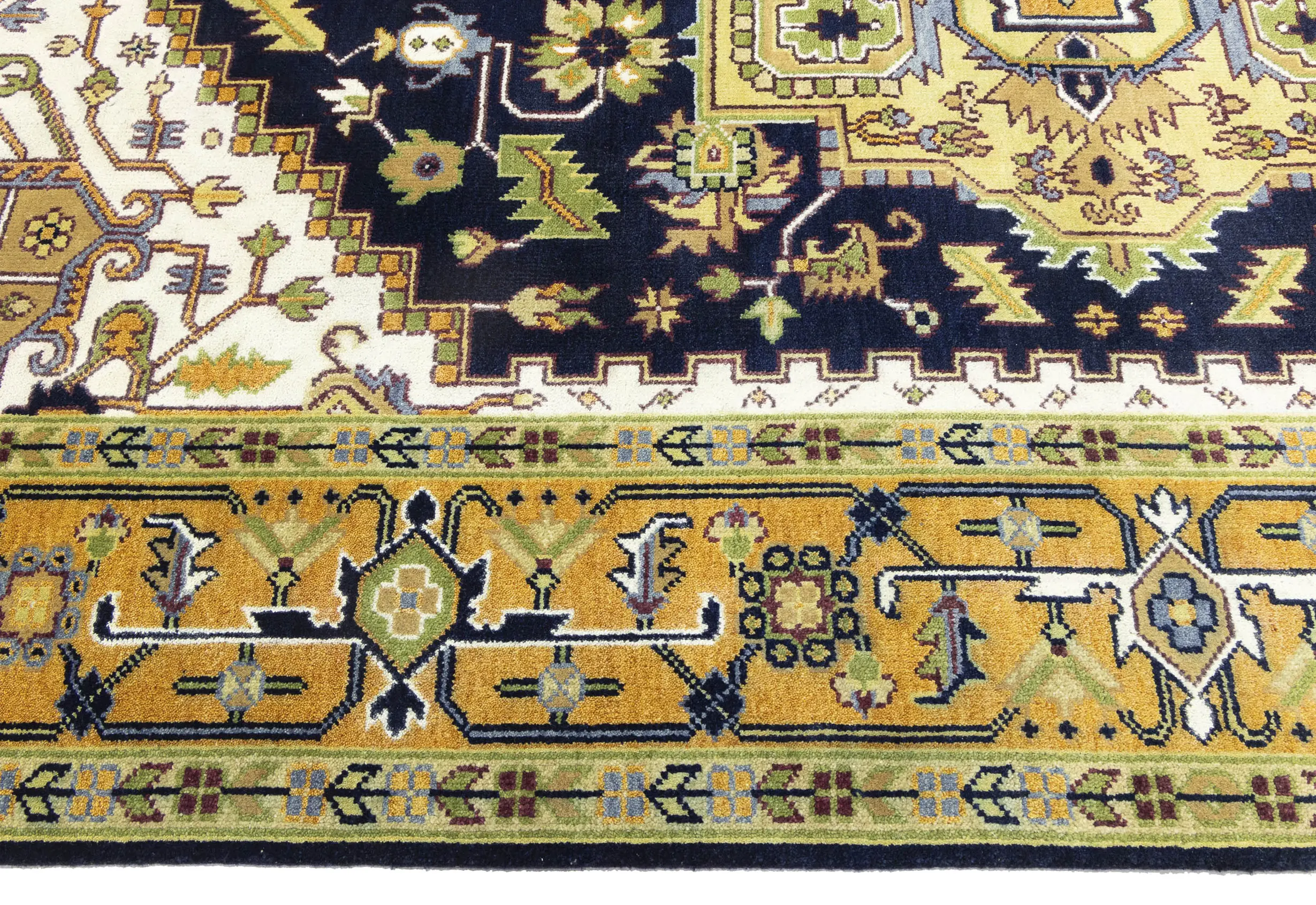 Dark Purple-navy Floral 10X13 Heriz Serapi Oriental Rug