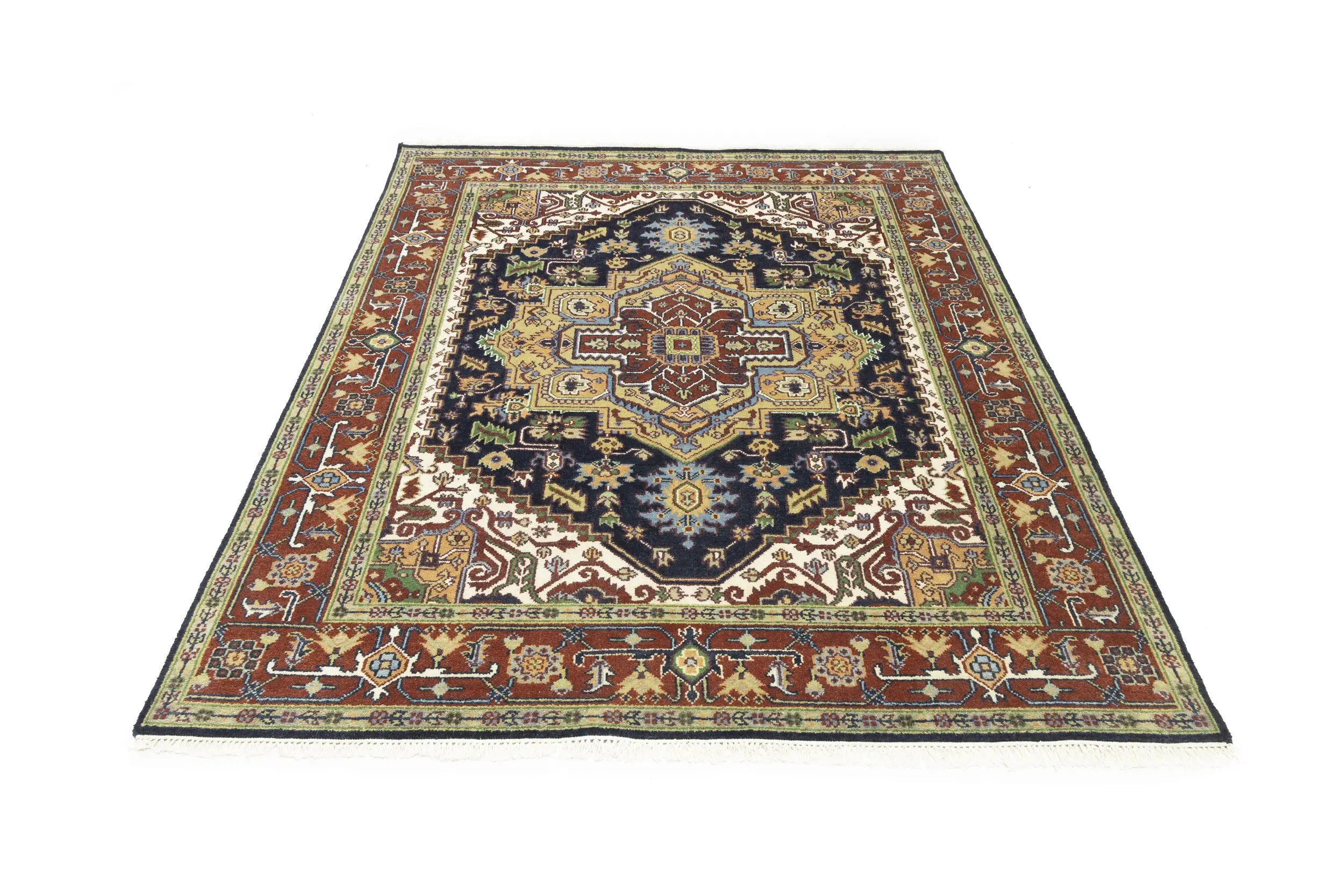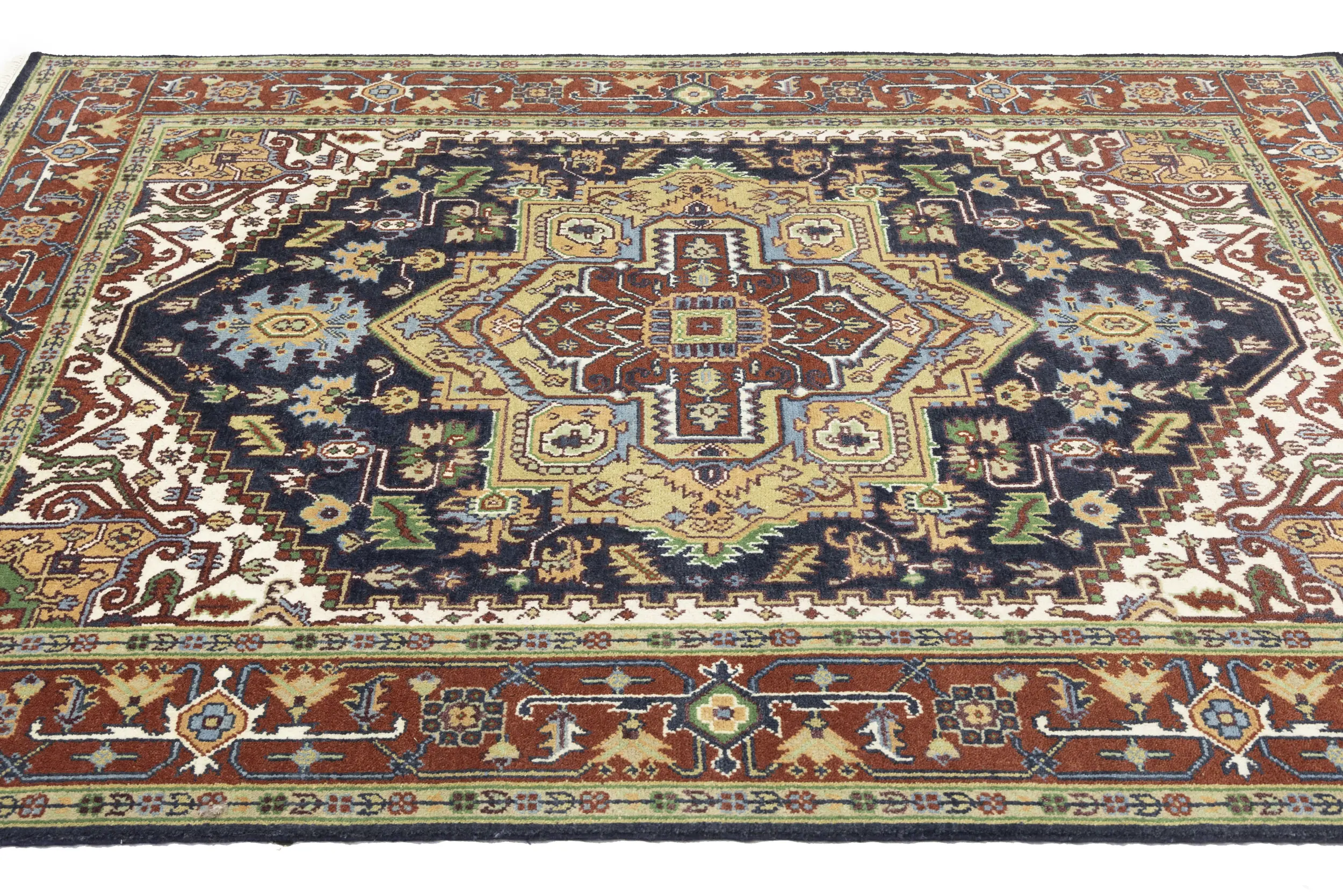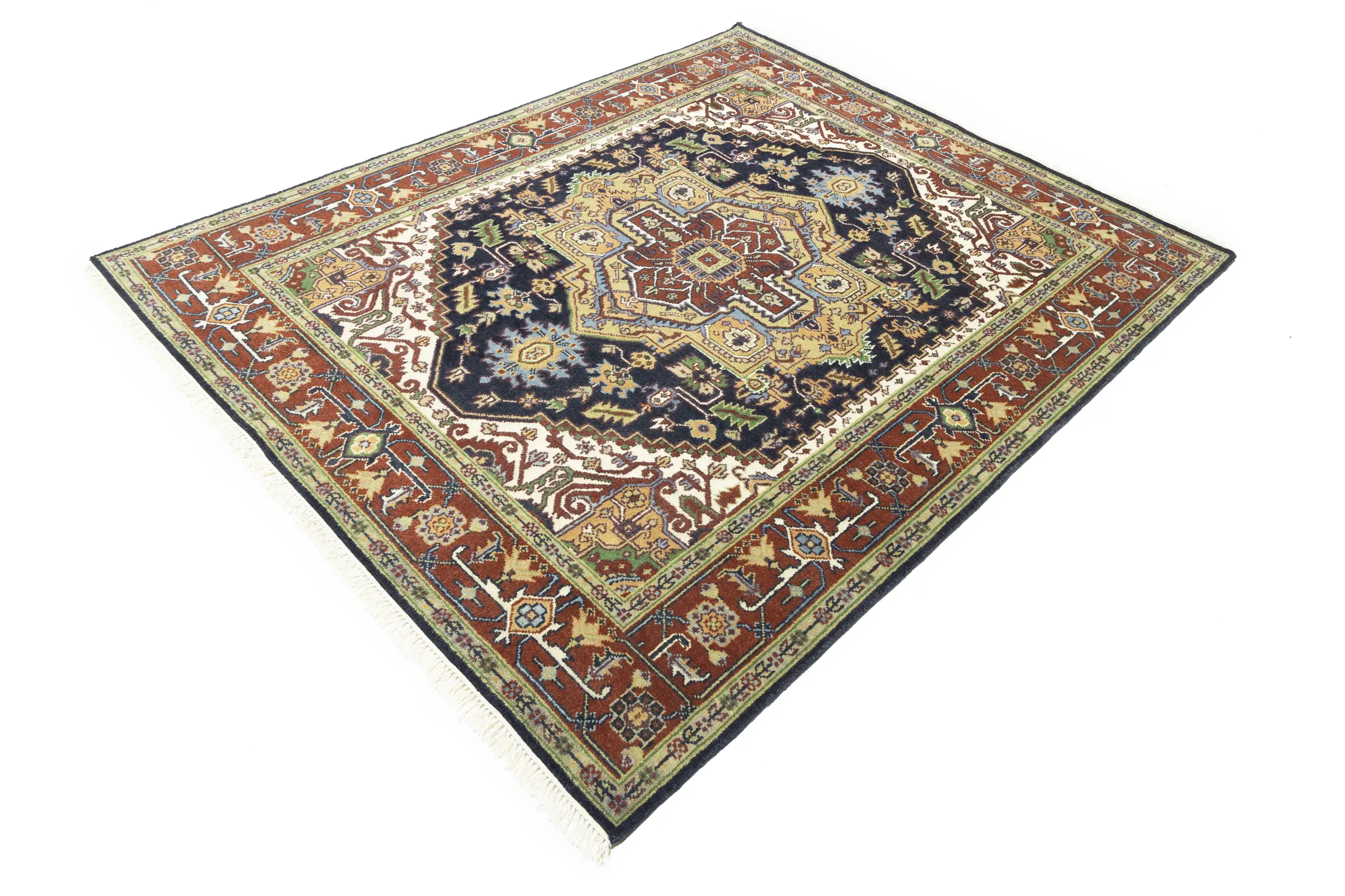 Dark Purple-navy Floral 8X10 Heriz Serapi Oriental Rug