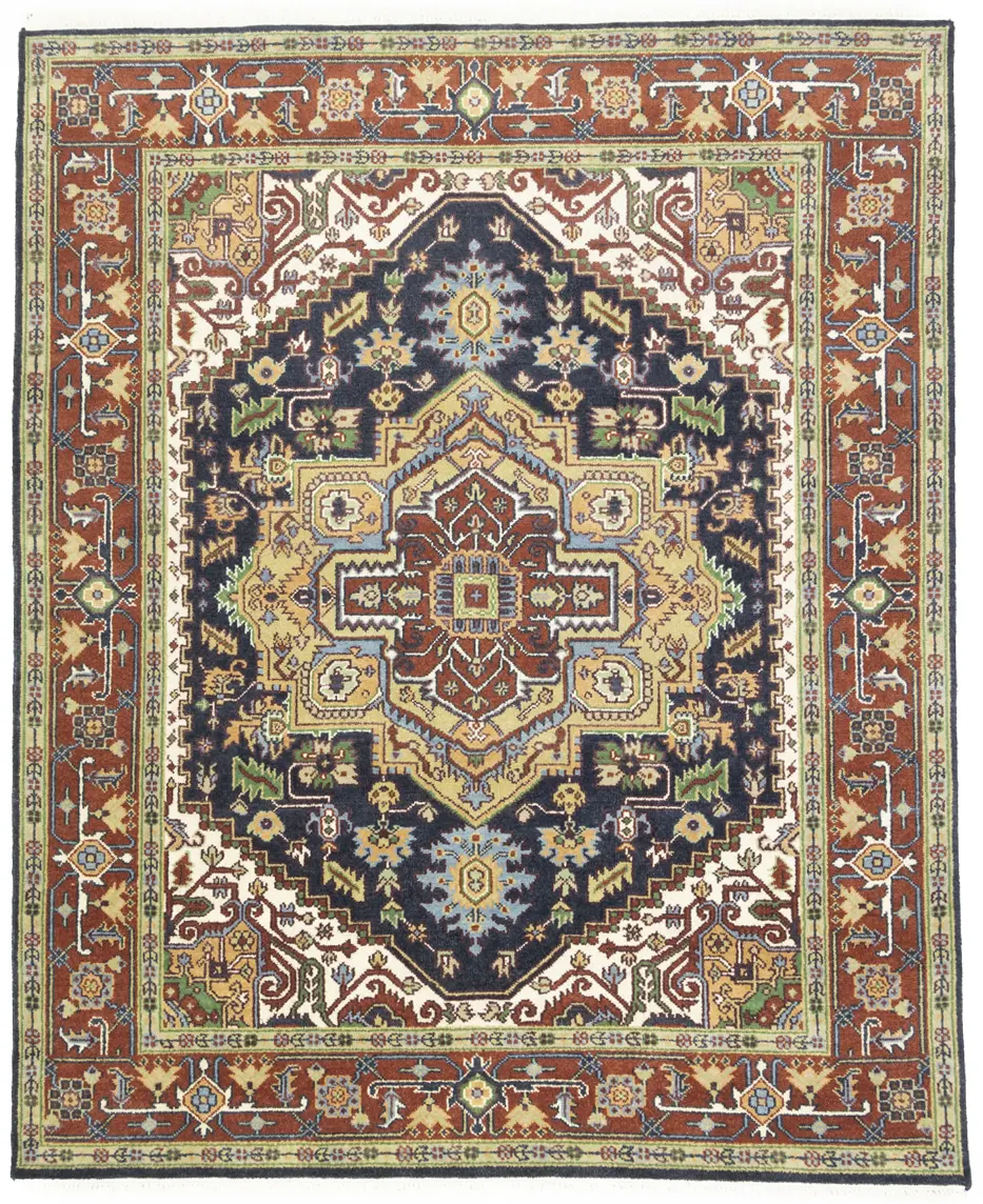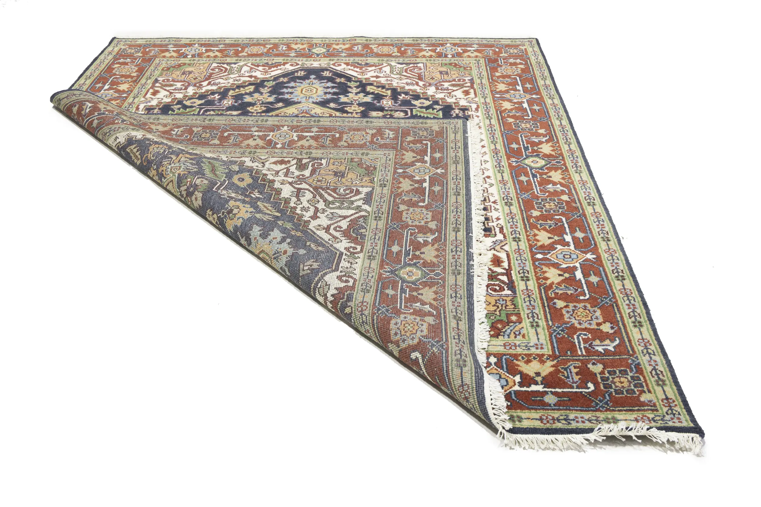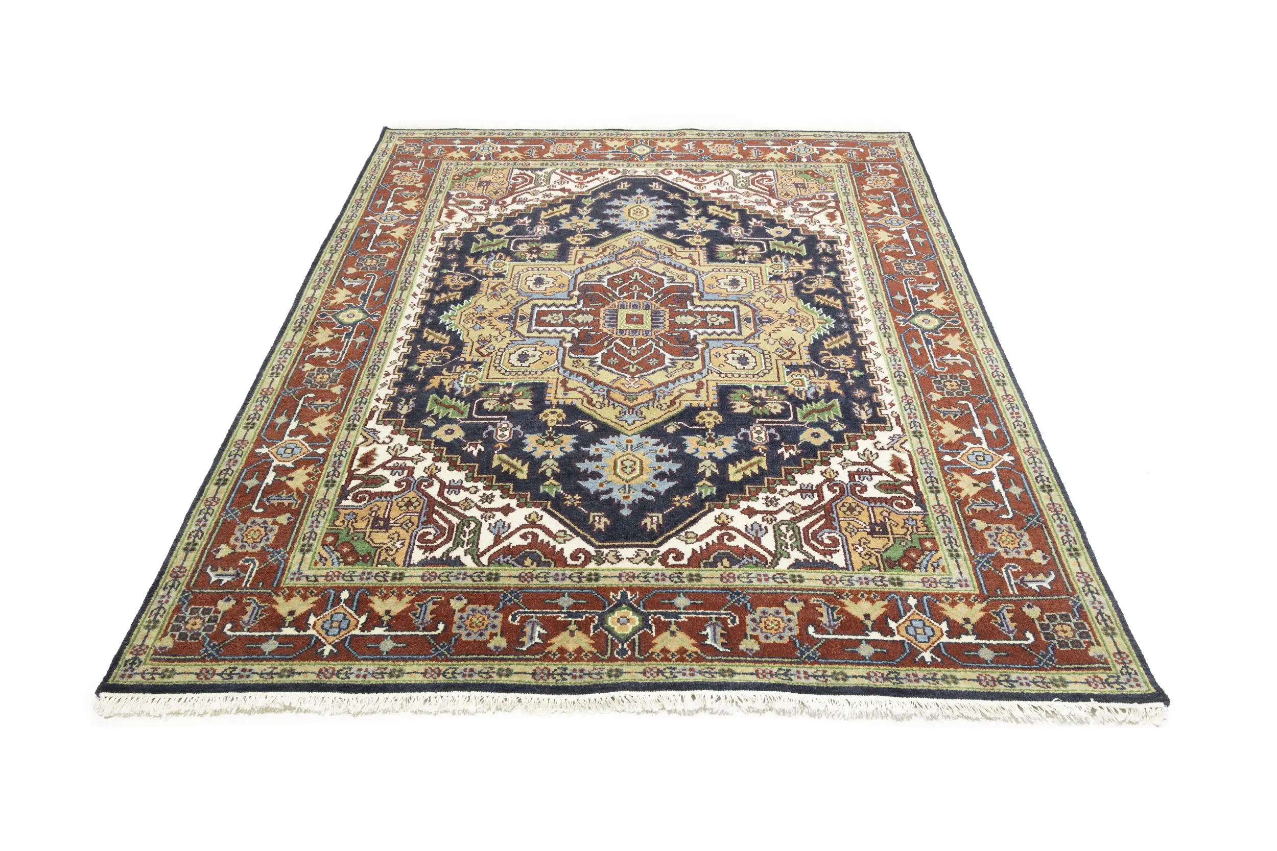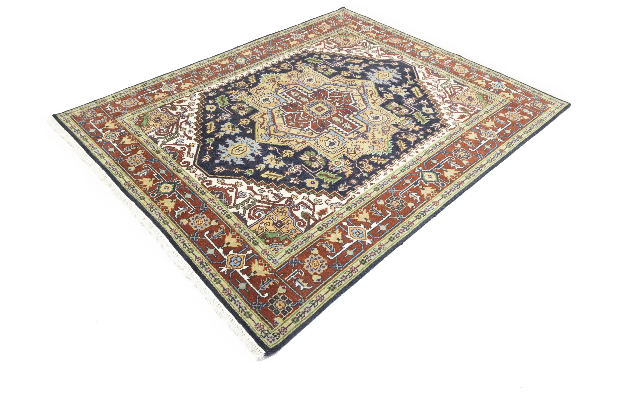 Dark Purple-navy Floral 8X10 Heriz Serapi Oriental Rug