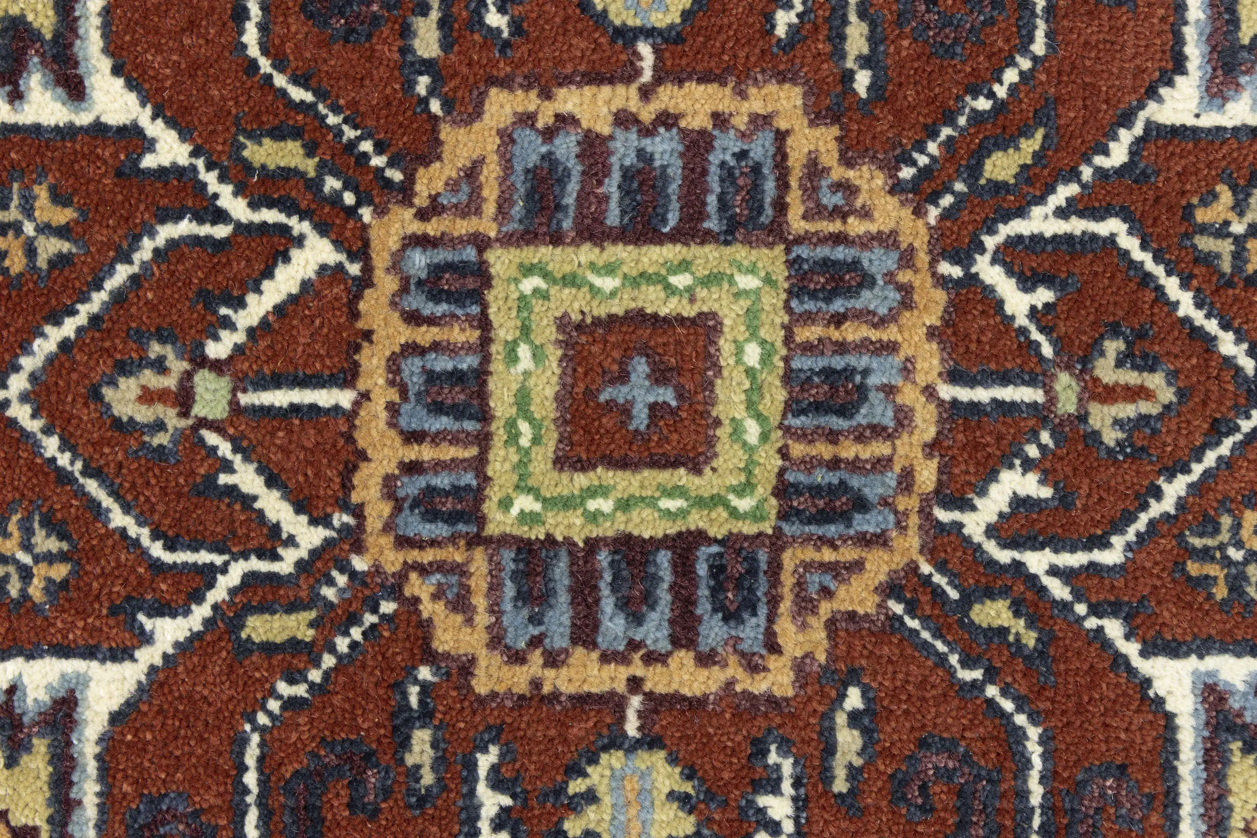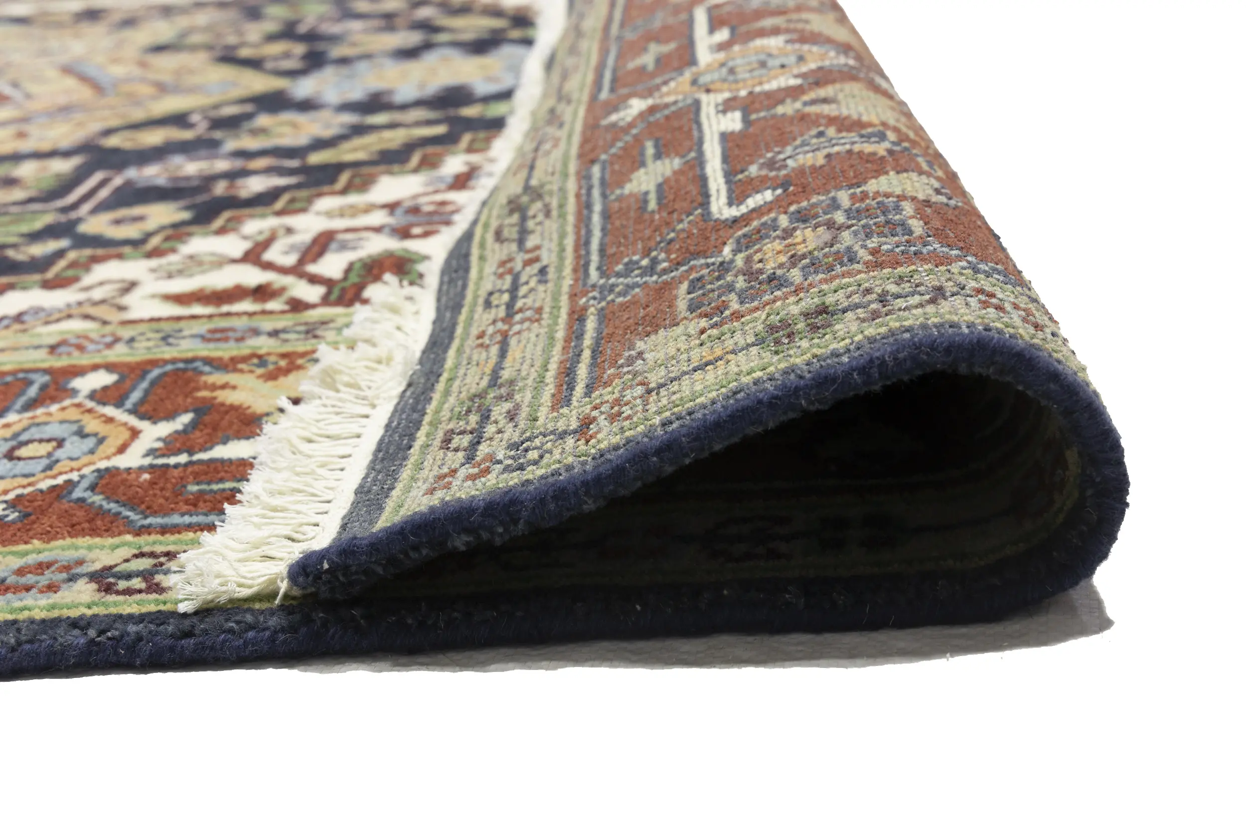 This original 8X10 purple-navy new Oriental rug was finely knotted by the hands of weavers influenced by a variety of amazing artistic designs, to recreate the aged look of the exceptional piece with a richness of color and embellished background field. What set this vintage style Oriental area rug from the others are the material and dye used (wool pile and cotton foundation), knot count, antique designs, fantastic grades, and its regional historical connection: it has deep roots, from the story of the people who produced it to the meaning of the symbols and colors displayed across its canvas that have been praised for centuries. This Indian home décor carpet will be completely cozy and inviting that never will go out of style!