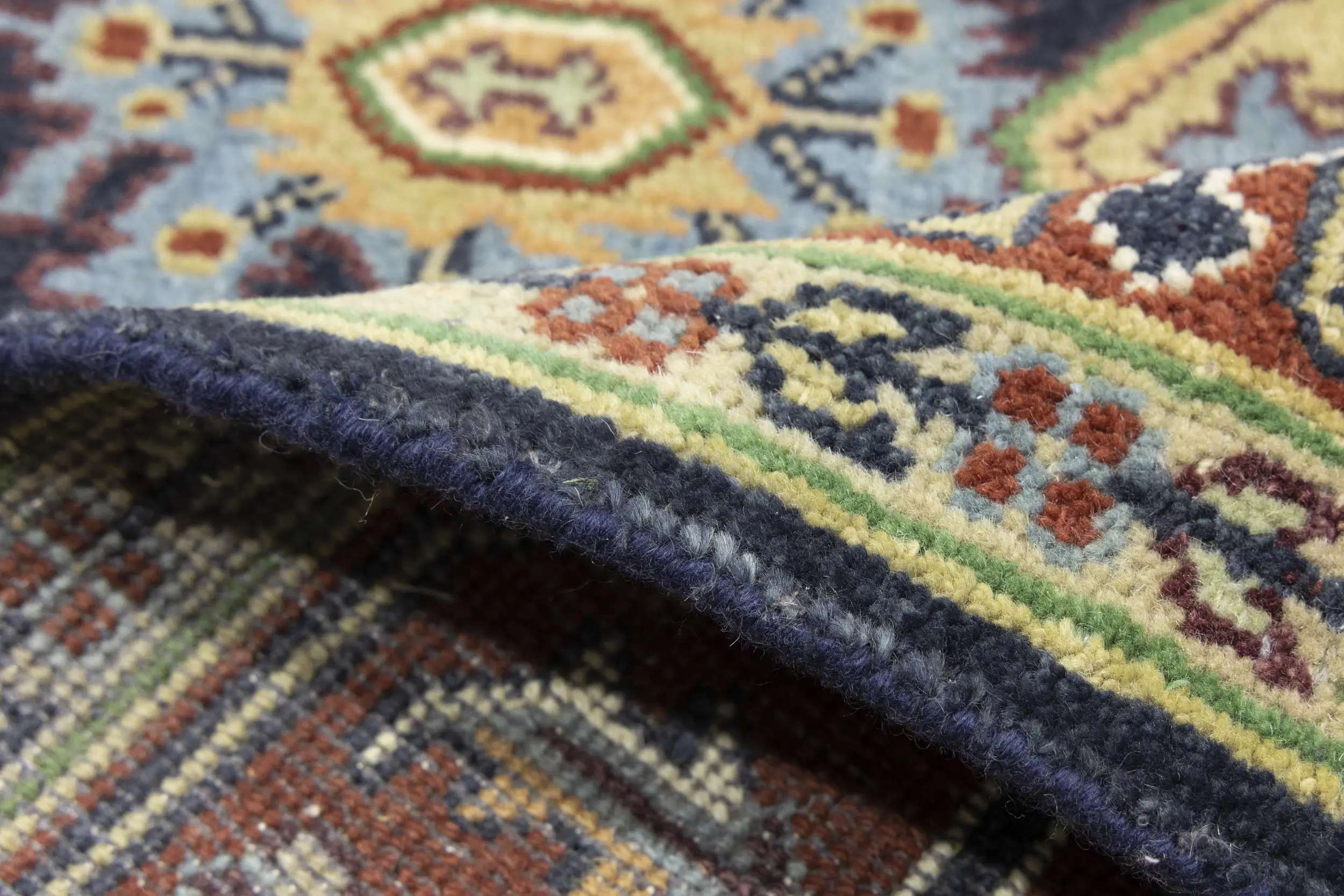 Handmade 8X10 purple-navy Oriental rug made with vegetable dyes (fine wool pile and cotton foundation), superior knot count, and appealing ancient designs. This Oriental rug/runner never will go out of style and would be among your most valuable treasures.