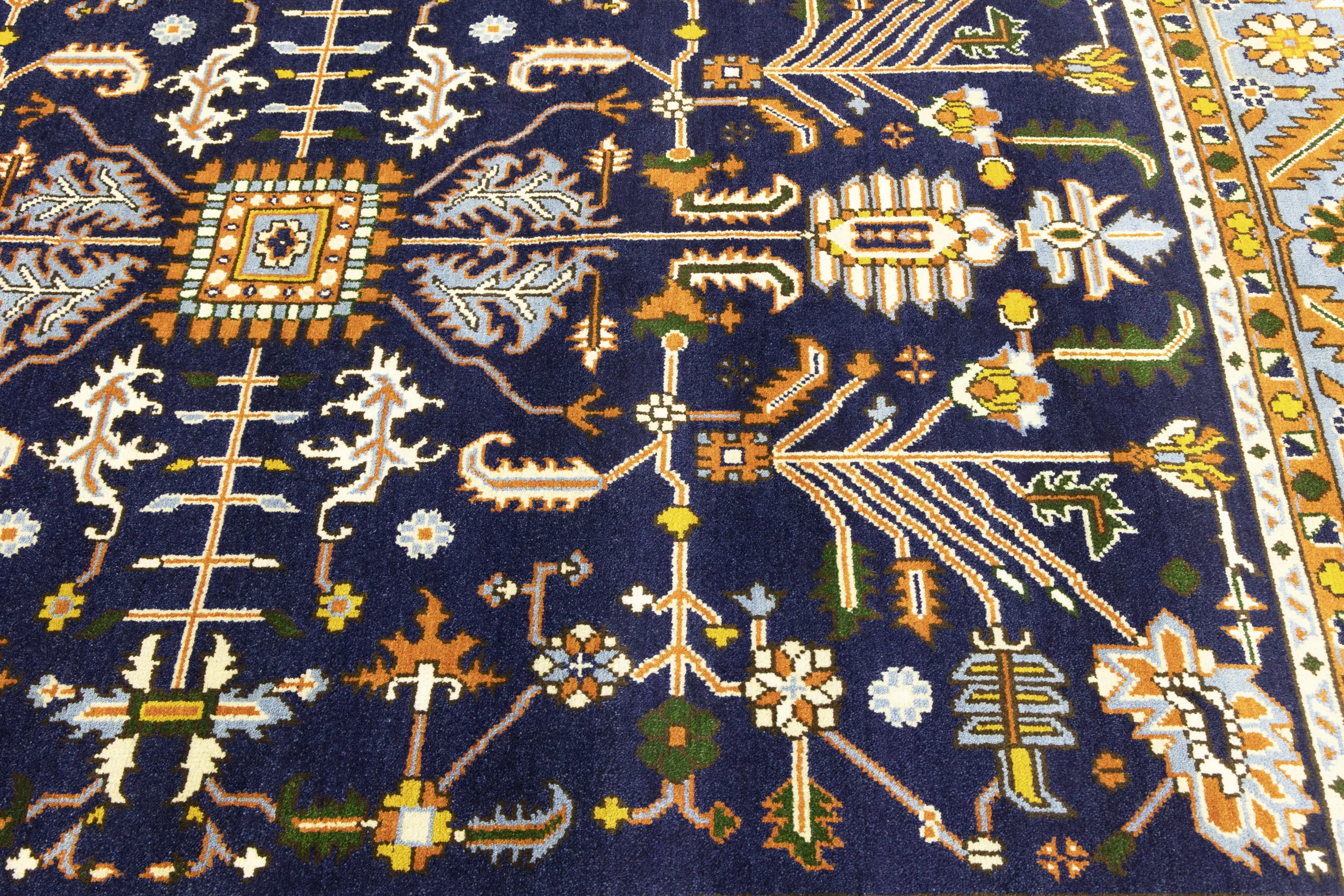 This genuine 9X12 purple new Oriental rug was made by the hands of gifted weavers inspired by a variety of spectacular artistic designs, to recreate the aged look of the original piece with a richness of color and ornately patterned background field. What set this vintage style Oriental area rug from the others are the material and dye used (wool pile and cotton foundation), knot count, ancient designs, fantastic grades, and its regional historical connection: it has deep roots, from the story of the people who produced it to the meaning of the symbols and colors displayed across its canvas that have been praised for centuries. This Indian home décor carpet will be completely cozy and inviting that never will go out of style! Also, this Oriental rug would be among your most valuable treasures, it is a great investment that accrues value over time, and it will last for generations because was woven with high-quality, all-natural wool. Environmentally friendly, opulent yet affordable; this rug will give you a thorough amount of character to help define your living space with elegance and warmth that will capture the eyes and attention of your audience (homeowners, designers, decorators, family and friends).