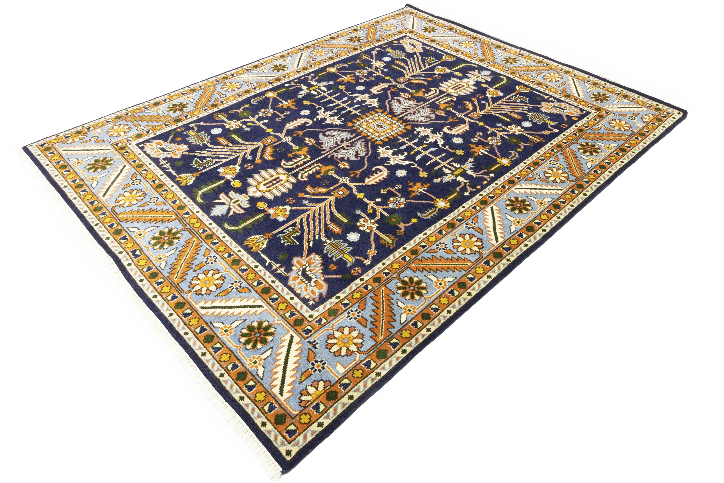 Handmade 9X12 purple oriental rug made with vegetable dyes (fine wool pile and cotton foundation), superior knot count, and appealing ancient designs. This Oriental rug never will go out of style and would be among your most valuable treasures.