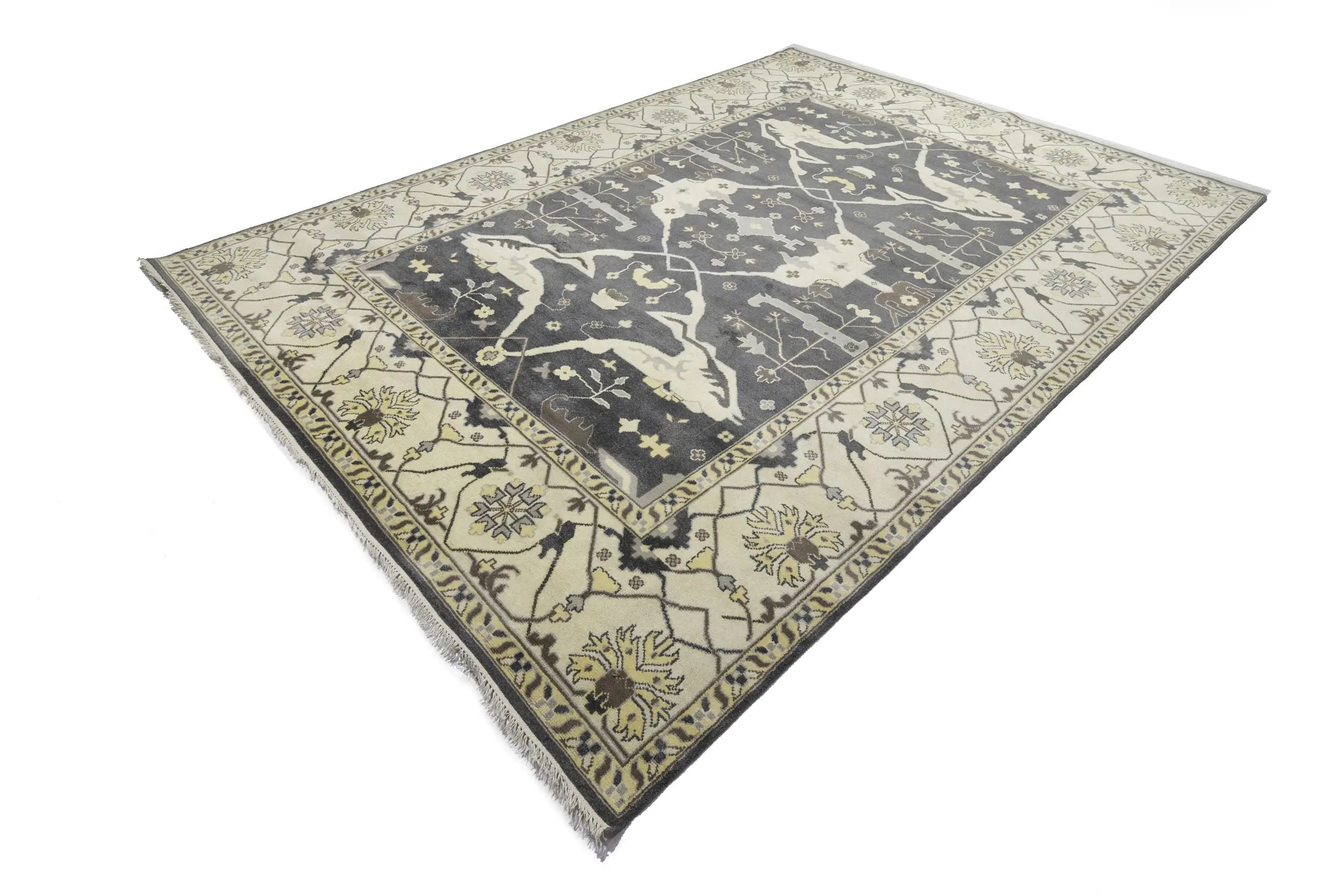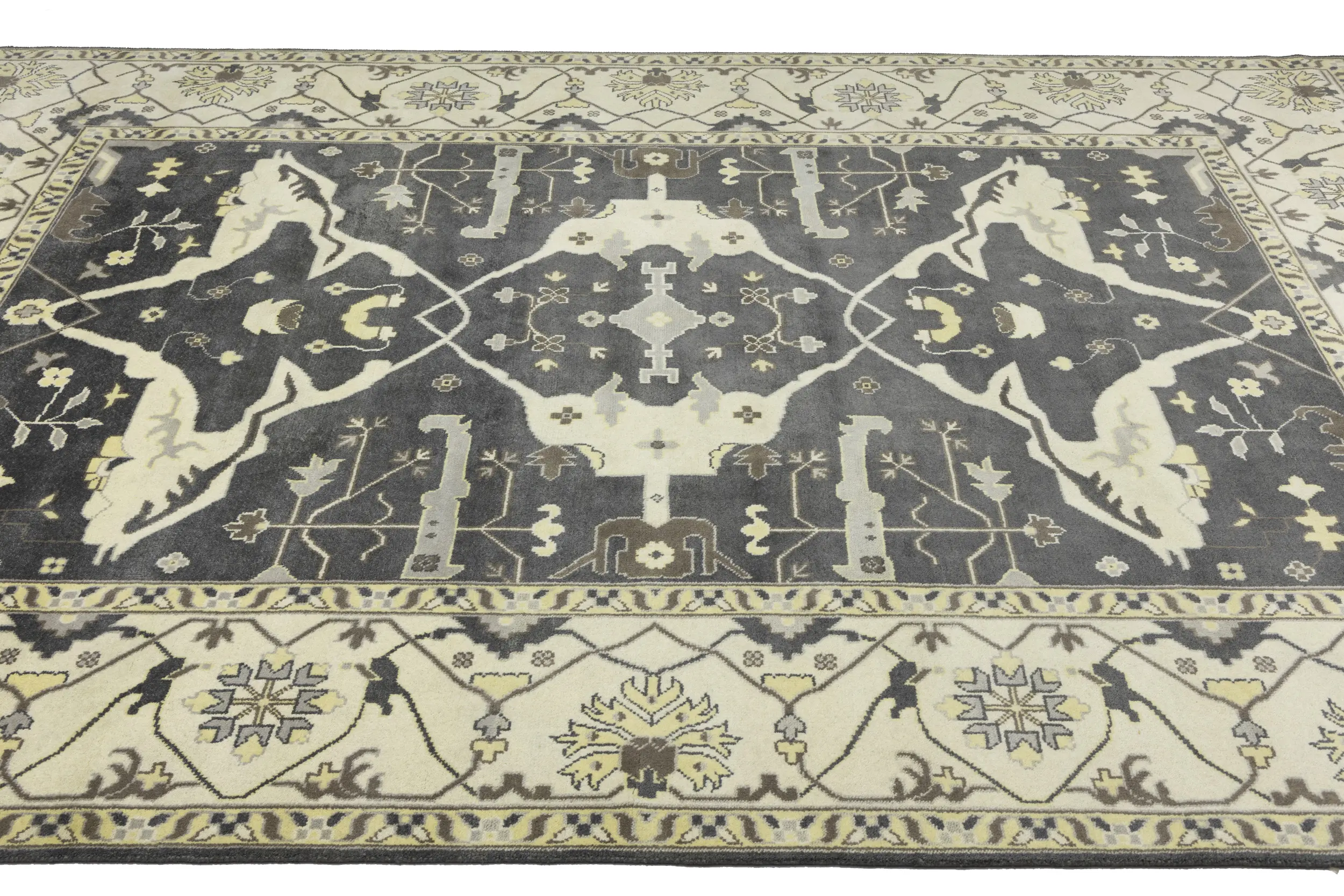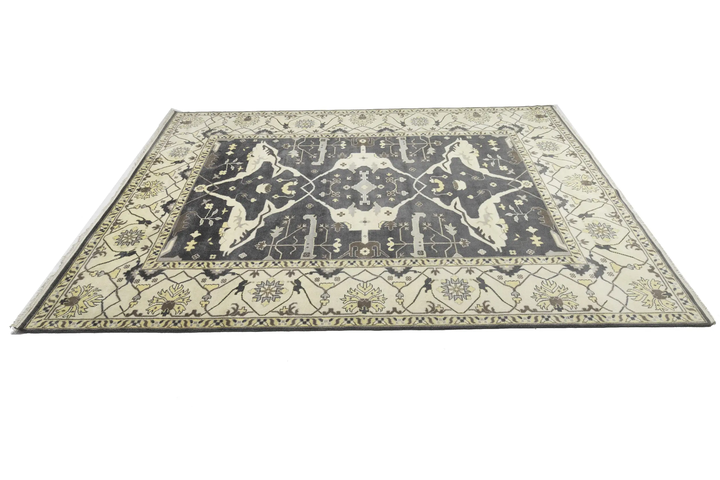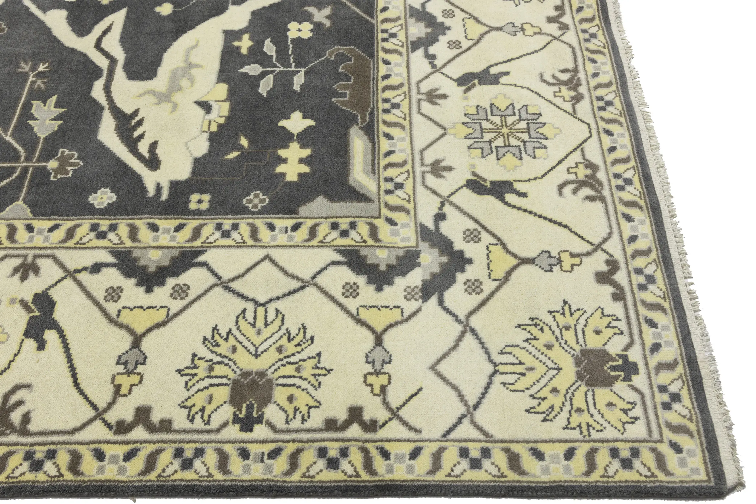 Dark Taupe Floral 10X14 Oushak Oriental Rug
