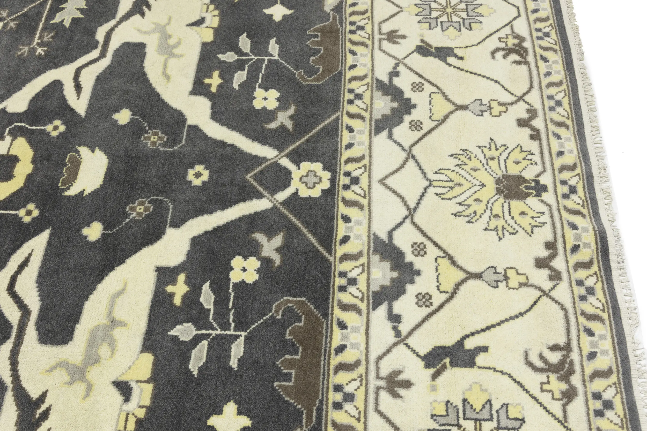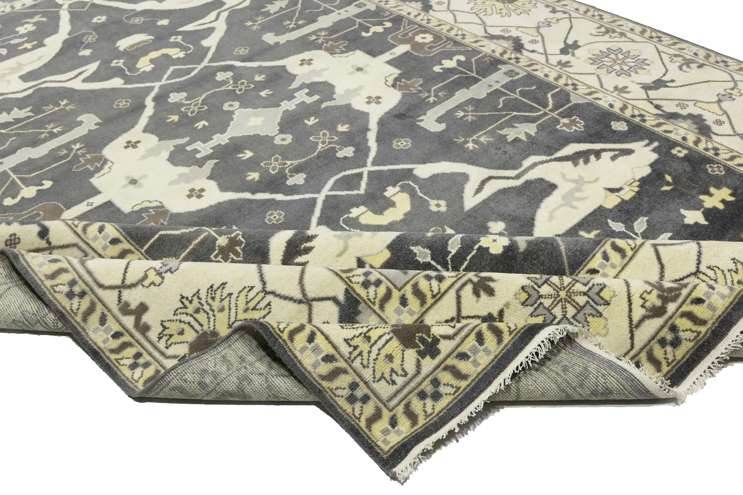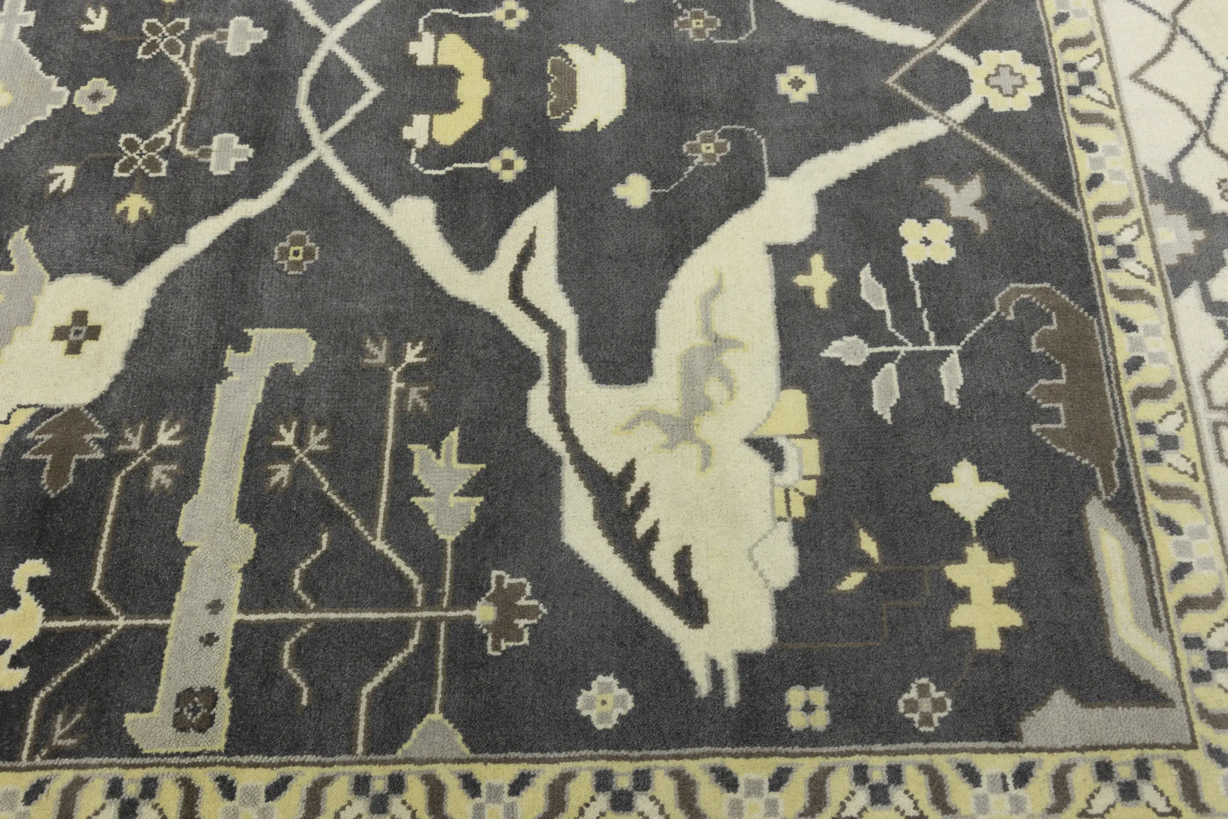 Dark Taupe Floral 10X14 Oushak Oriental Rug