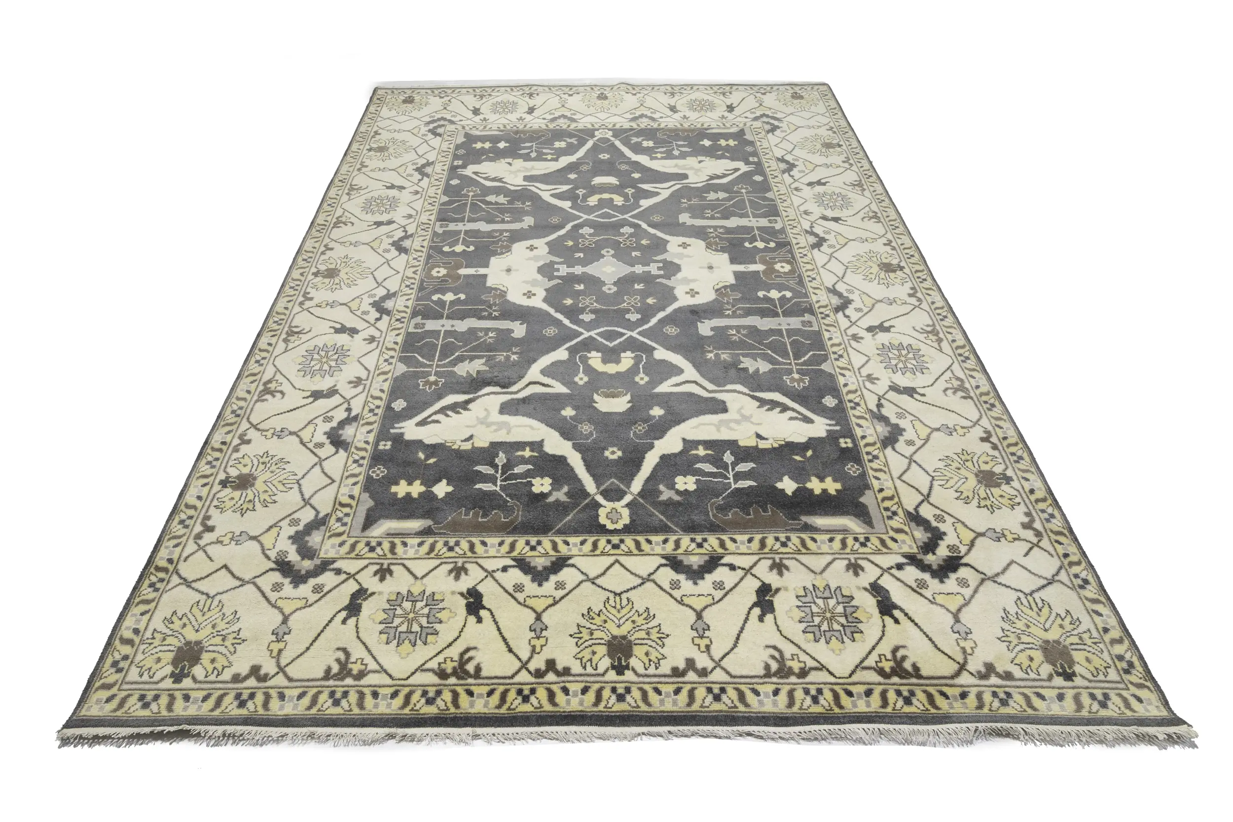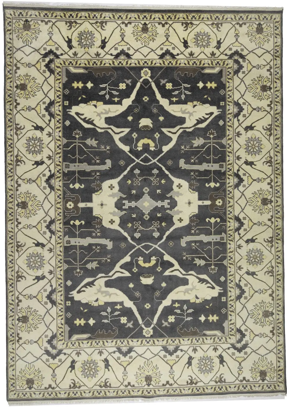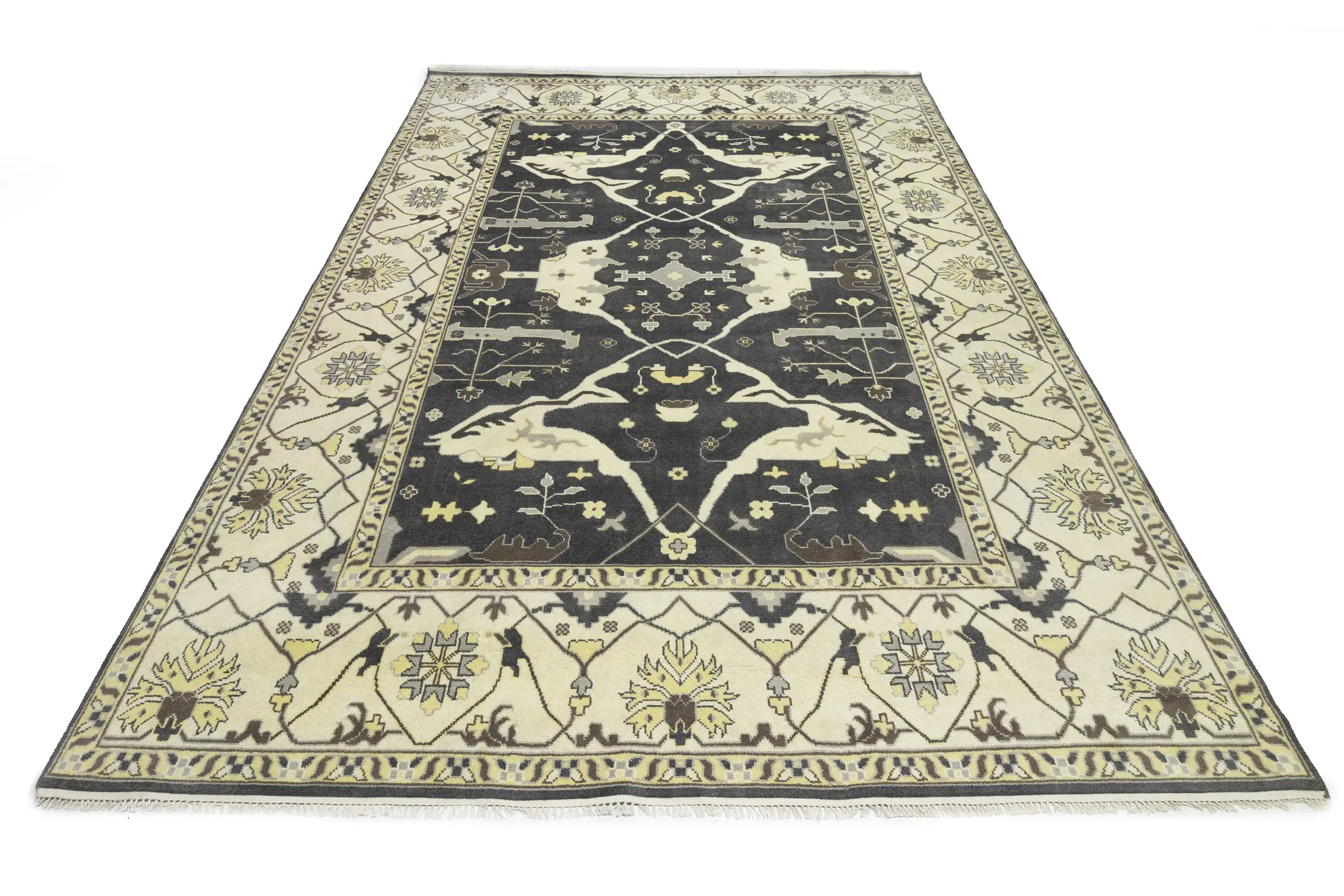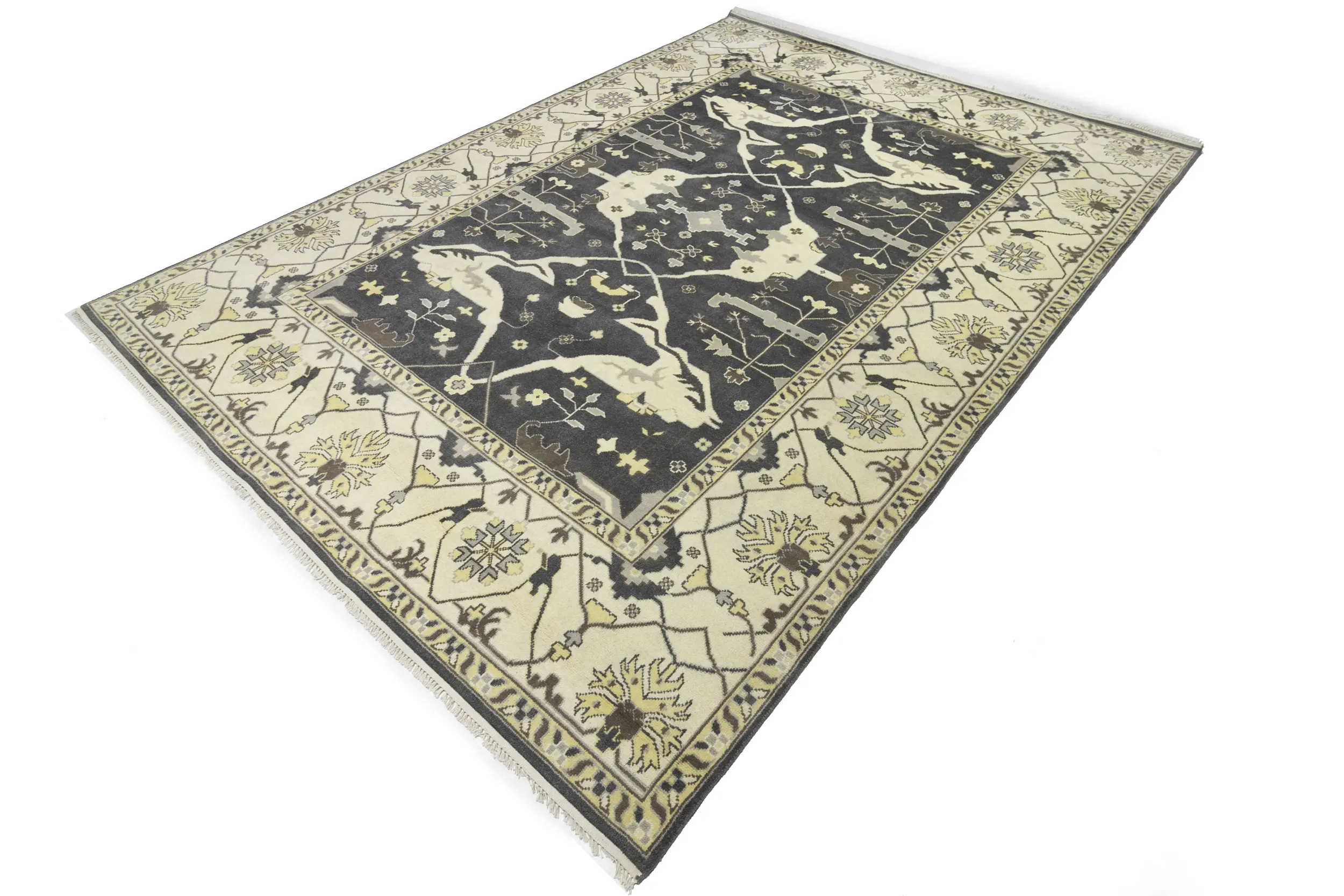 Dark Taupe Floral 10X14 Oushak Oriental Rug