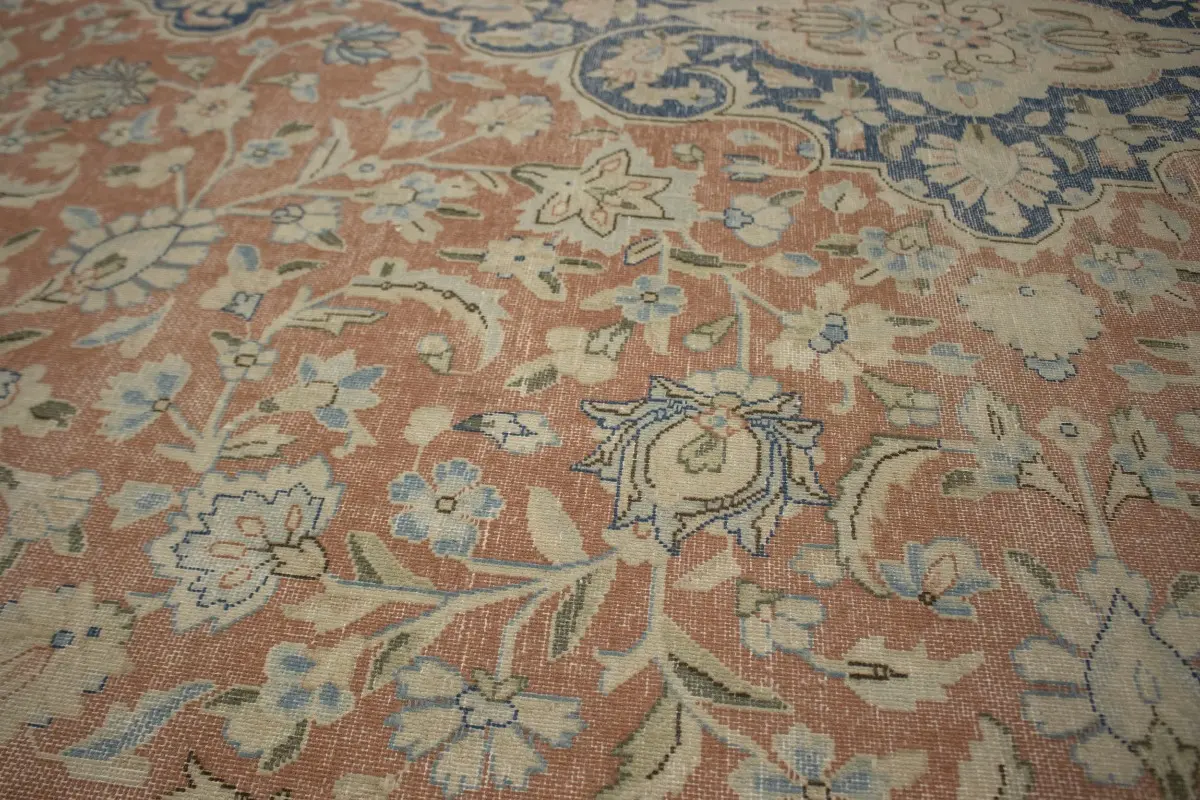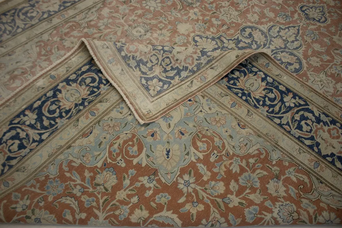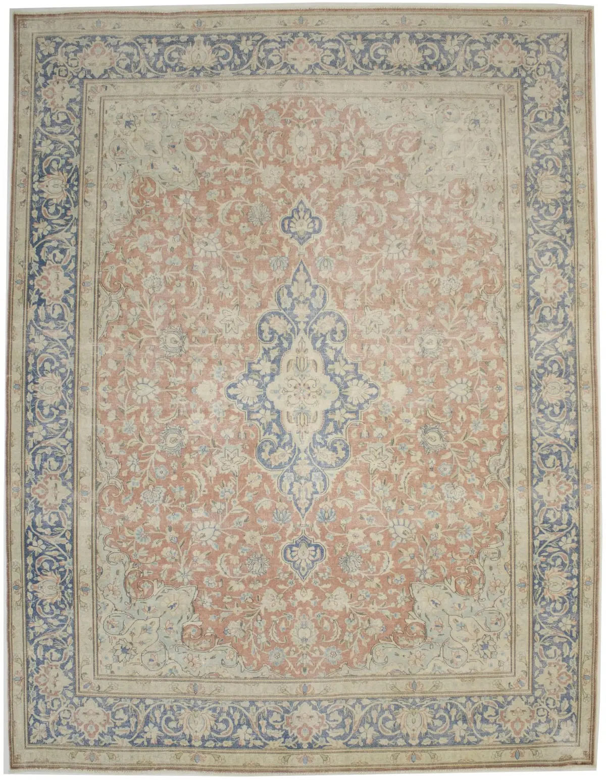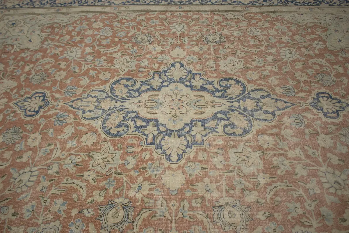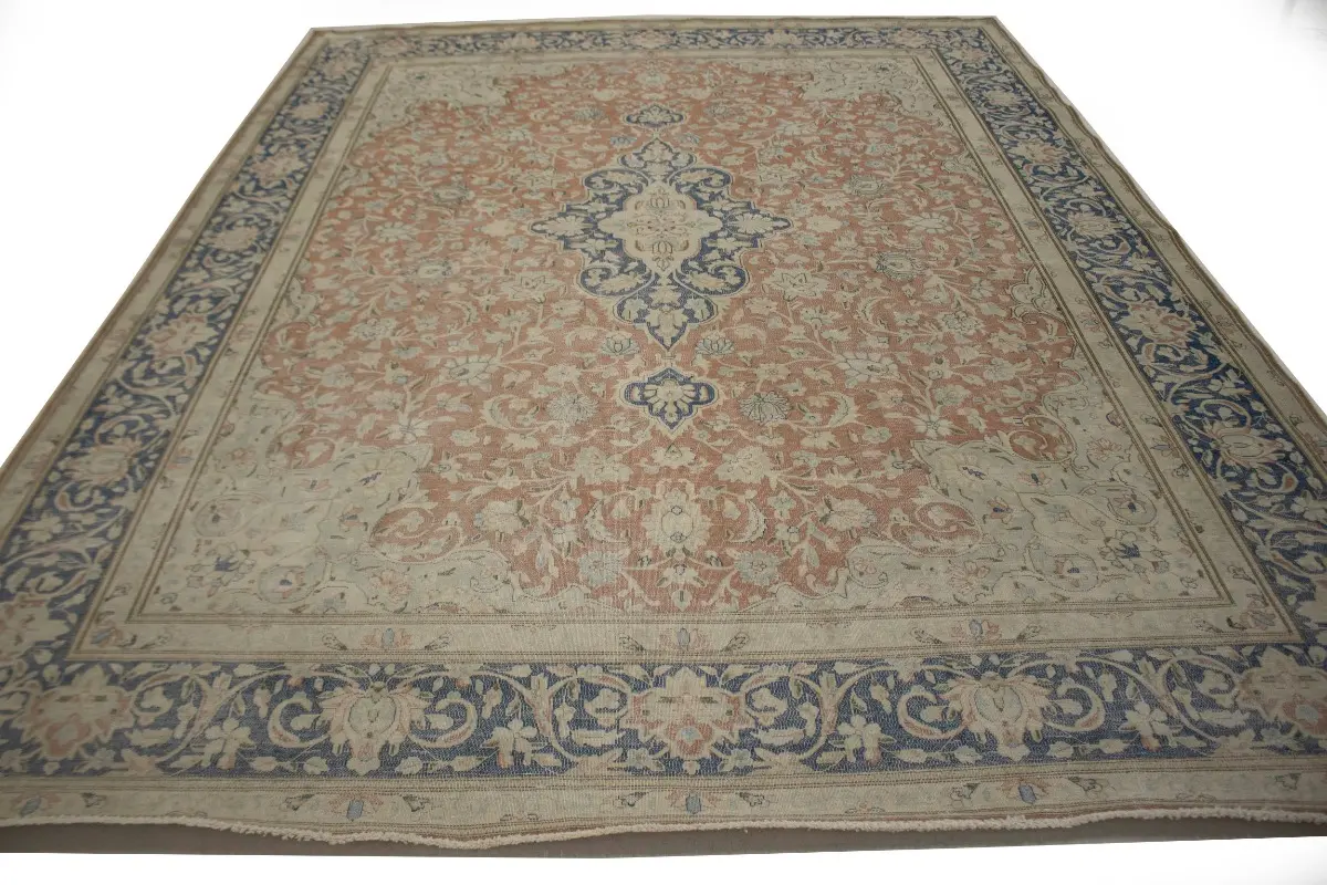 This genuine 10X13 orange vintage Persian rug was made by the hands of talented weavers influenced by a variety of gorgeous symmetrical artistic designs, to recreate the aged look of the unique piece with a richness of color and very balanced floral background field. What set this traditional Oriental area rug from the others are the material and dye used (wool pile and cotton foundation), knot count, antique designs, fantastic grades, and its regional historical connection: it has deep roots, from the story of the people who produced it to the meaning of the symbols and colors displayed across its canvas that have been praised for centuries. This classic home décor carpet will be completely cozy and inviting that never will go out of style! Also, this Oriental rug would be among your most valuable treasures, it is a great investment that accrues value over time, and it will last a lifetime because was woven with high-quality, all-natural wool; it won’t rip, tear, or shed. Eco-friendly, opulent yet affordable; this Persian rug will give you an extra pop of character to help define your home environment with sophistication and warmth that will capture the eyes and attention of your audience (homeowners, designers, decorators, family and friends). RT-1353