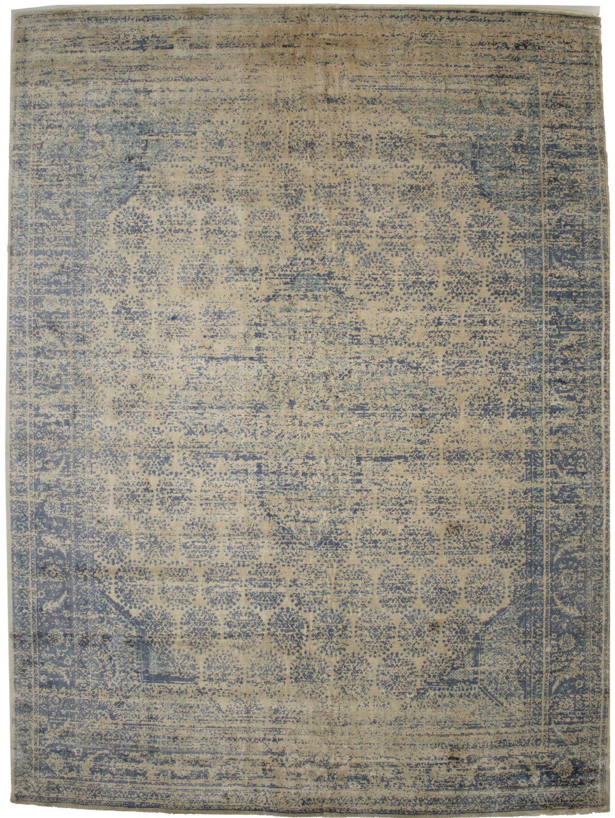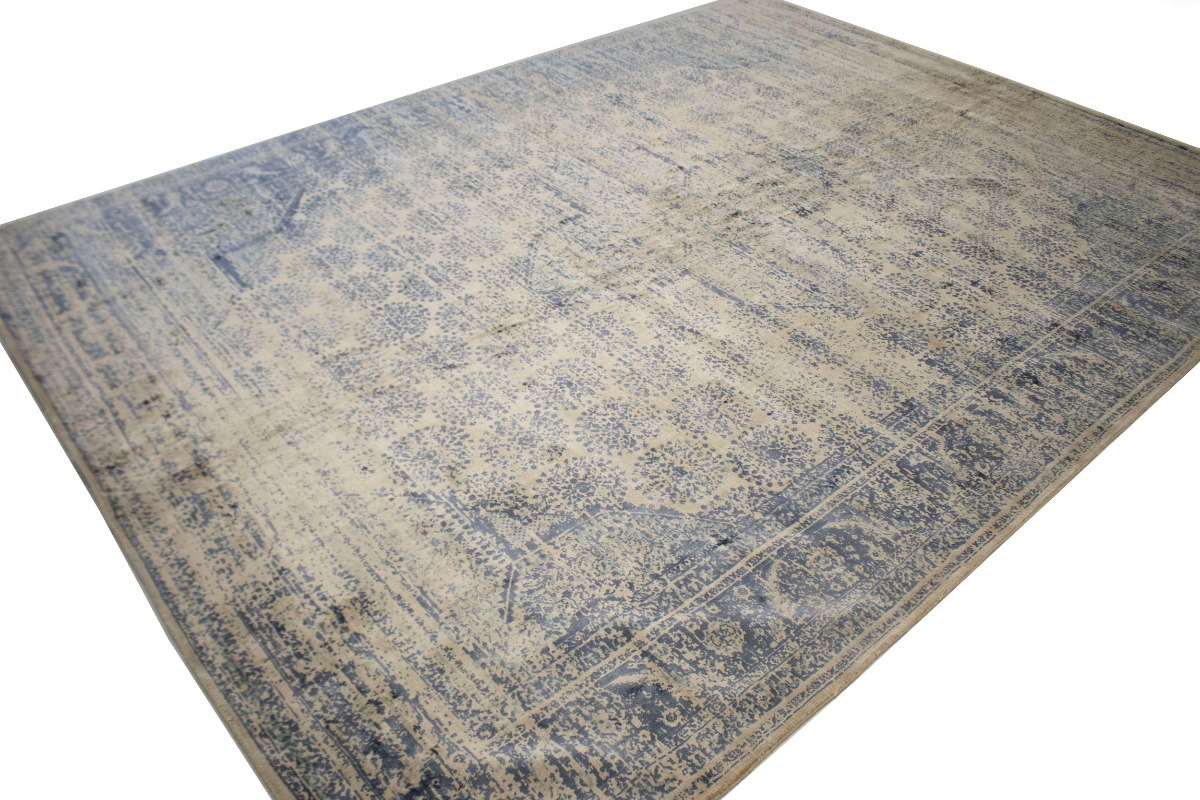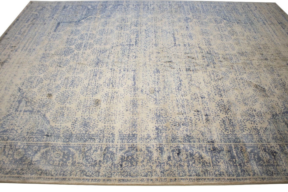 Blue-gray Distressed Floral Modern 9X12 Hand-Loomed Rug OT-9047