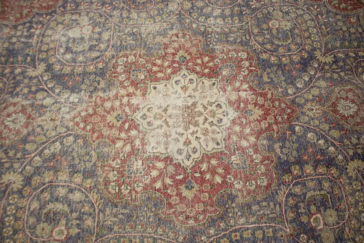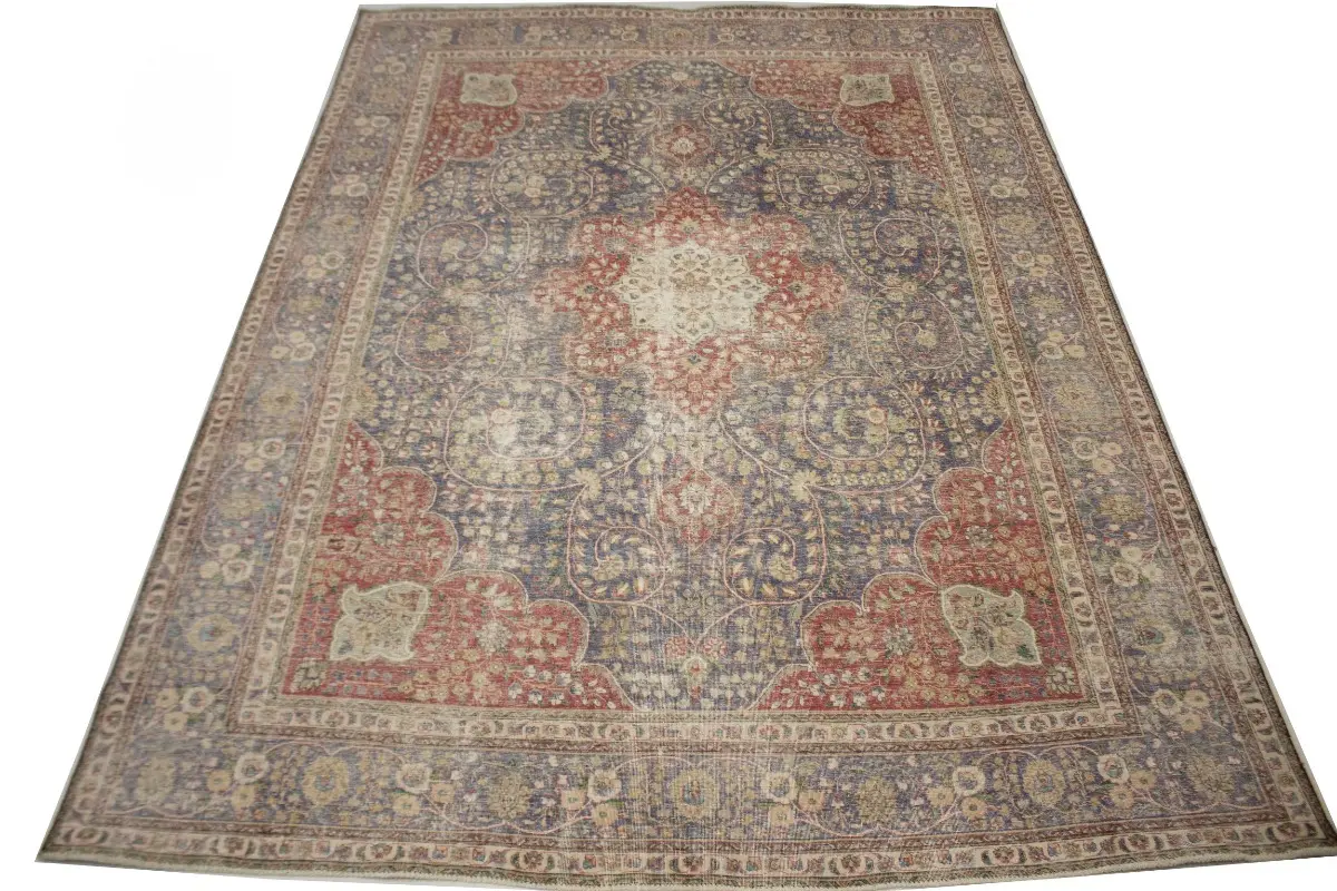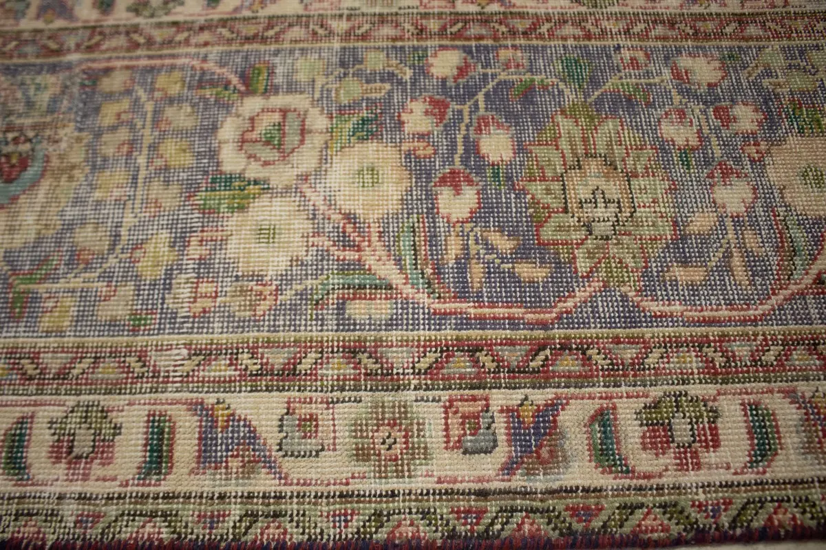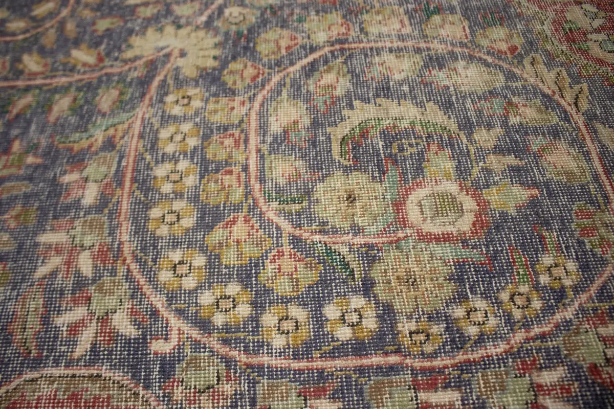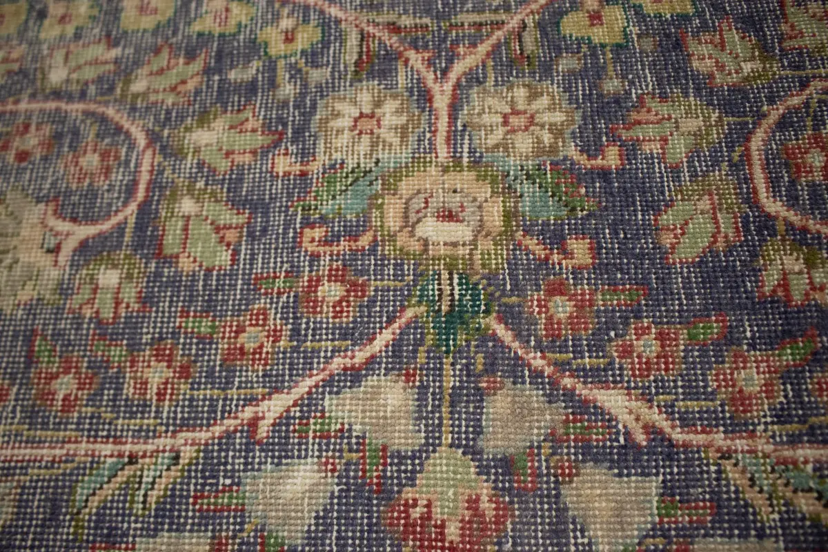 Distressed Purple-navy Antique Floral 9'7X12'6 Tabriz Persian Rug