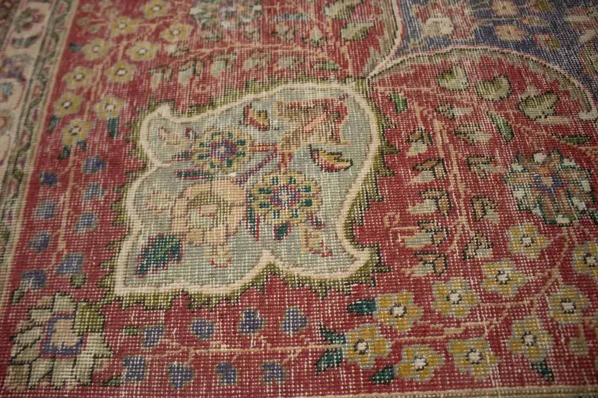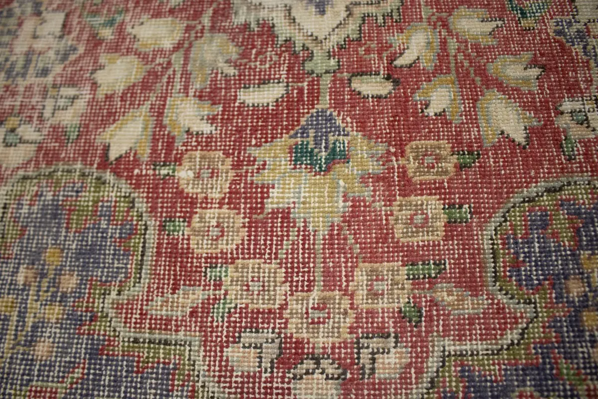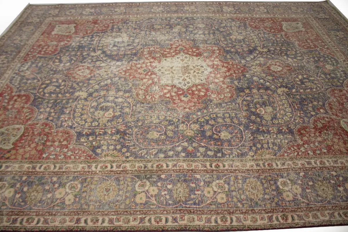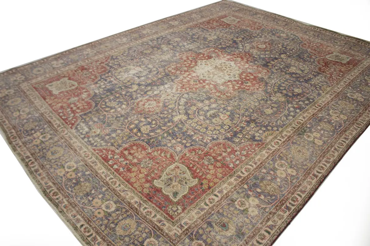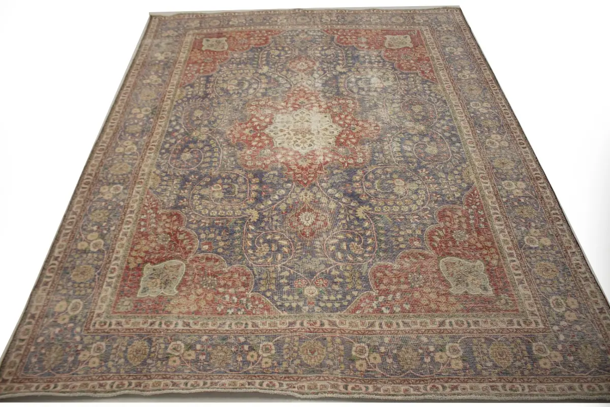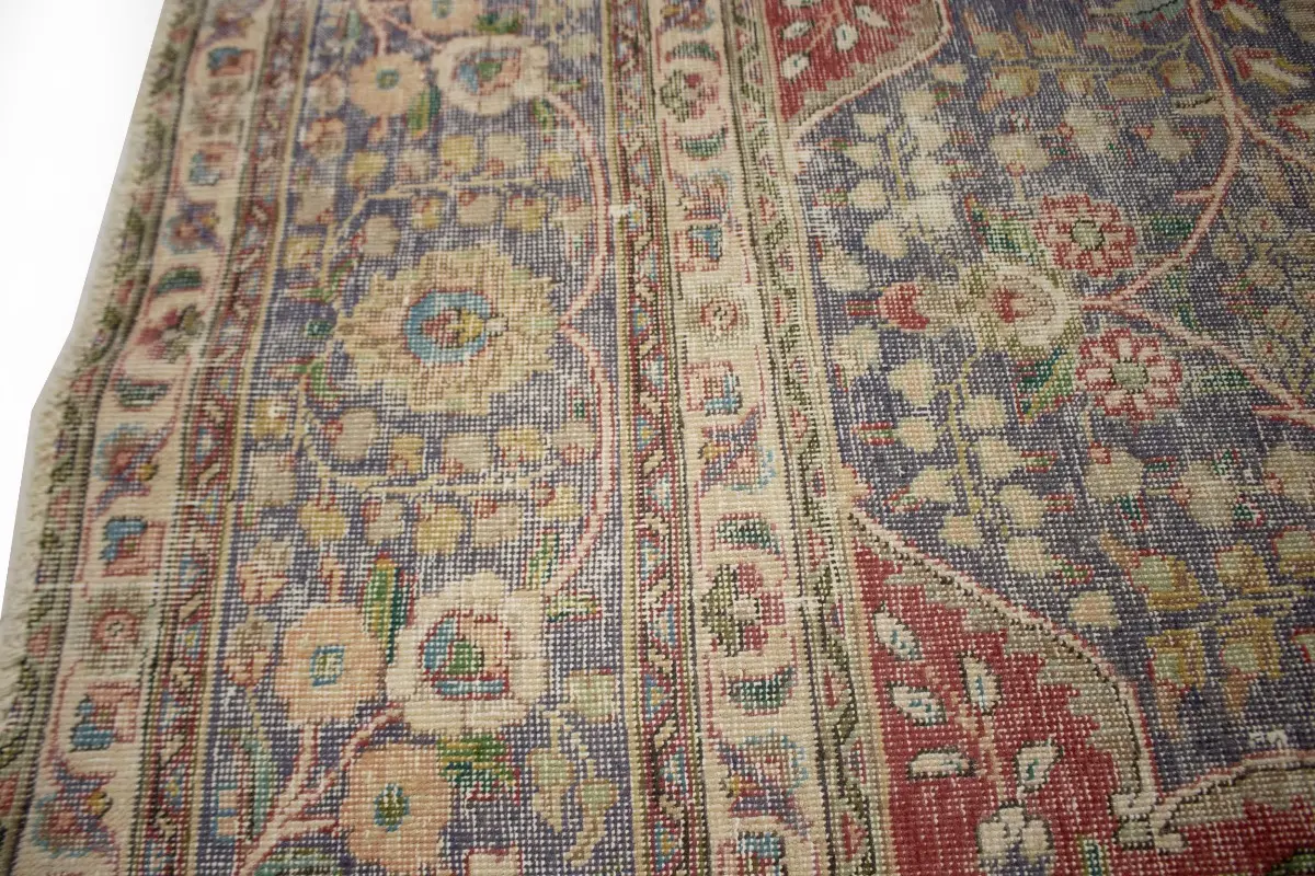 Distressed Purple-navy Antique Floral 9'7X12'6 Tabriz Persian Rug