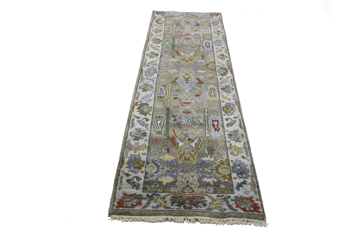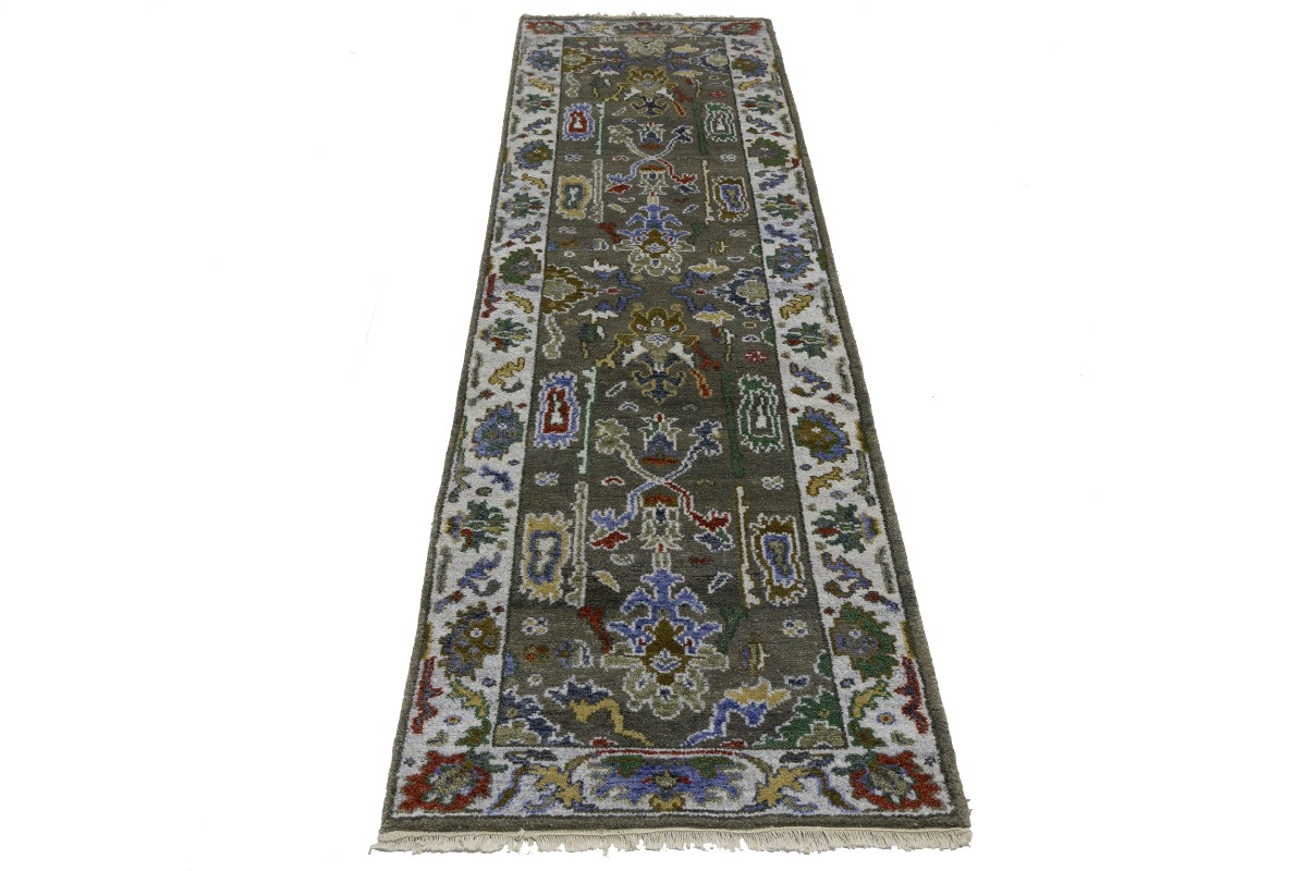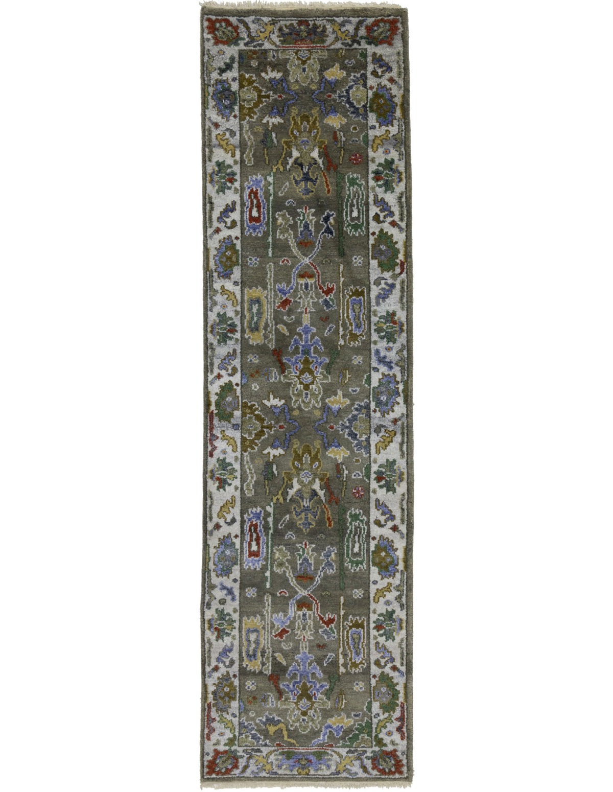 This original 2'7X9'5 gray new Oriental runner was finely knotted by the hands of weavers influenced by a variety of amazing artistic designs, to recreate the aged look of the exceptional piece with a richness of color and embellished background field. What set this vintage style Oriental area runner from the others are the material and dye used (wool pile and cotton foundation), knot count, antique designs, fantastic grades, and its regional historical connection: it has deep roots, from the story of the people who produced it to the meaning of the symbols and colors displayed across its canvas that have been praised for centuries. This Indian home décor carpet will be completely cozy and inviting that never will go out of style! Also, this Oriental rug would be among your most valuable treasures, it is a great investment that increase in value over time, and it will last a lifetime because was woven with high-quality, all-natural wool. Eco-friendly, opulent yet affordable; this runner will give you an extra pop of character to help define your home environment with luxury and warmth that will capture the eyes and attention of your audience (homeowners, designers, decorators, family and friends). OT-8018