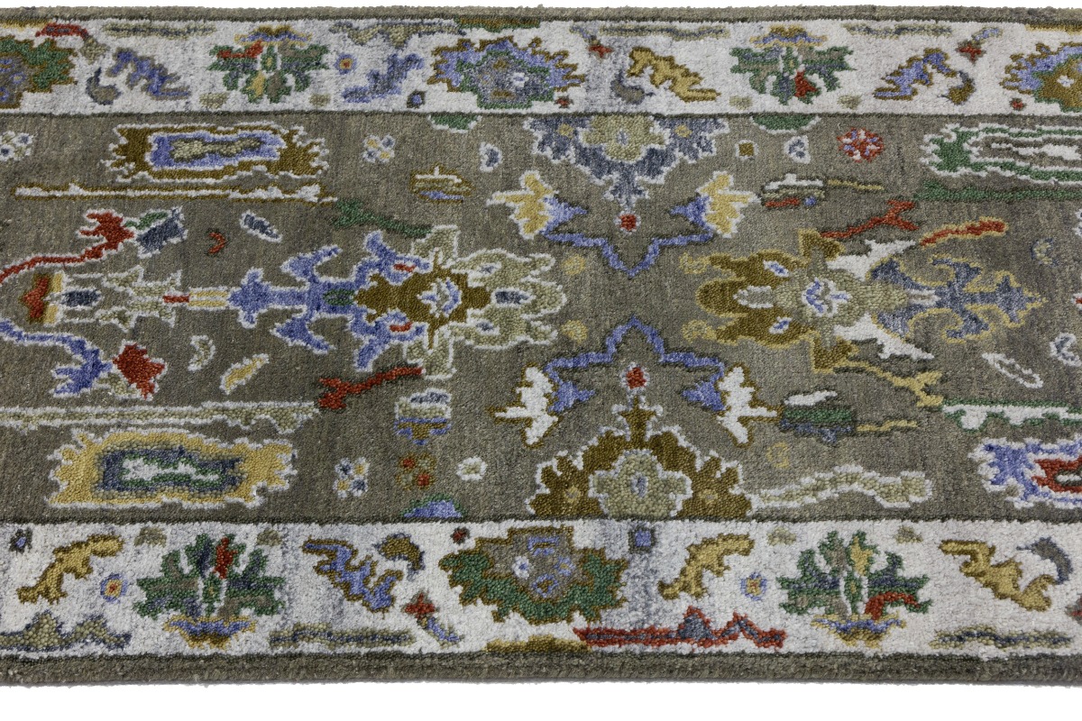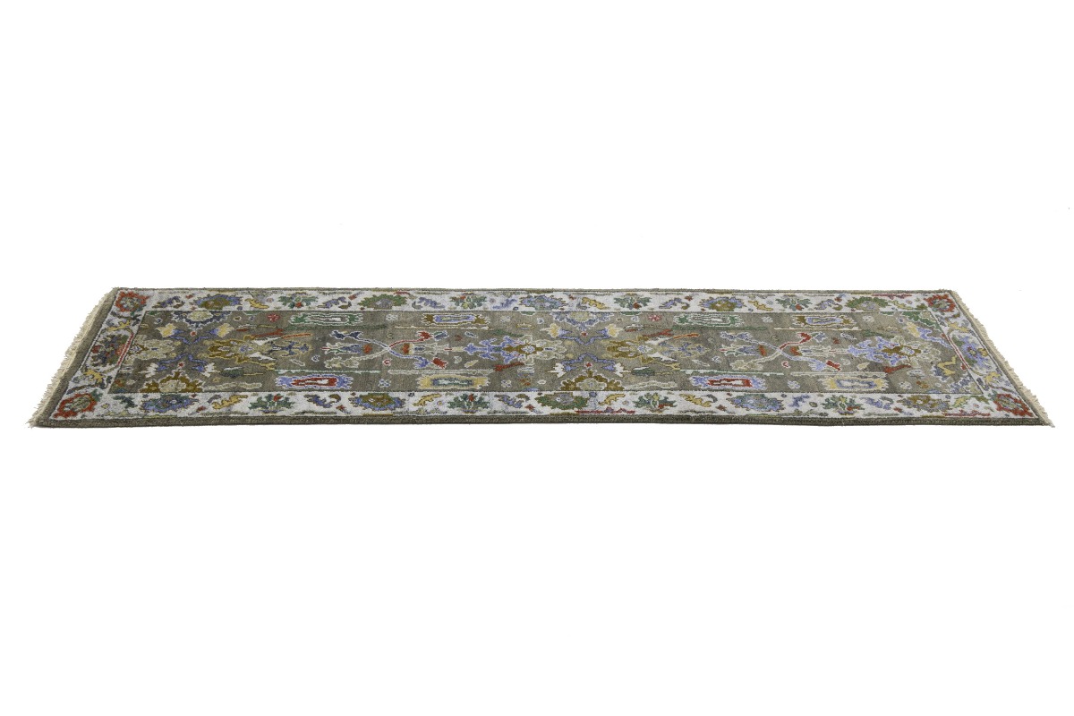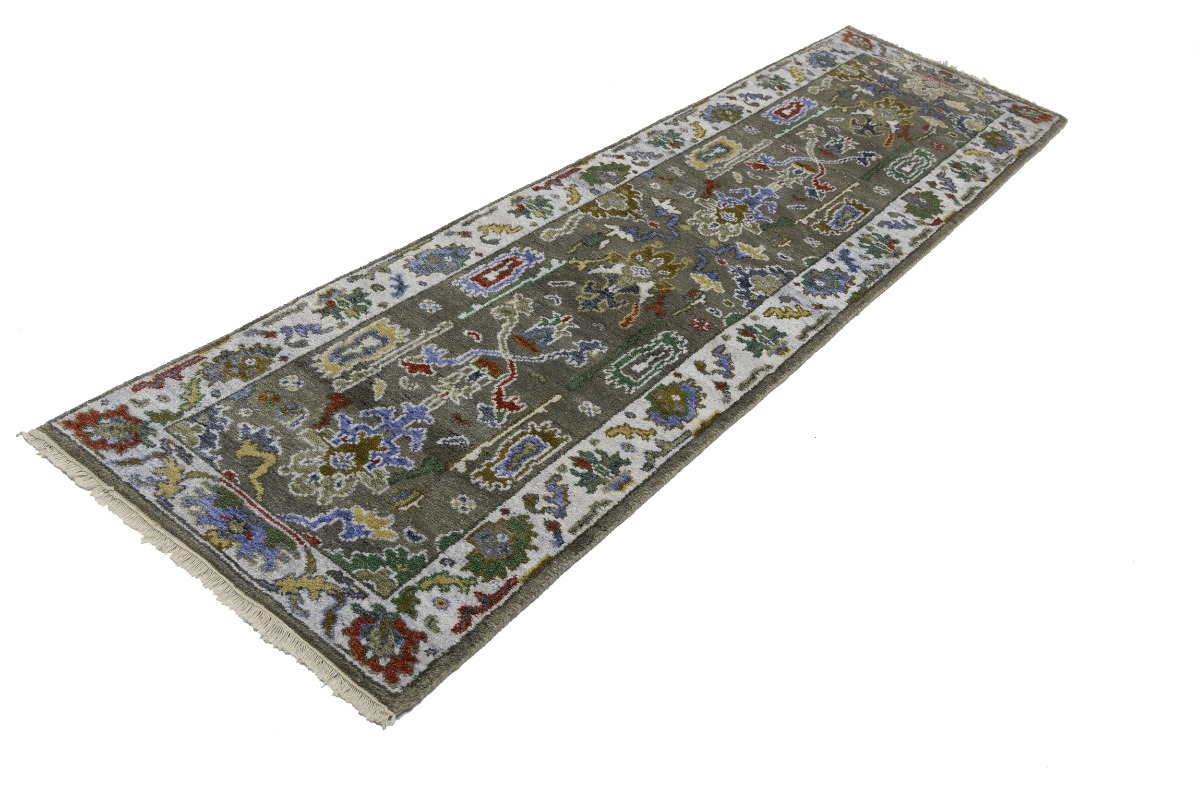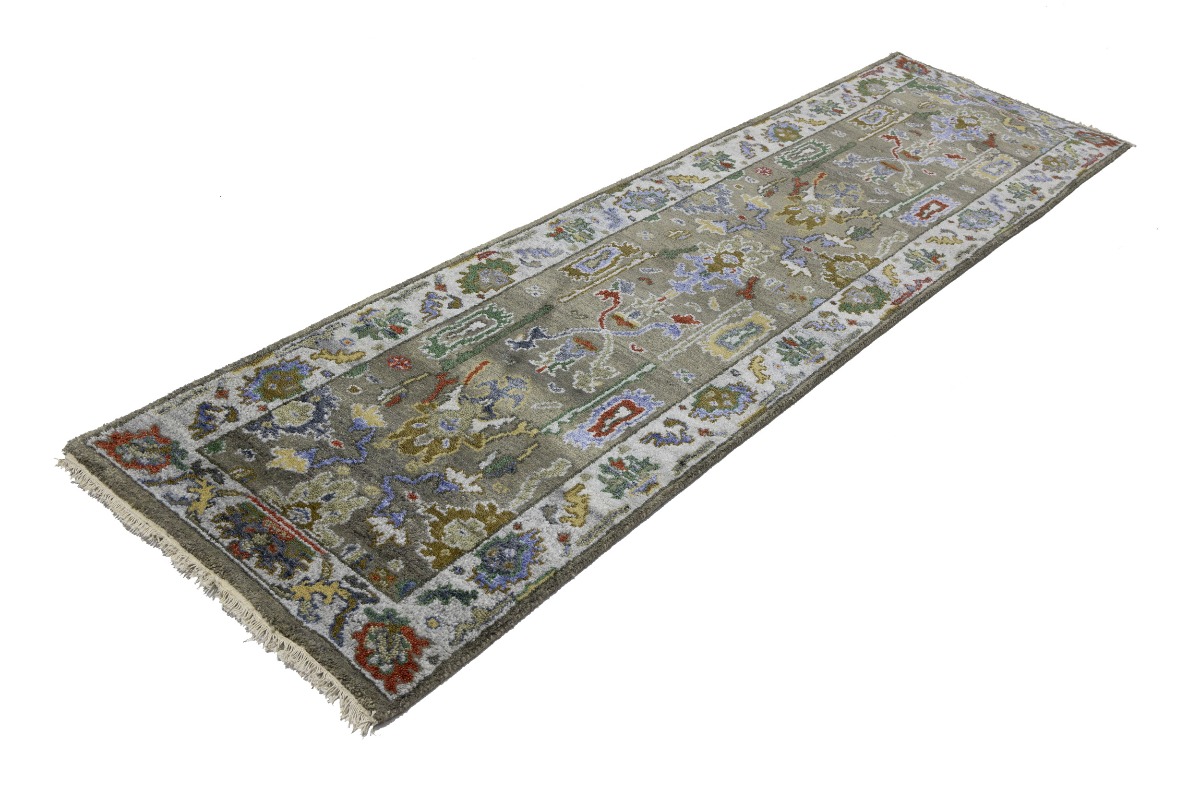 This original 2'7X9'5 gray new Oriental runner was finely knotted by the hands of weavers influenced by a variety of amazing artistic designs, to recreate the aged look of the exceptional piece with a richness of color and embellished background field. What set this vintage style Oriental area runner from the others are the material and dye used (wool pile and cotton foundation), knot count, antique designs, fantastic grades, and its regional historical connection: it has deep roots, from the story of the people who produced it to the meaning of the symbols and colors displayed across its canvas that have been praised for centuries. This Indian home décor carpet will be completely cozy and inviting that never will go out of style! Also, this Oriental rug would be among your most valuable treasures, it is a great investment that increase in value over time, and it will last a lifetime because was woven with high-quality, all-natural wool. Eco-friendly, opulent yet affordable; this runner will give you an extra pop of character to help define your home environment with luxury and warmth that will capture the eyes and attention of your audience (homeowners, designers, decorators, family and friends). OT-8018