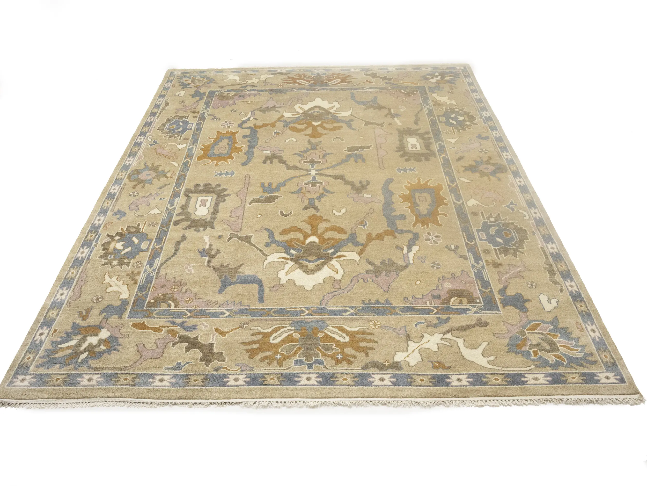Hand Knotted 9X12 Khaki oriental rug made with vegetable dyes (fine wool pile and cotton foundation), superior knot count, and appealing ancient designs. This Oriental rug never will go out of style and would be among your most valuable treasures.