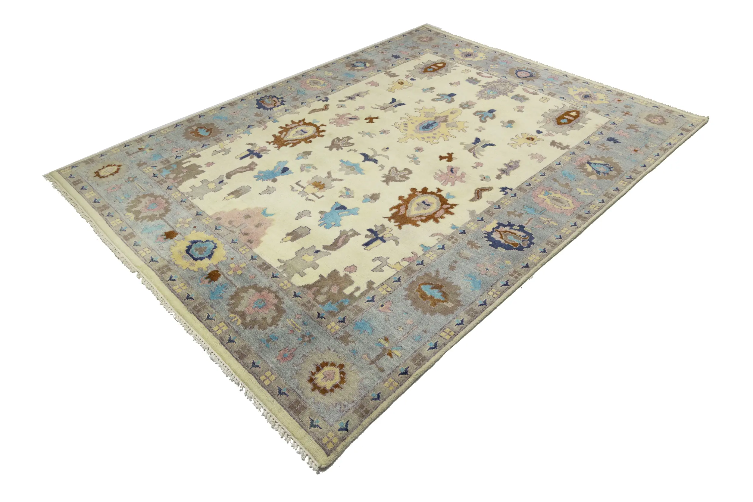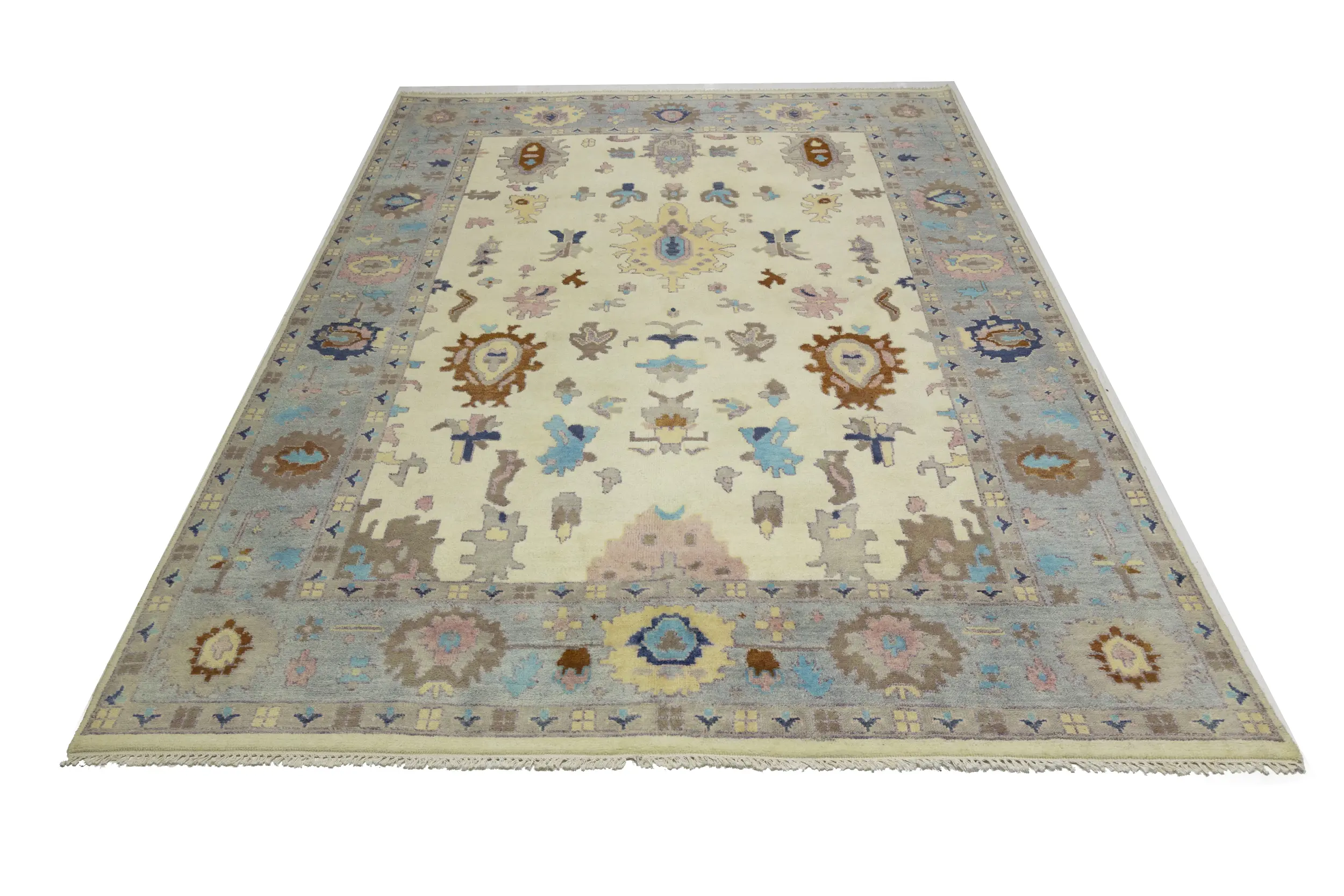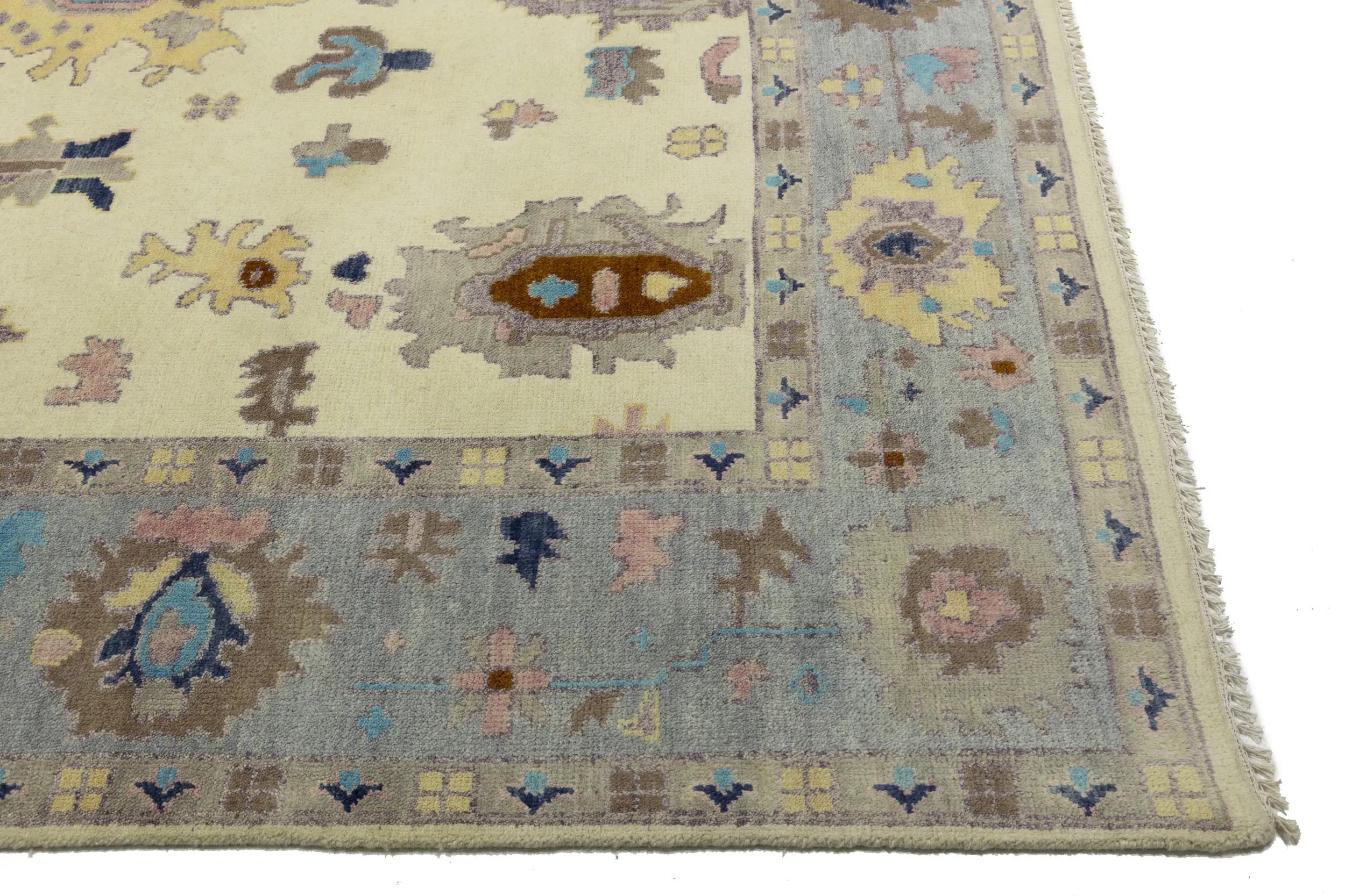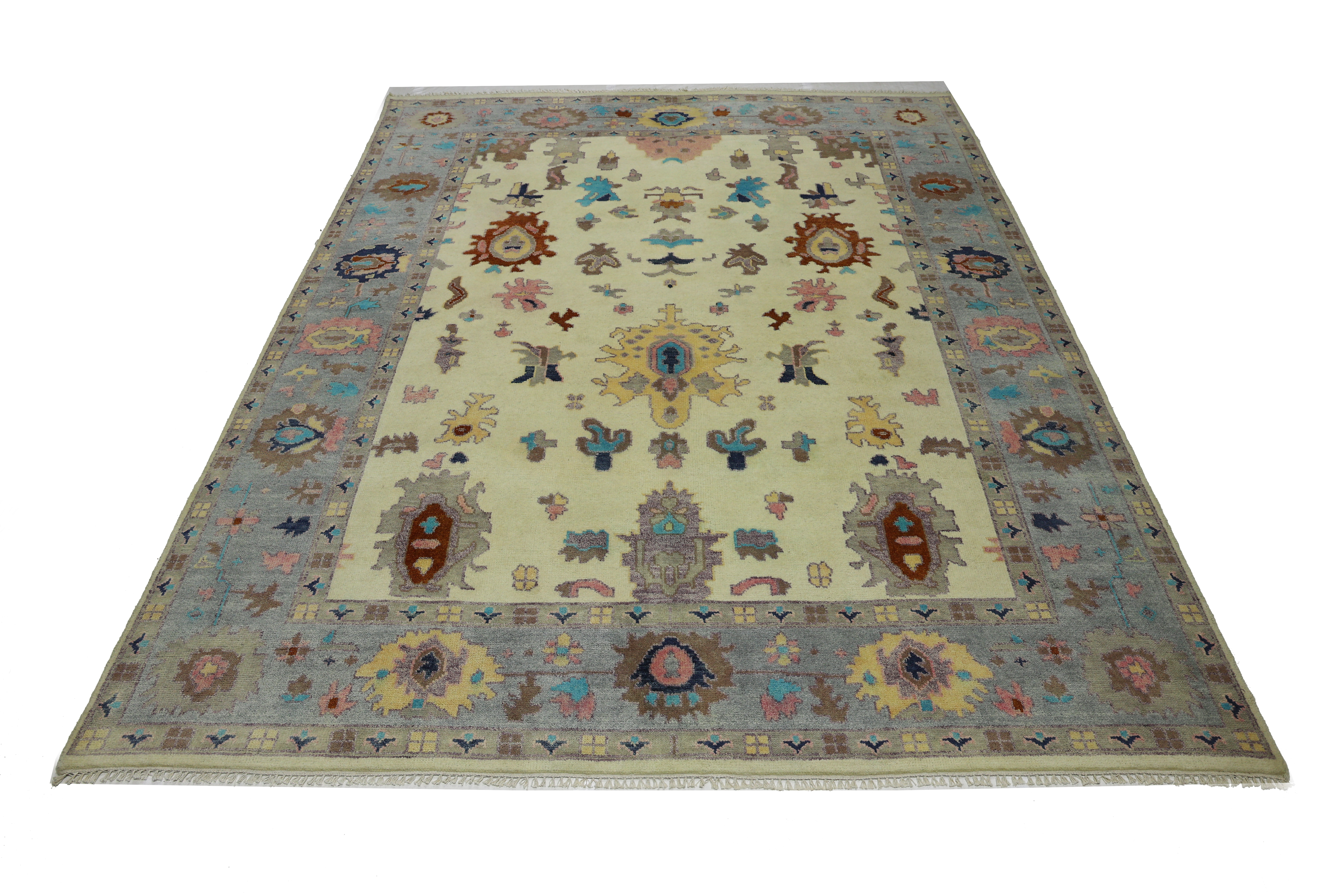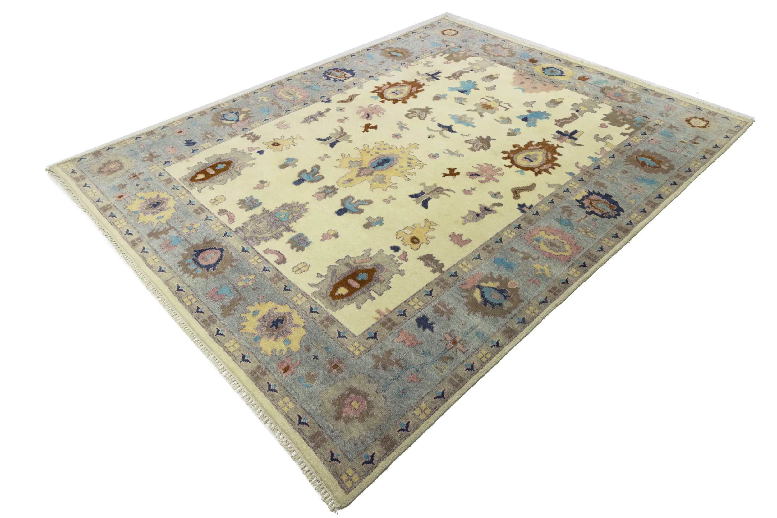 Cream Floral Colorfast 9X12 Oushak Chobi Oriental Rug