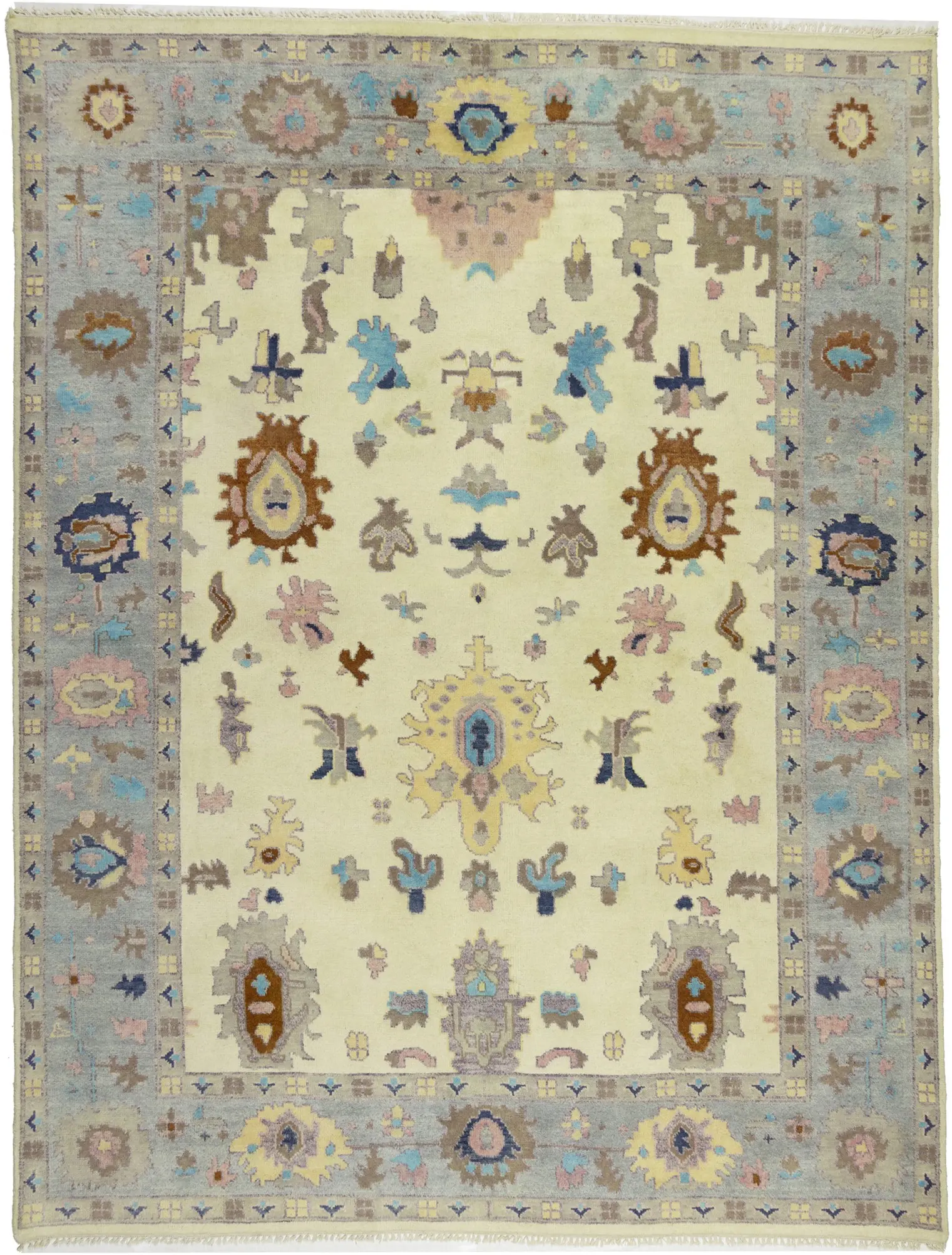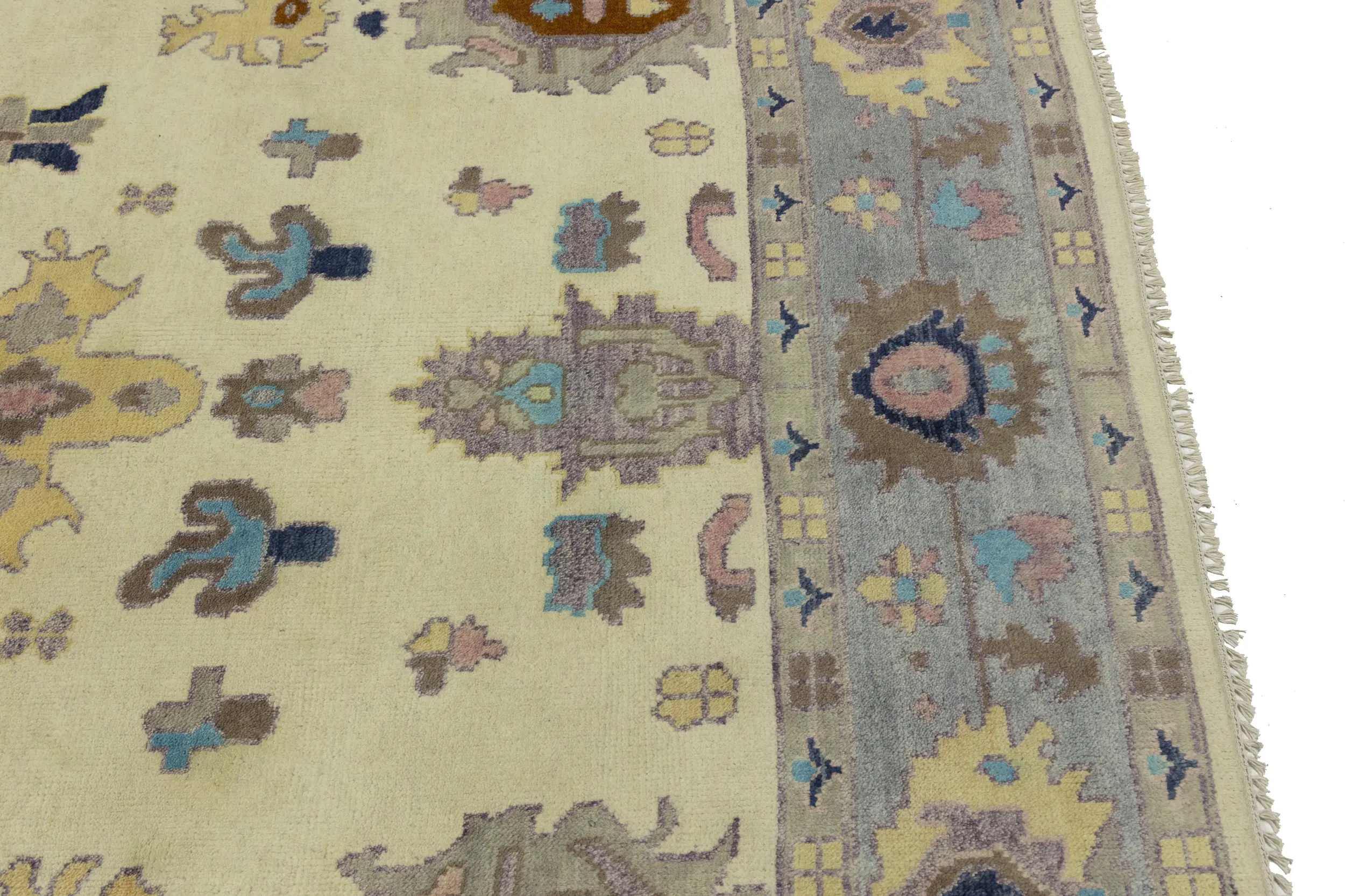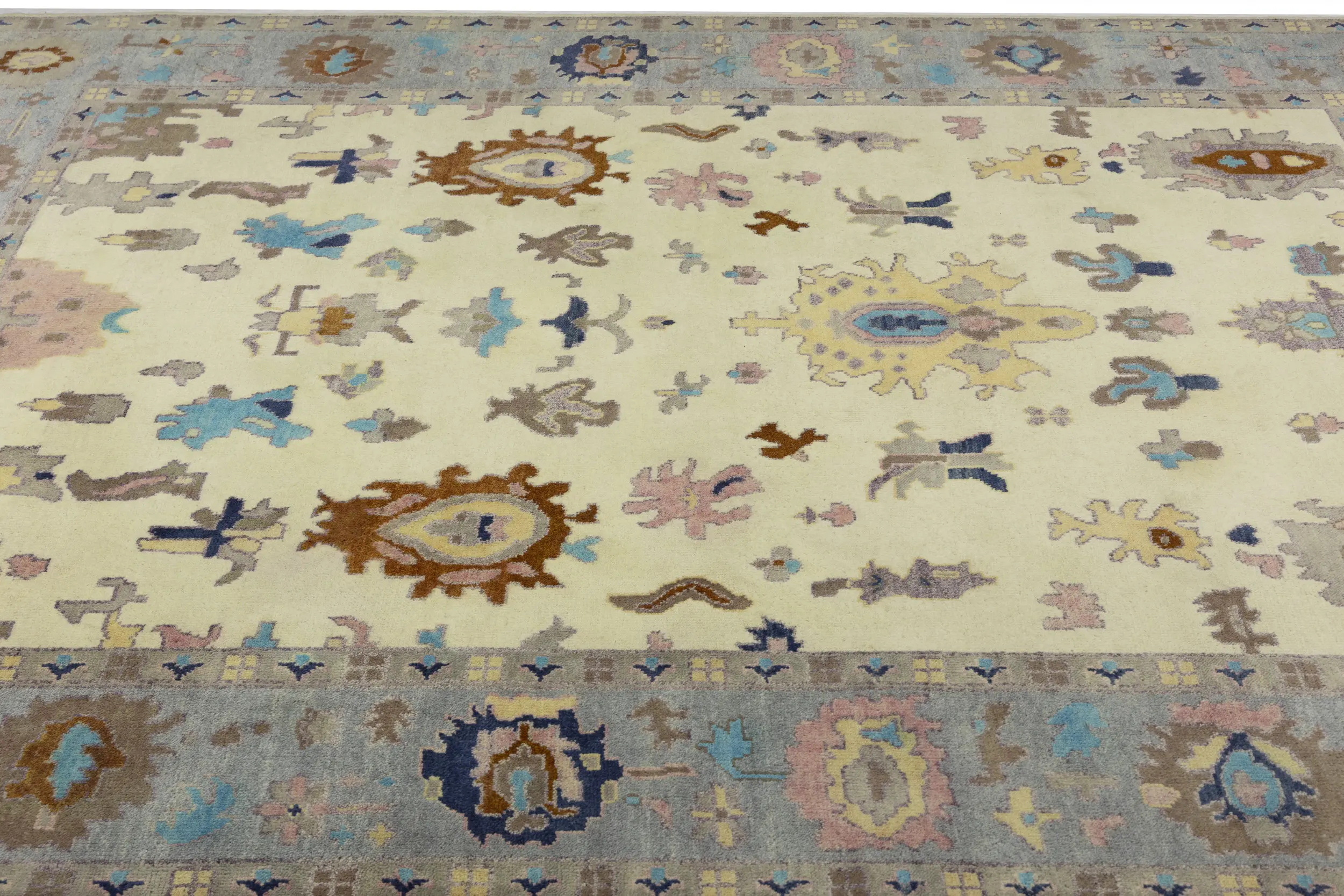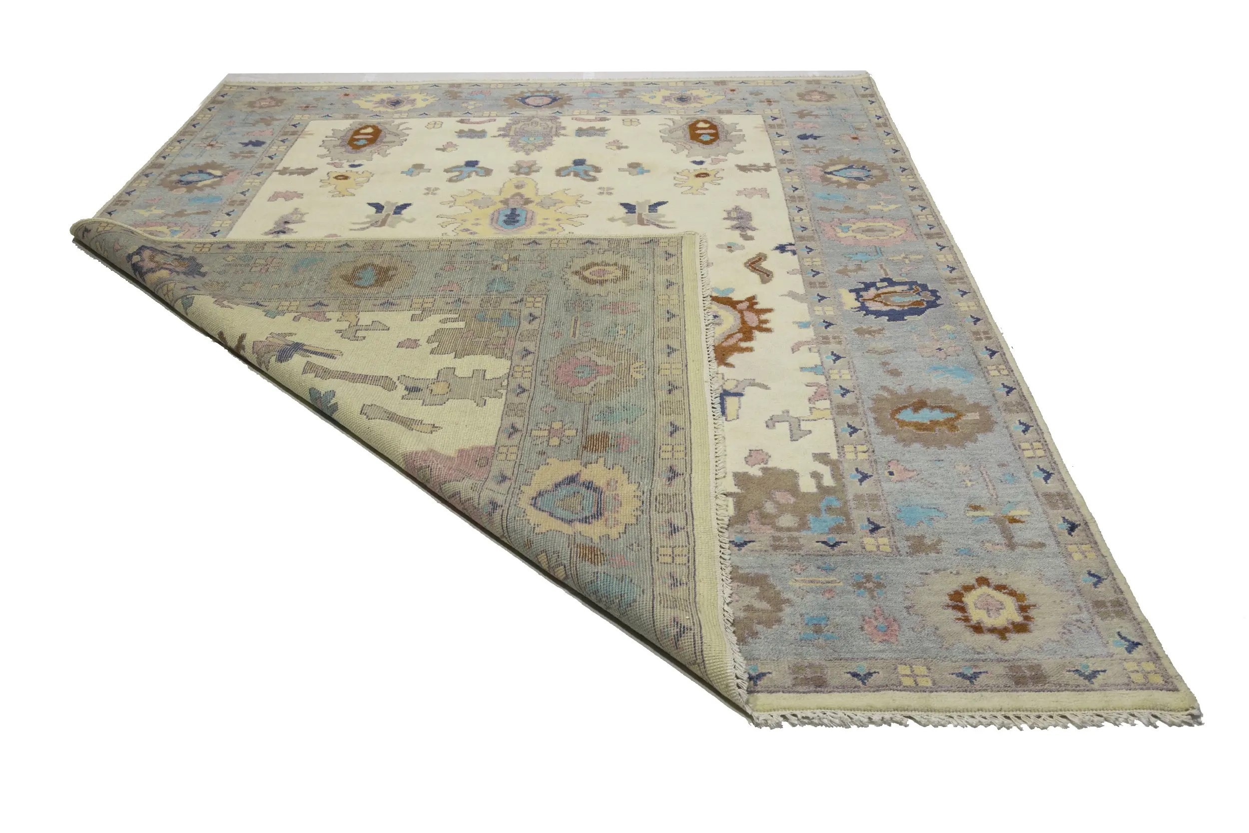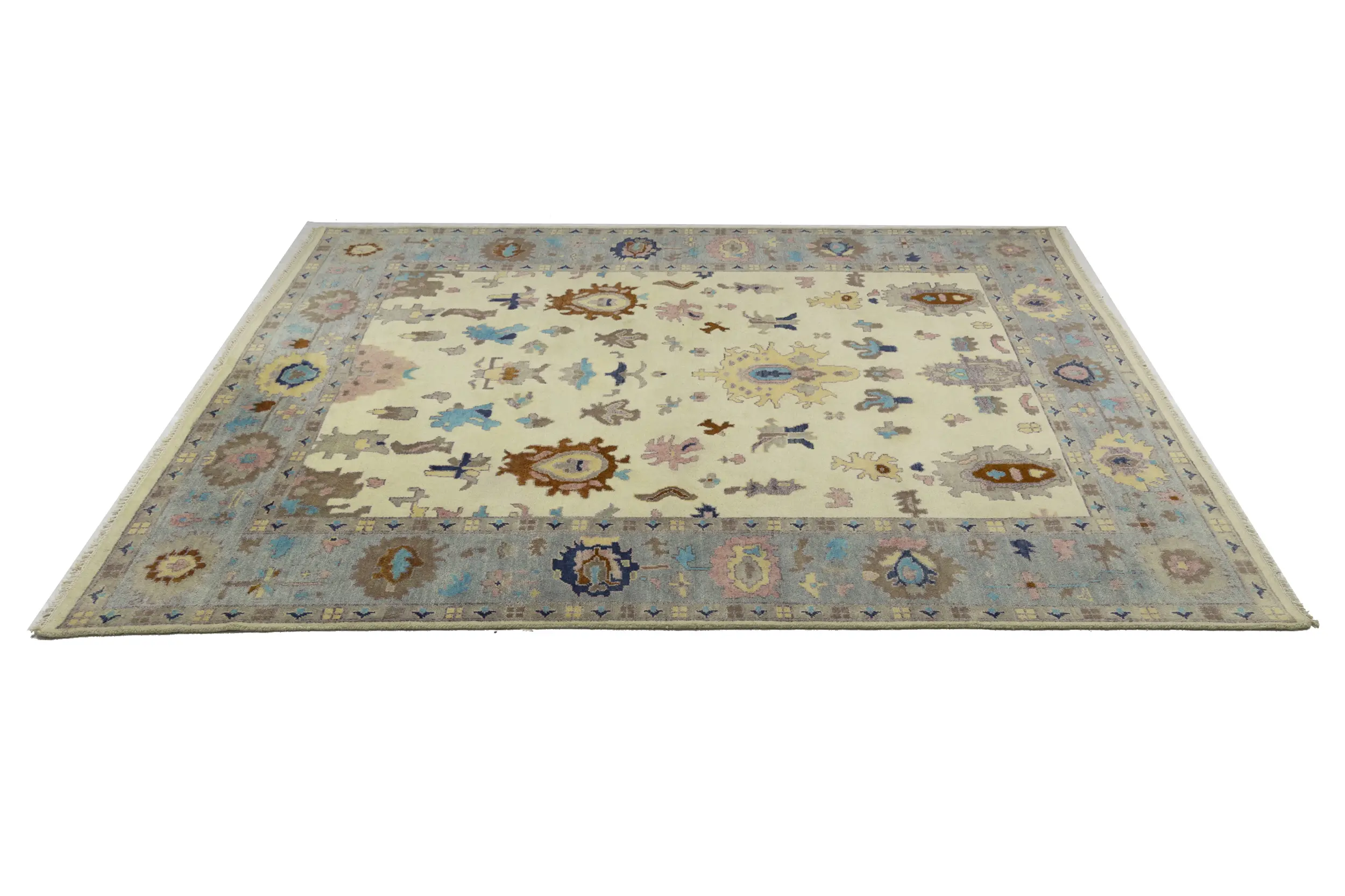 Cream Floral Colorfast 9X12 Oushak Chobi Oriental Rug