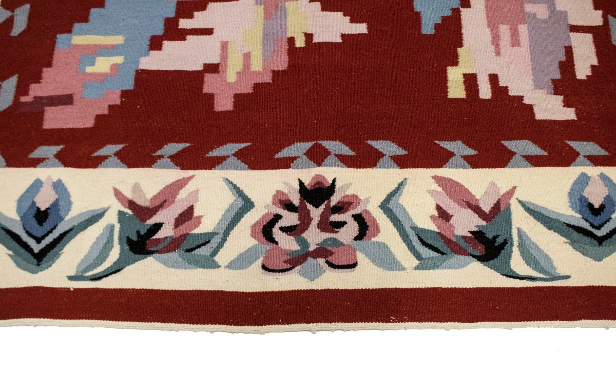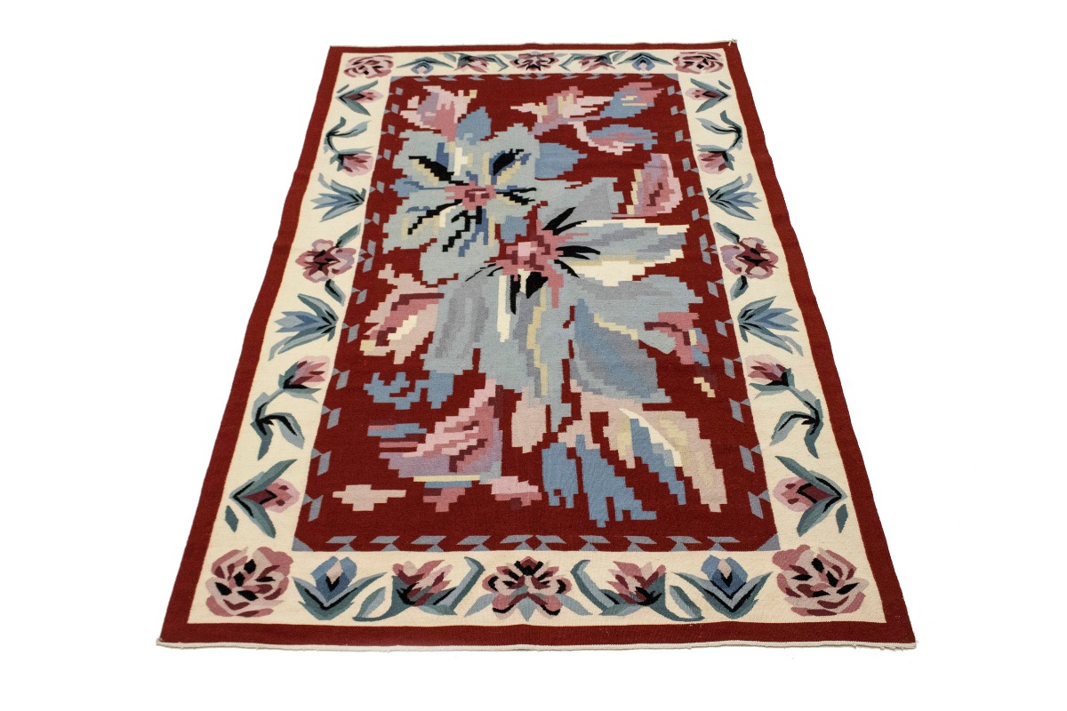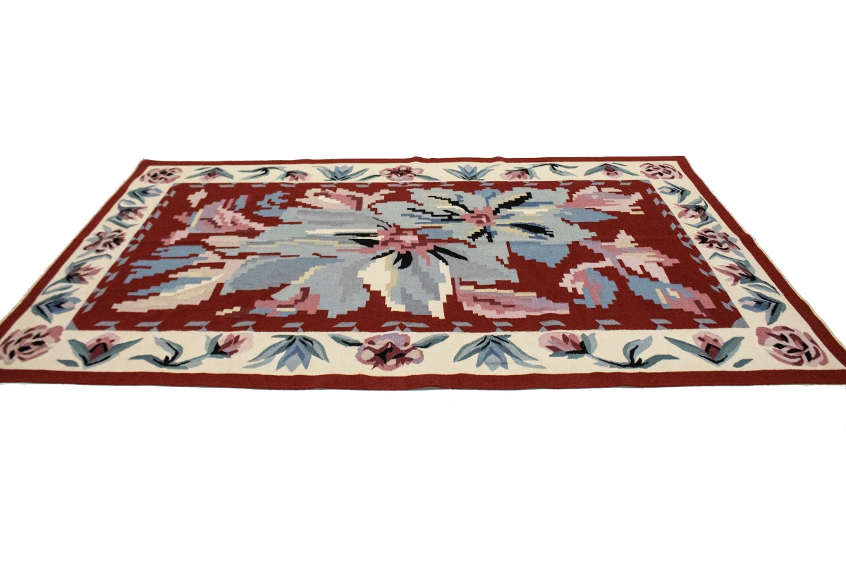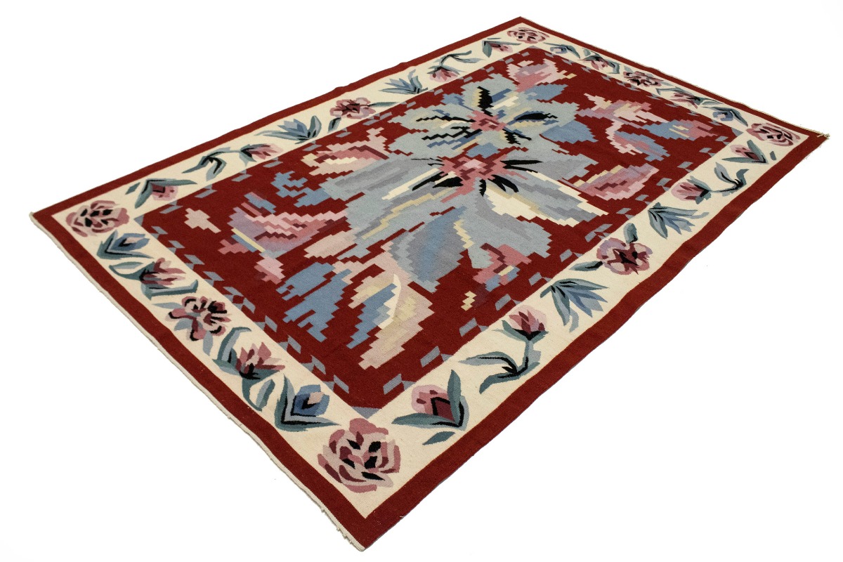 This 6X9 floral Dhurrie pileless flat tapestry-woven carpet of many uses produced by one of several flat-weaving techniques that have a common or closely related heritage and traditionally produced in countries of the former Persian Empire, North Africa, the Balkans, the Caucasus, Afghanistan, Pakistan, Turkic countries of Central Asia and China. Kilims can be purely decorative or can function as prayer rugs. Modern kilims are popular floor-coverings, hangings, some are bench or divan coverings, bags or mule saddles in Western households. RT-4082