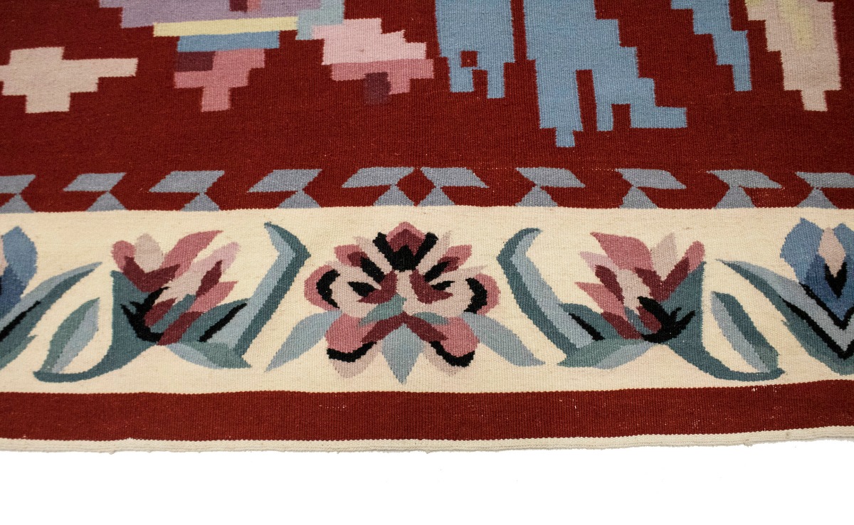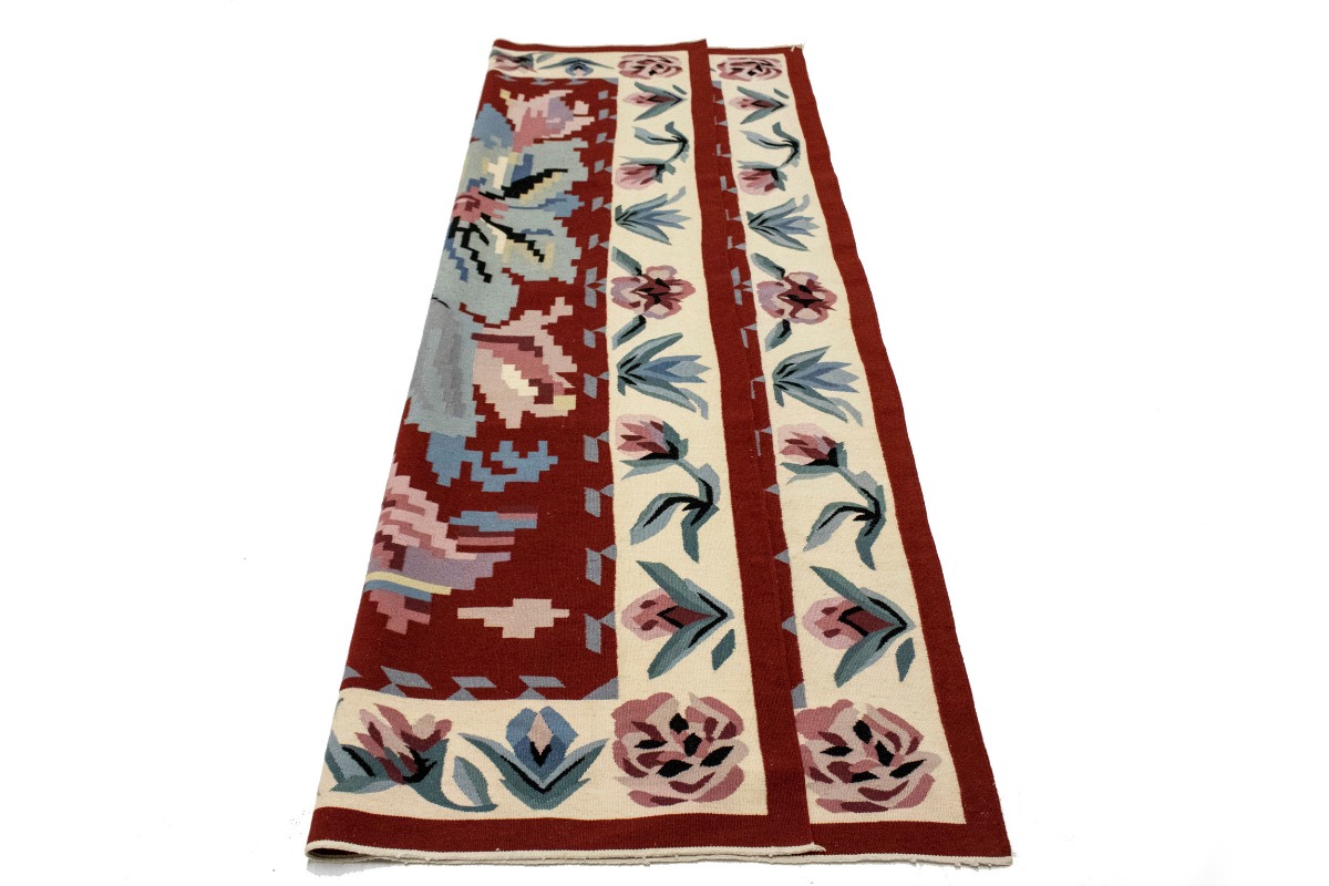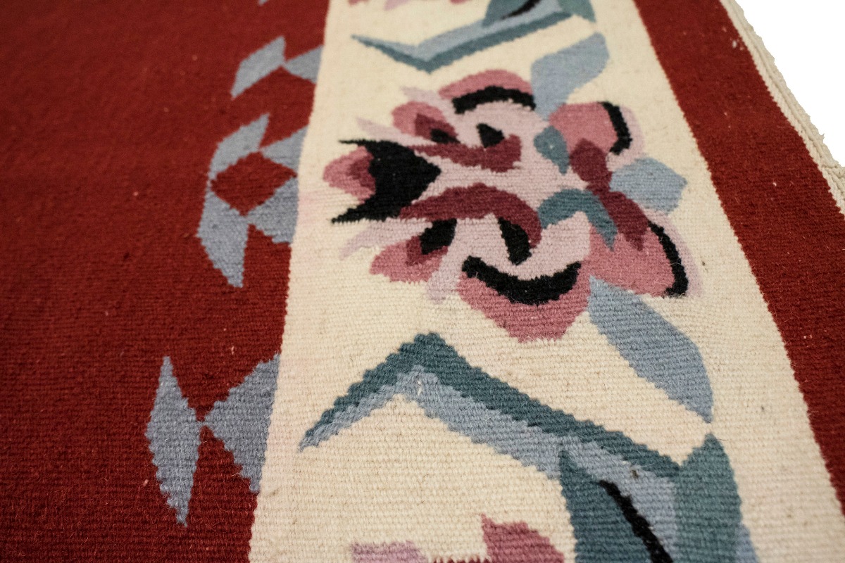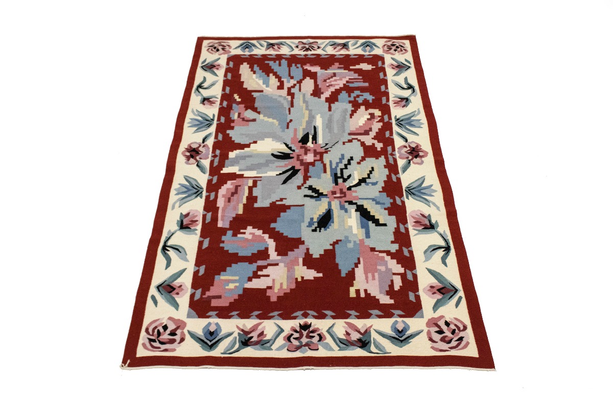 This 6X9 floral Dhurrie pileless flat tapestry-woven carpet of many uses produced by one of several flat-weaving techniques that have a common or closely related heritage and traditionally produced in countries of the former Persian Empire, North Africa, the Balkans, the Caucasus, Afghanistan, Pakistan, Turkic countries of Central Asia and China. Kilims can be purely decorative or can function as prayer rugs. Modern kilims are popular floor-coverings, hangings, some are bench or divan coverings, bags or mule saddles in Western households. RT-4082