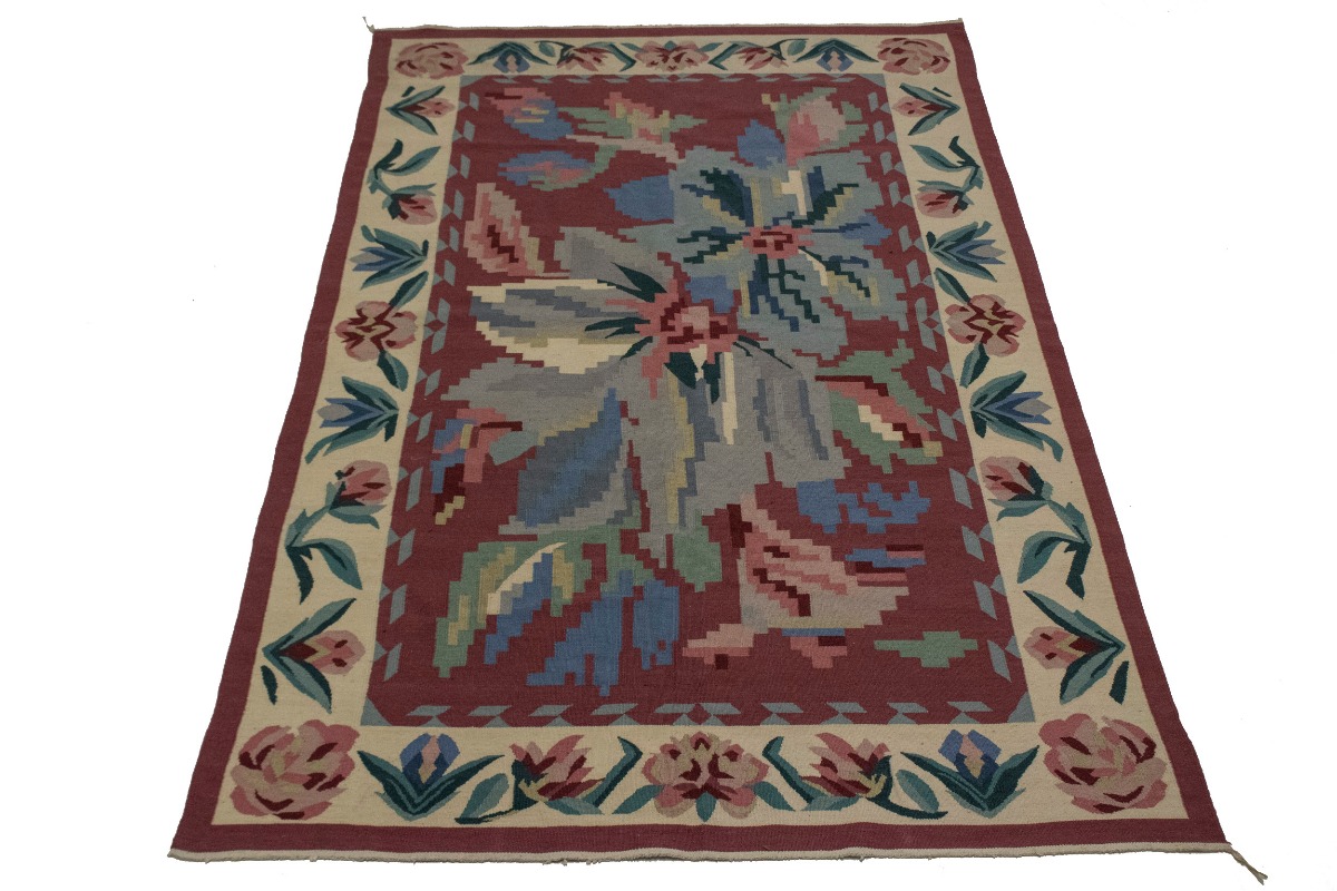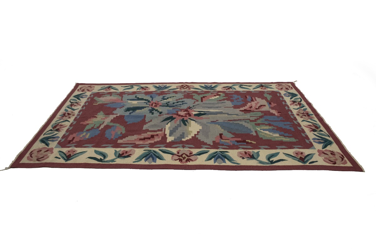 This 6X9 floral Dhurrie pileless flat tapestry-woven carpet of many uses produced by one of several flat-weaving techniques that have a common or closely related heritage and traditionally produced in countries of the former Persian Empire, North Africa, the Balkans, the Caucasus, Afghanistan, Pakistan, Turkic countries of Central Asia and China. Kilims can be purely decorative or can function as prayer rugs. Modern kilims are popular floor-coverings, hangings, some are bench or divan coverings, bags or mule saddles in Western households. RT-4078