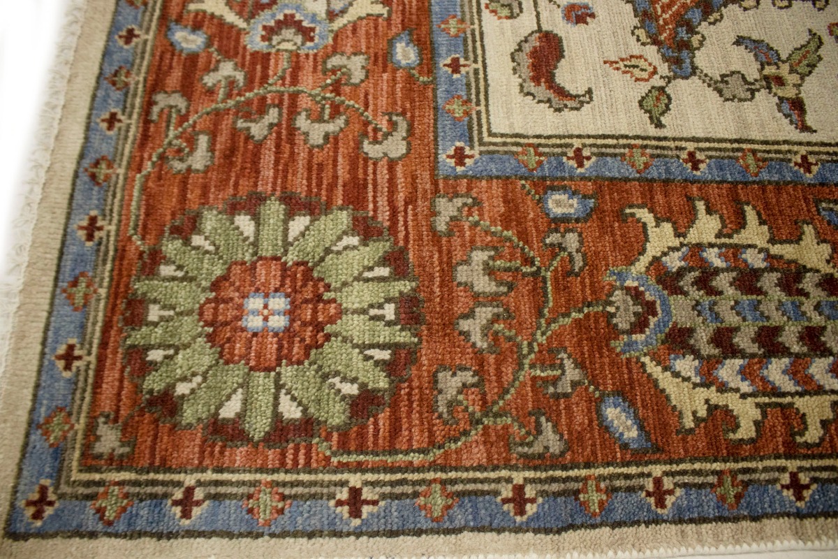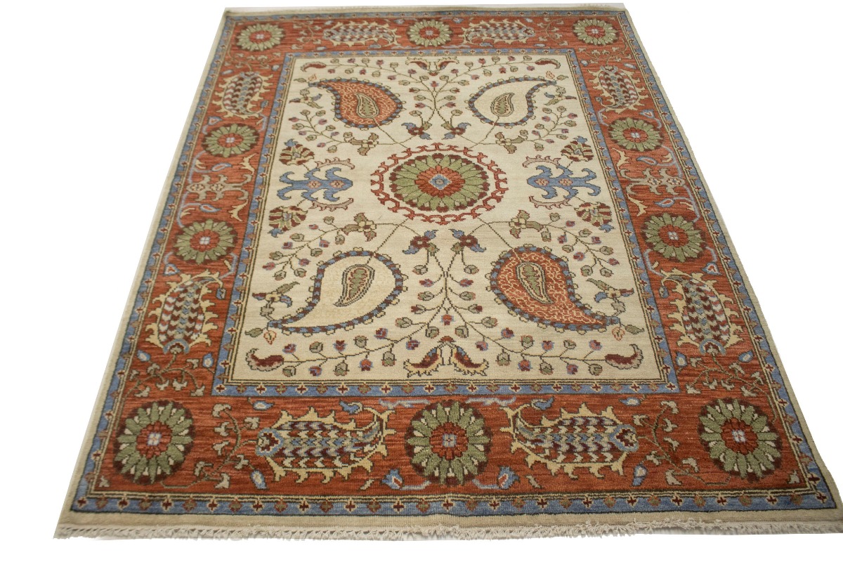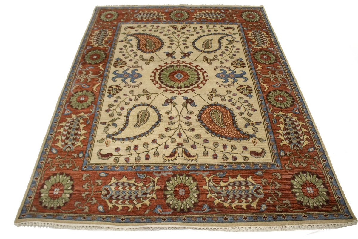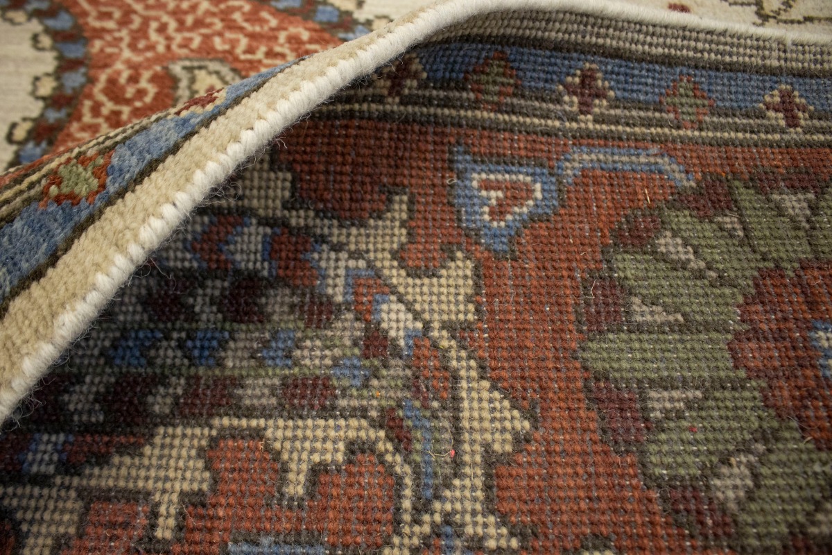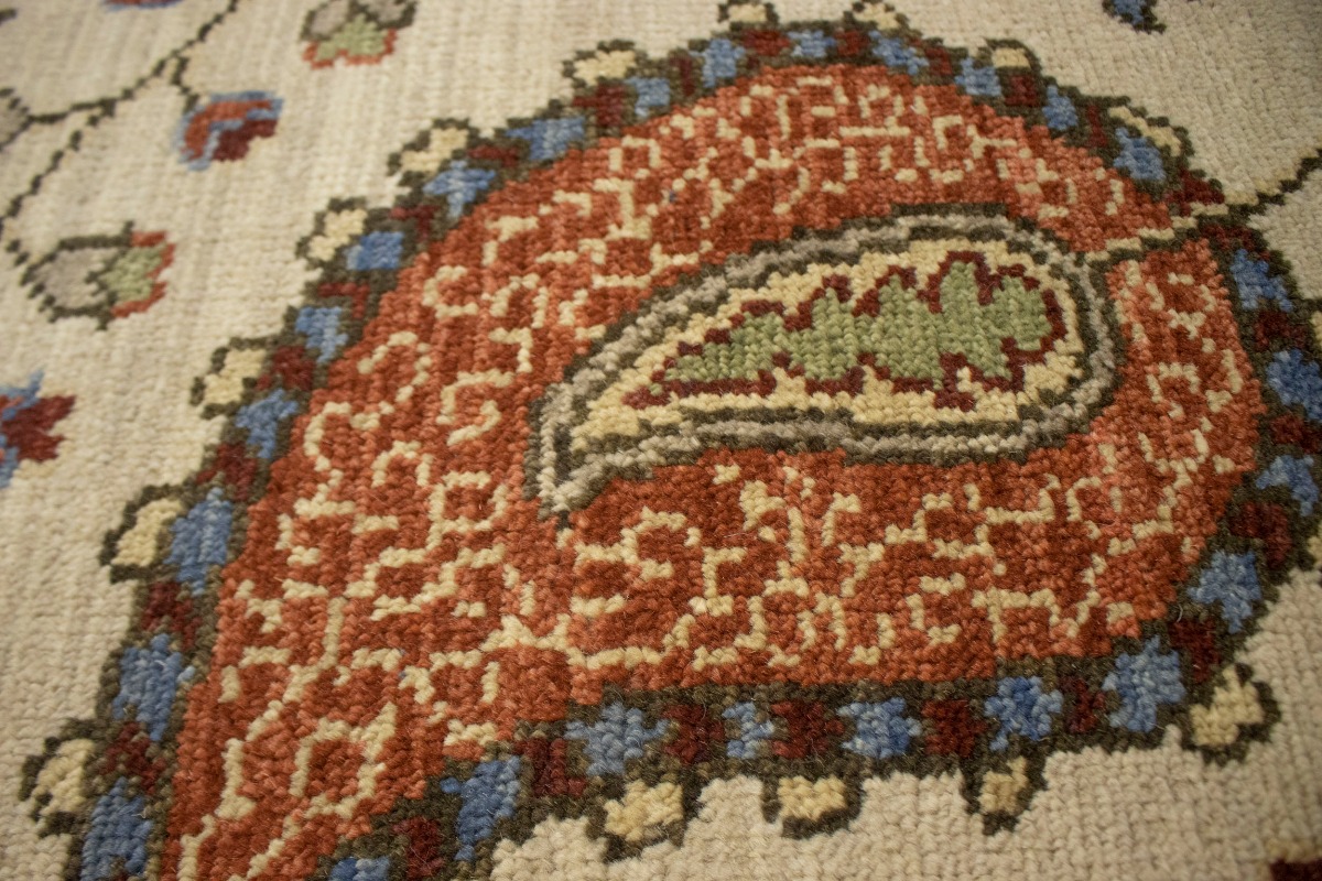 This authentic 8X10 cream new Oriental rug was crafted by the hands of skilled weavers enthused by a variety of lovely artistic designs, to recreate the aged look of the unique piece with a richness of color and beautifully elaborated background field. What set this vintage style Oriental area rug from the others are the material and dye used (wool pile and cotton foundation), knot count, ancient designs, fantastic grades, and its regional historical connection: it has deep roots, from the story of the people who produced it to the meaning of the symbols and colors displayed across its canvas that have been praised for centuries. This Indian home décor carpet will be completely cozy and inviting that never will go out of style! Also, this Oriental rug would be among your most valuable treasures, it is a great investment that increase in value over time, and it will last for generations because was woven with high-quality, all-natural wool. Environmentally friendly, opulent yet affordable; this rug will give you a thorough amount of character to help define your living space with sophistication and warmth that will capture the eyes and attention of your audience (homeowners, designers, decorators, family and friends). OT-3717