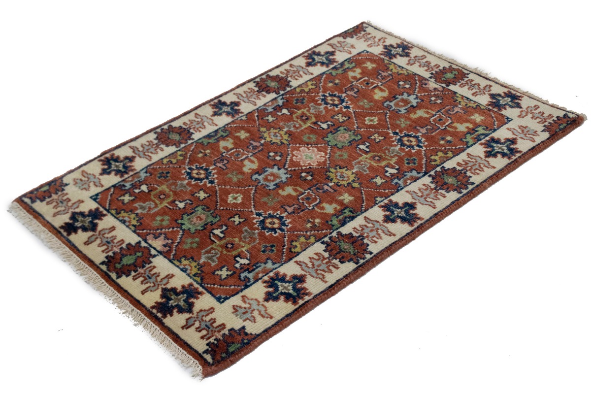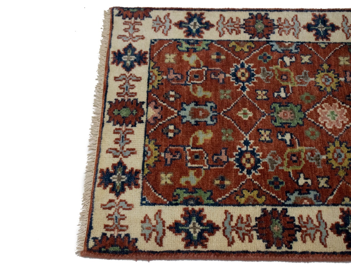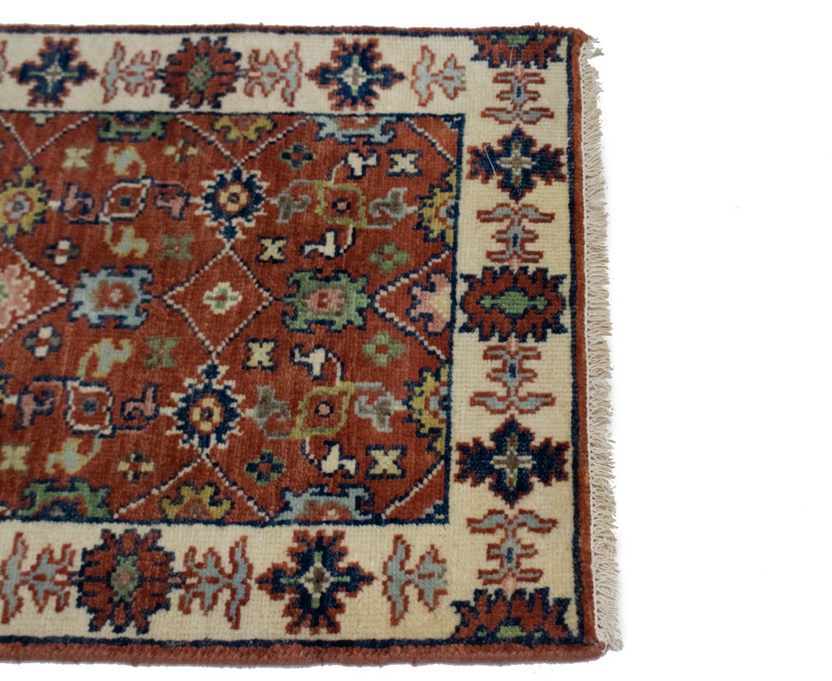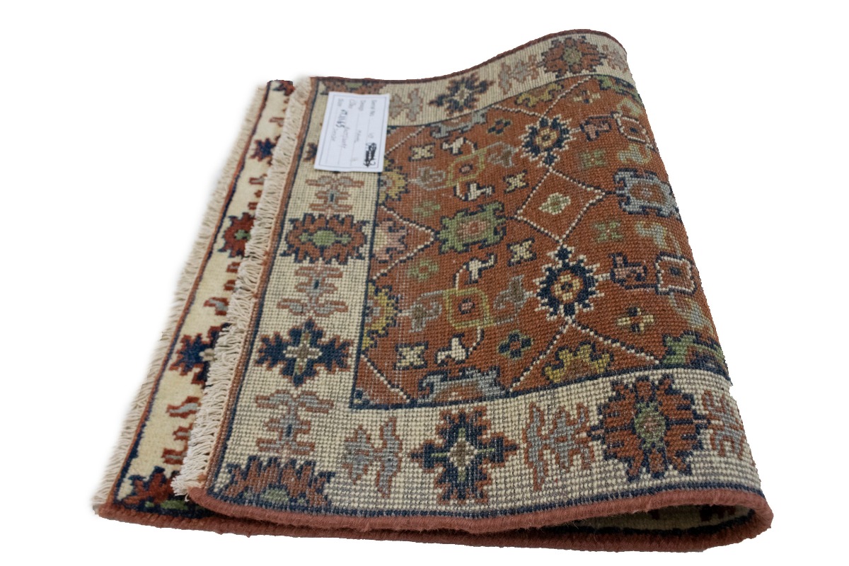 This original 2X3 rust new Oriental rug was finely knotted by the hands of weavers influenced by a variety of amazing artistic designs, to recreate the aged look of the exceptional piece with a richness of color and embellished background field. What set this vintage style Oriental area rug from the others are the material and dye used (wool pile and cotton foundation), knot count, antique designs, fantastic grades, and its regional historical connection: it has deep roots, from the story of the people who produced it to the meaning of the symbols and colors displayed across its canvas that have been praised for centuries. This Indian home décor carpet will be completely cozy and inviting that never will go out of style! Also, this Oriental rug would be among your most valuable treasures, it is a great investment that increase in value over time, and it will last a lifetime because was woven with high-quality, all-natural wool. Eco-friendly, opulent yet affordable; this rug/runner will give you an extra pop of character to help define your home environment with luxury and warmth that will capture the eyes and attention of your audience (homeowners, designers, decorators, family and friends).