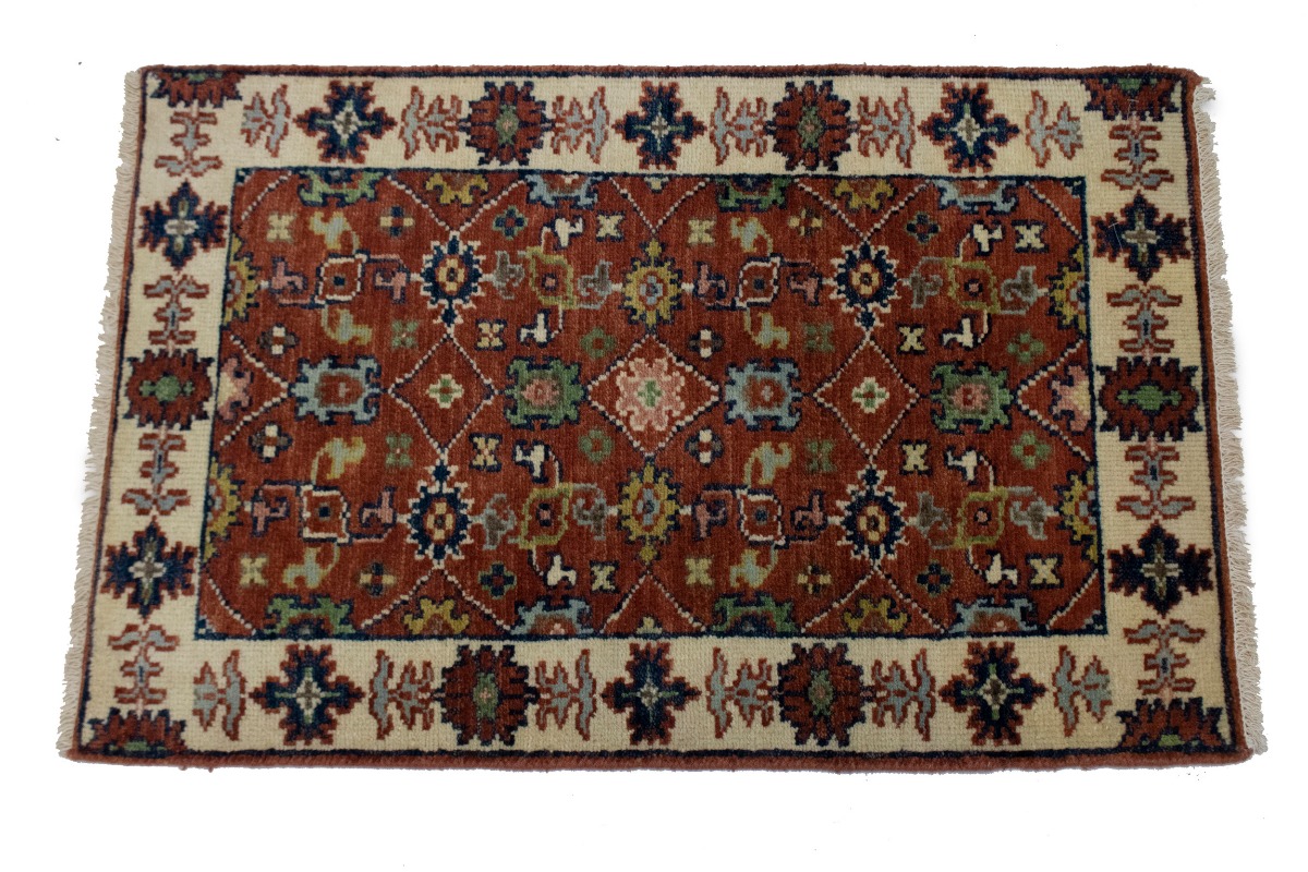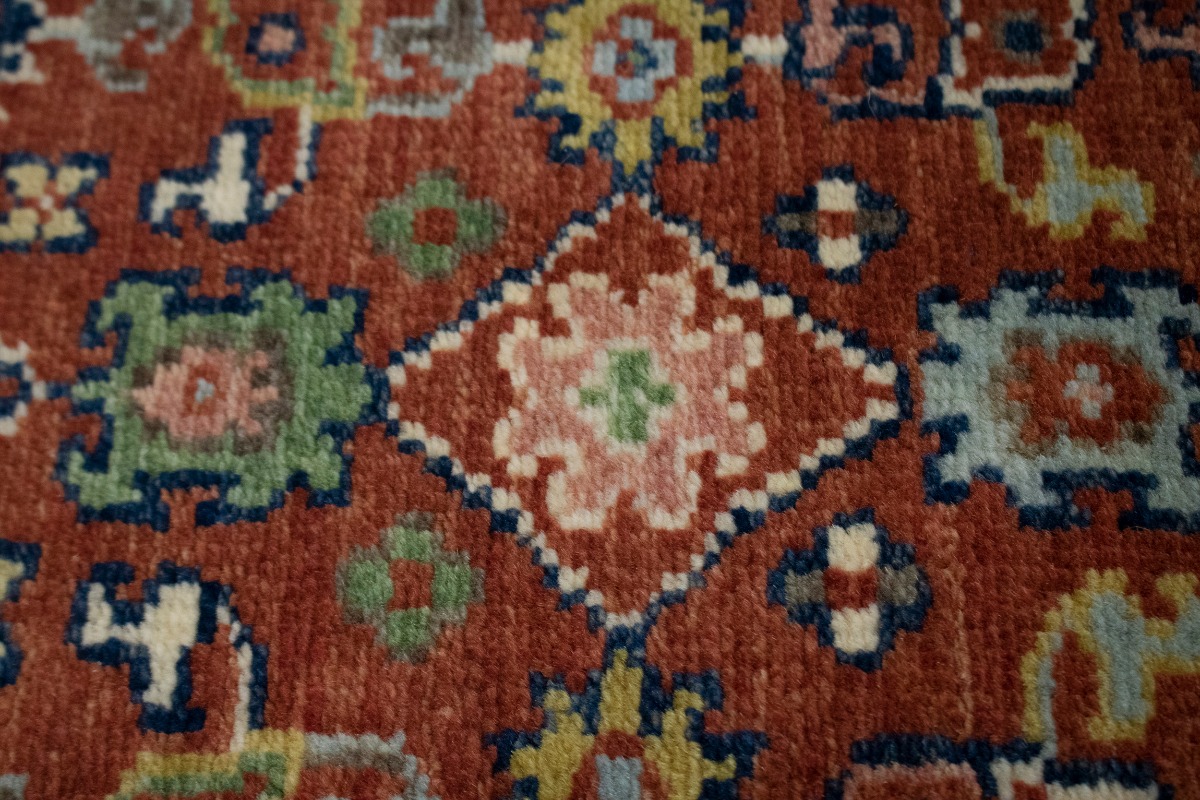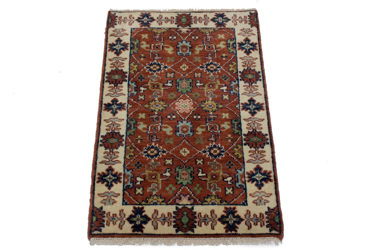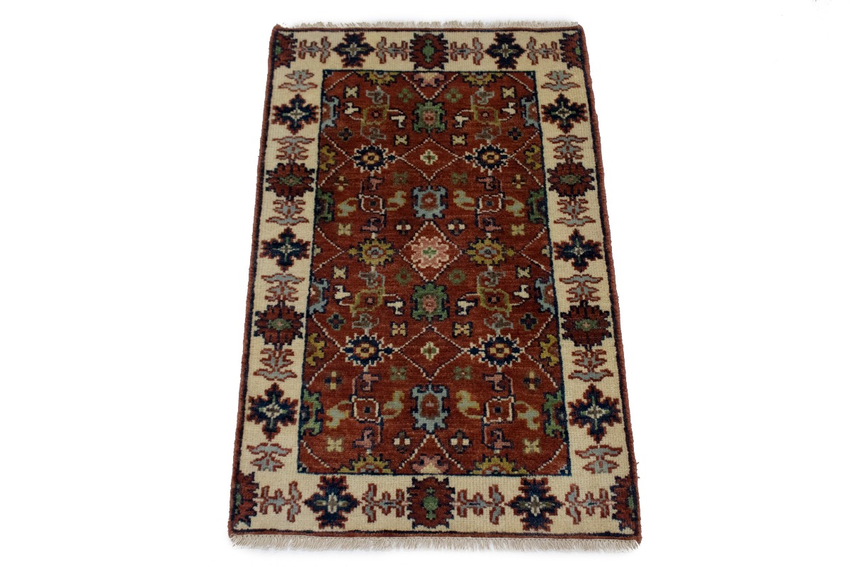 This original 2X3 rust new Oriental rug was finely knotted by the hands of weavers influenced by a variety of amazing artistic designs, to recreate the aged look of the exceptional piece with a richness of color and embellished background field. What set this vintage style Oriental area rug from the others are the material and dye used (wool pile and cotton foundation), knot count, antique designs, fantastic grades, and its regional historical connection: it has deep roots, from the story of the people who produced it to the meaning of the symbols and colors displayed across its canvas that have been praised for centuries. This Indian home décor carpet will be completely cozy and inviting that never will go out of style! Also, this Oriental rug would be among your most valuable treasures, it is a great investment that increase in value over time, and it will last a lifetime because was woven with high-quality, all-natural wool. Eco-friendly, opulent yet affordable; this rug/runner will give you an extra pop of character to help define your home environment with luxury and warmth that will capture the eyes and attention of your audience (homeowners, designers, decorators, family and friends).