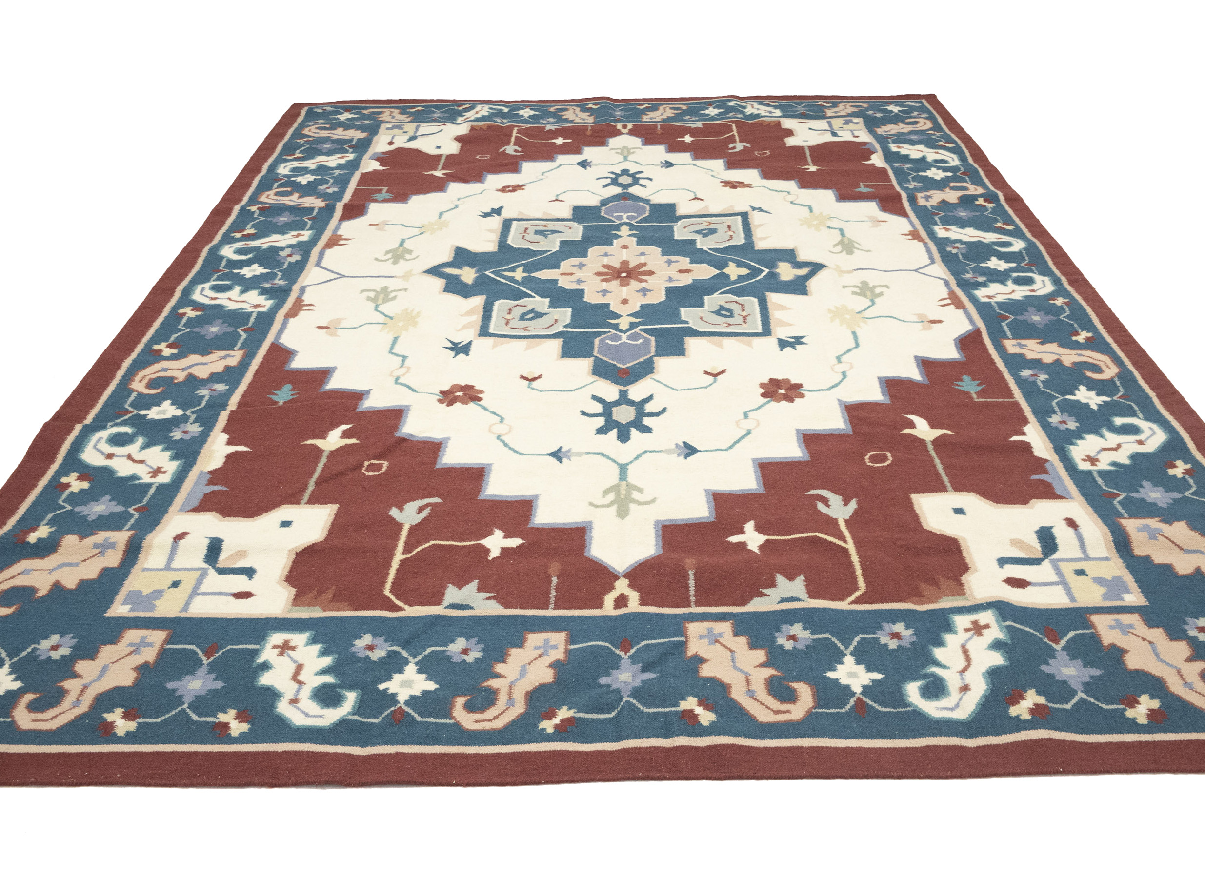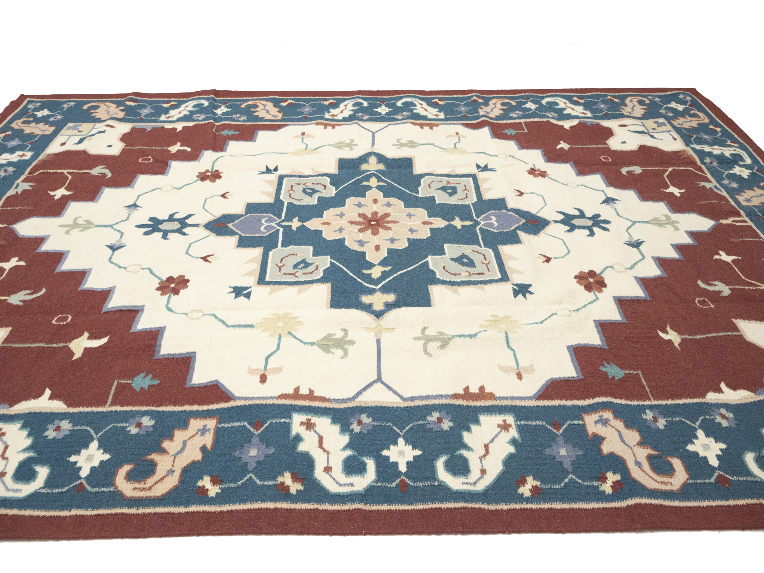 Cream Geometric Dhurrie 9X12 Modern Oriental Rug