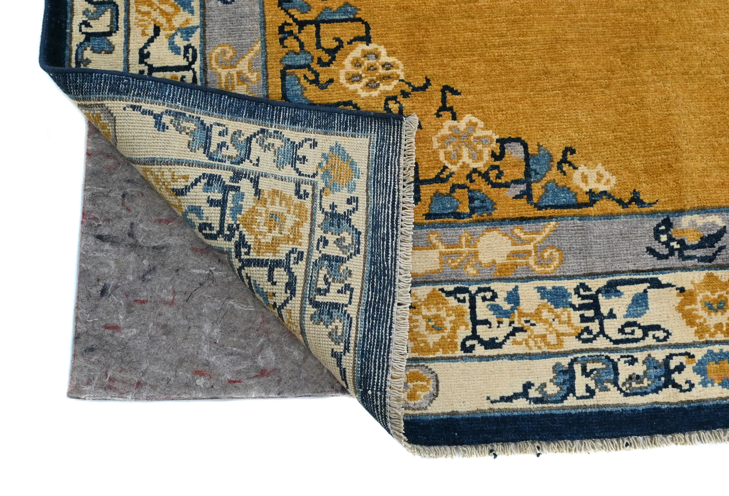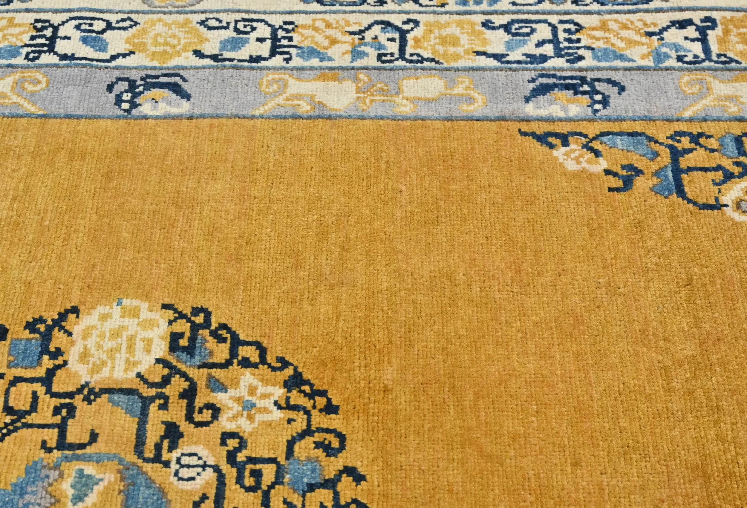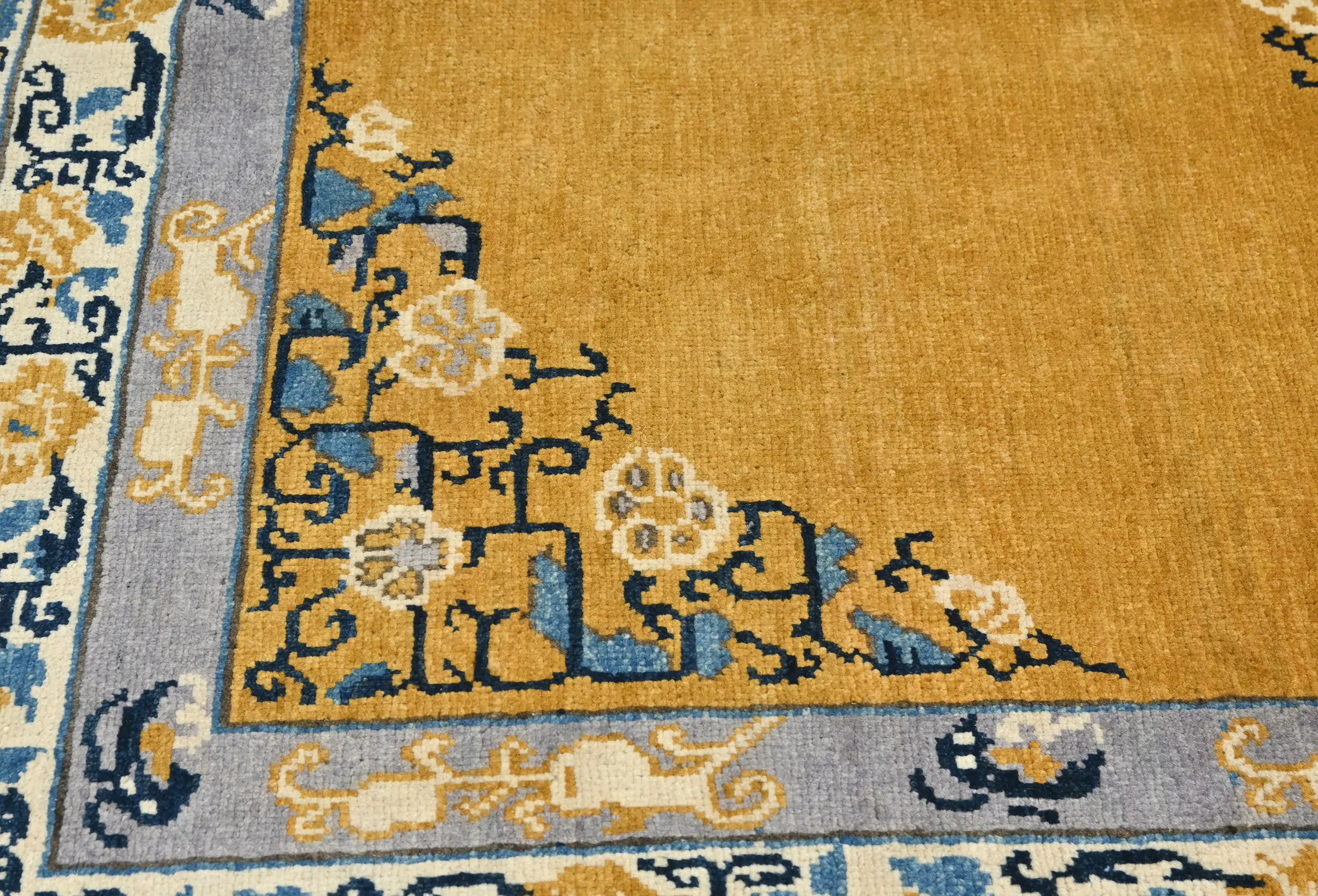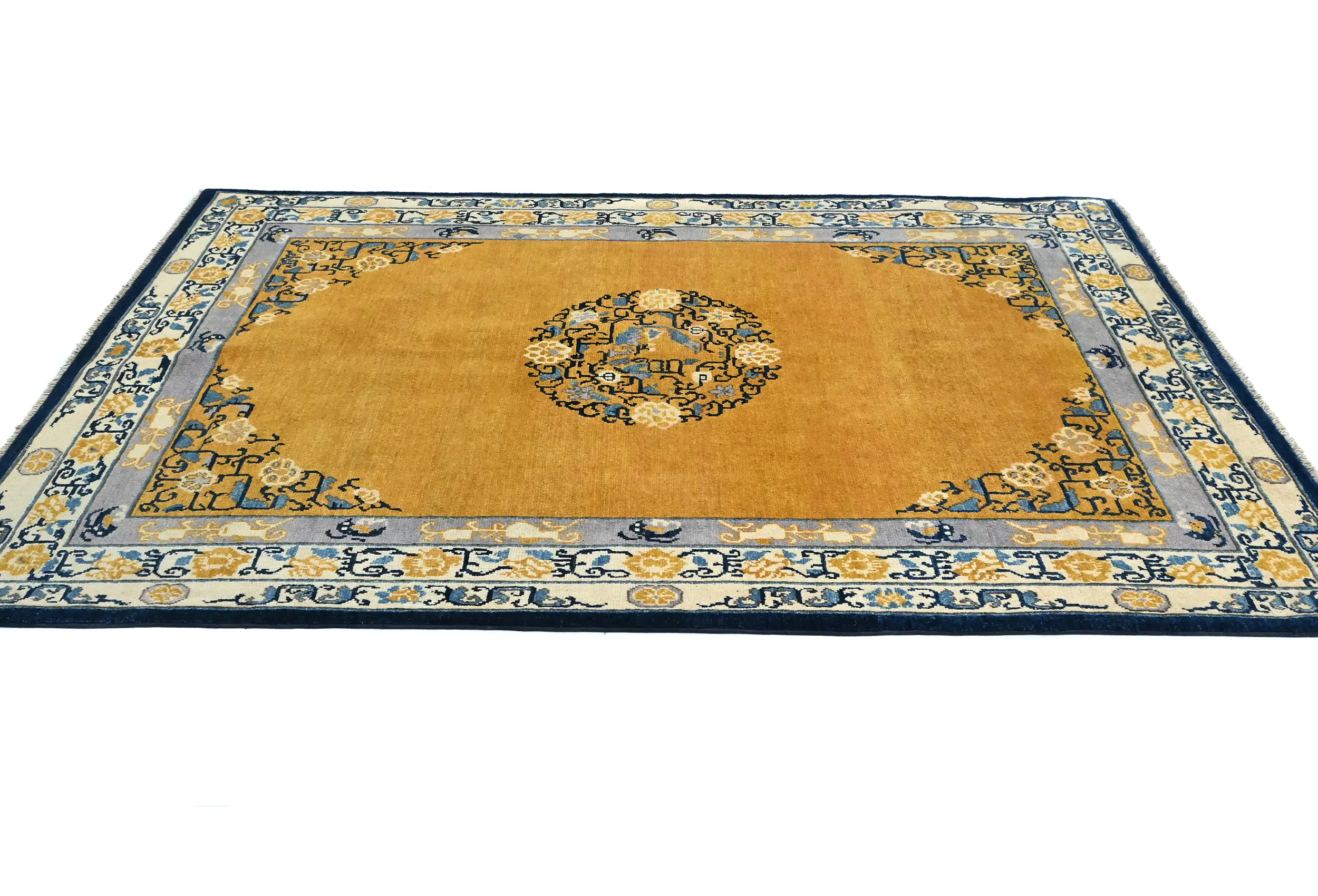 Hand Knotted 5X7 gold Oriental rug made with vegetable dyes (fine wool pile and cotton foundation), exceptional knot count, and appealing ancient designs. This Oriental rug never will go out of style and would be among your most valuable treasures.