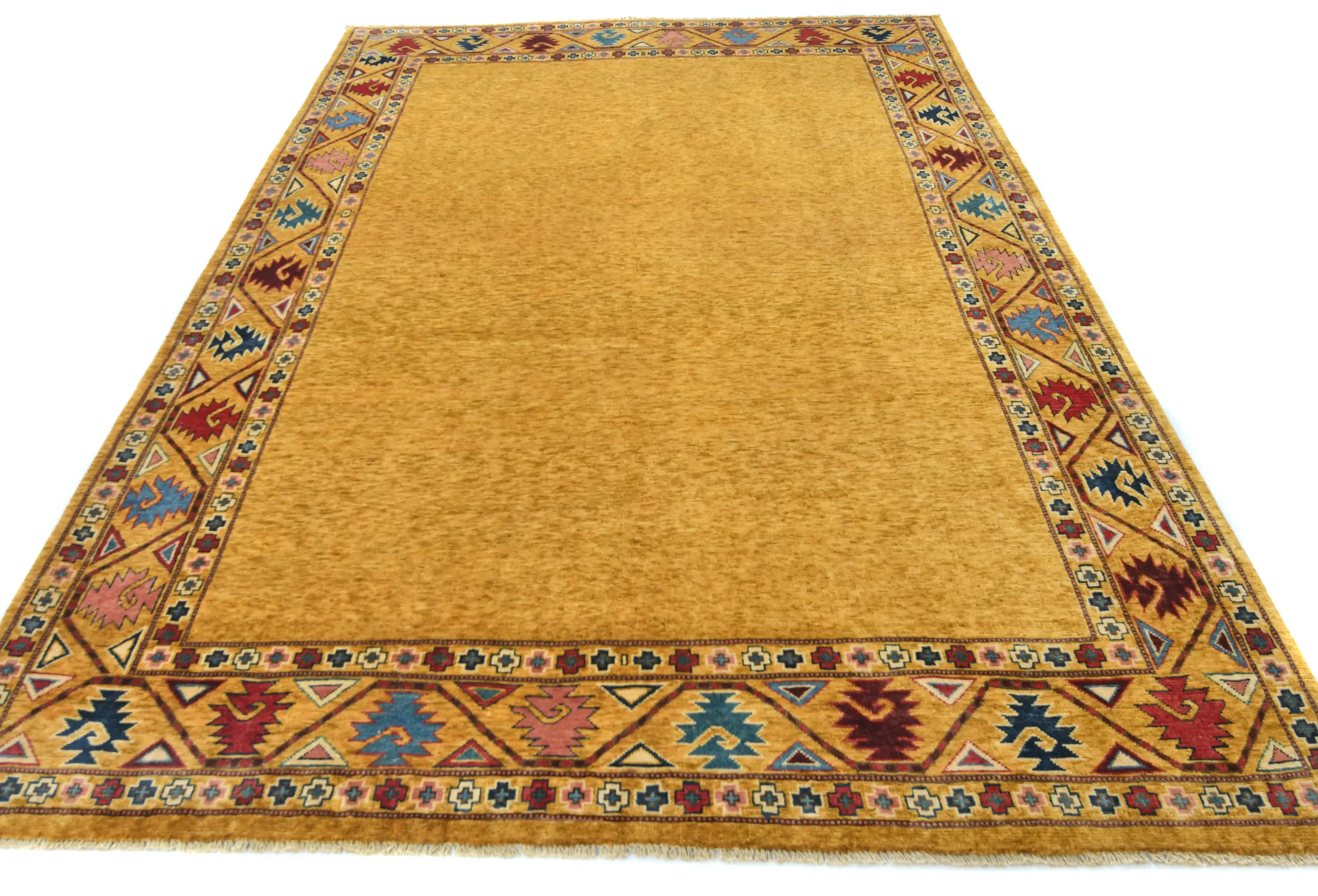 Hand Knotted 6X9 gold Oriental rug made with vegetable dyes (fine wool pile and cotton foundation), exceptional knot count, and appealing ancient designs. This Oriental rug never will go out of style and would be among your most valuable treasures.