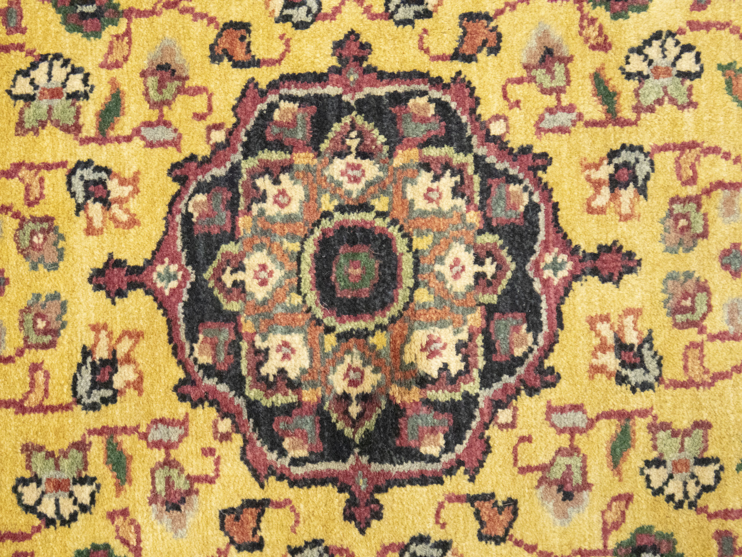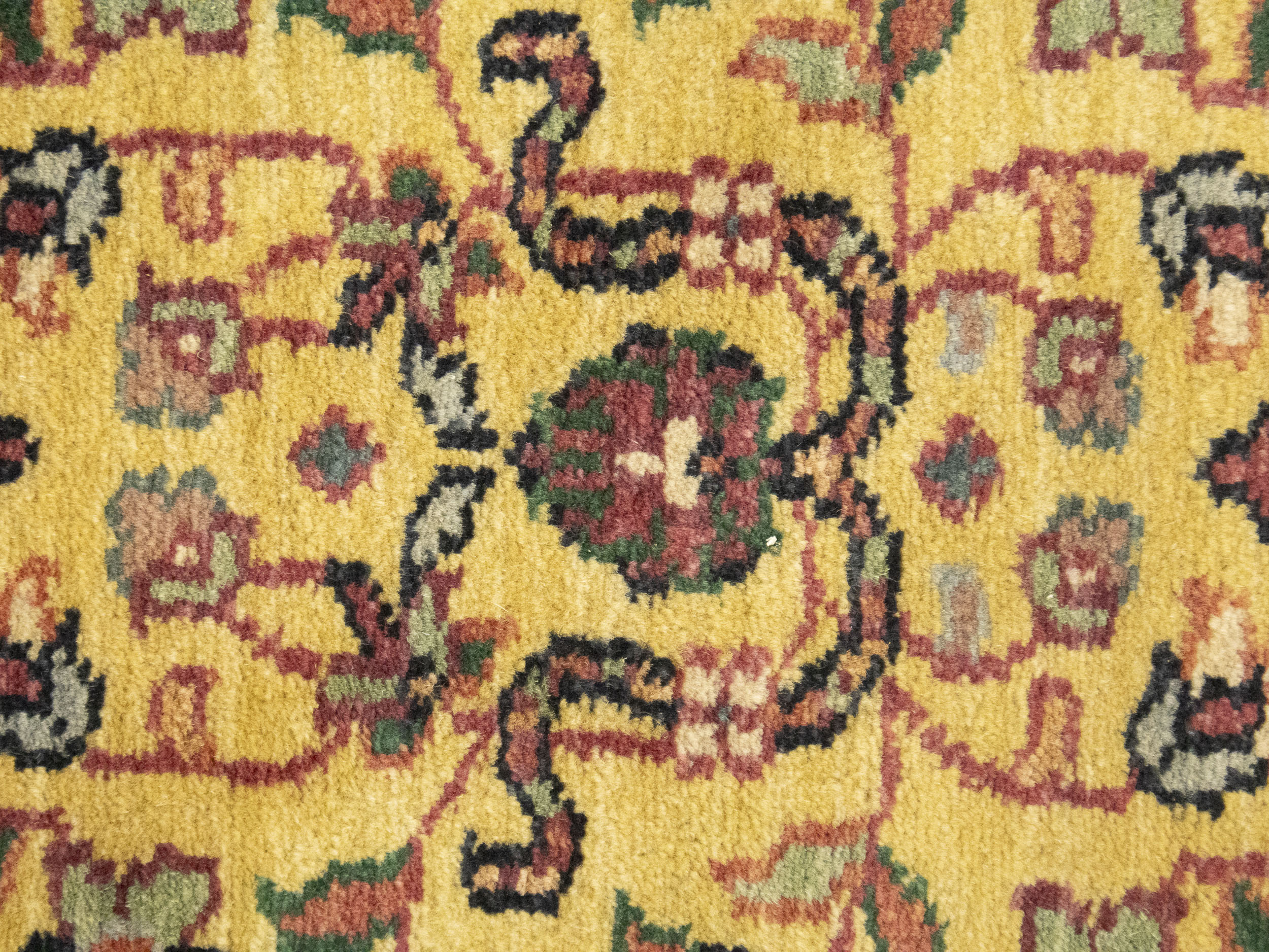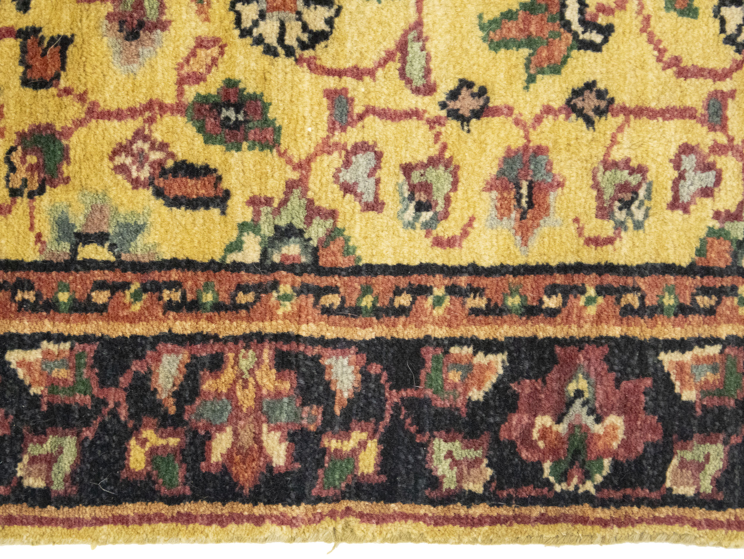 This authentic 2'6X12 Golden Beige new Oriental runner was crafted by the hands of skilled weavers enthused by a variety of lovely artistic designs, to recreate the aged look of the unique piece with a richness of color and beautifully elaborated background field. What set this vintage style Oriental area runner from the others are the material and dye used (wool pile and cotton foundation), knot count, ancient designs, fantastic grades, and its regional historical connection: it has deep roots, from the story of the people who produced it to the meaning of the symbols and colors displayed across its canvas that have been praised for centuries. This Indian home décor carpet will be completely cozy and inviting that never will go out of style! Also, this Oriental rug would be among your most valuable treasures, it is a great investment that increase in value over time, and it will last for generations because was woven with high-quality, all-natural wool. Environmentally friendly, opulent yet affordable; this runner will give you a thorough amount of character to help define your living space with sophistication and warmth that will capture the eyes and attention of your audience (homeowners, designers, decorators, family and friends). OT-7766