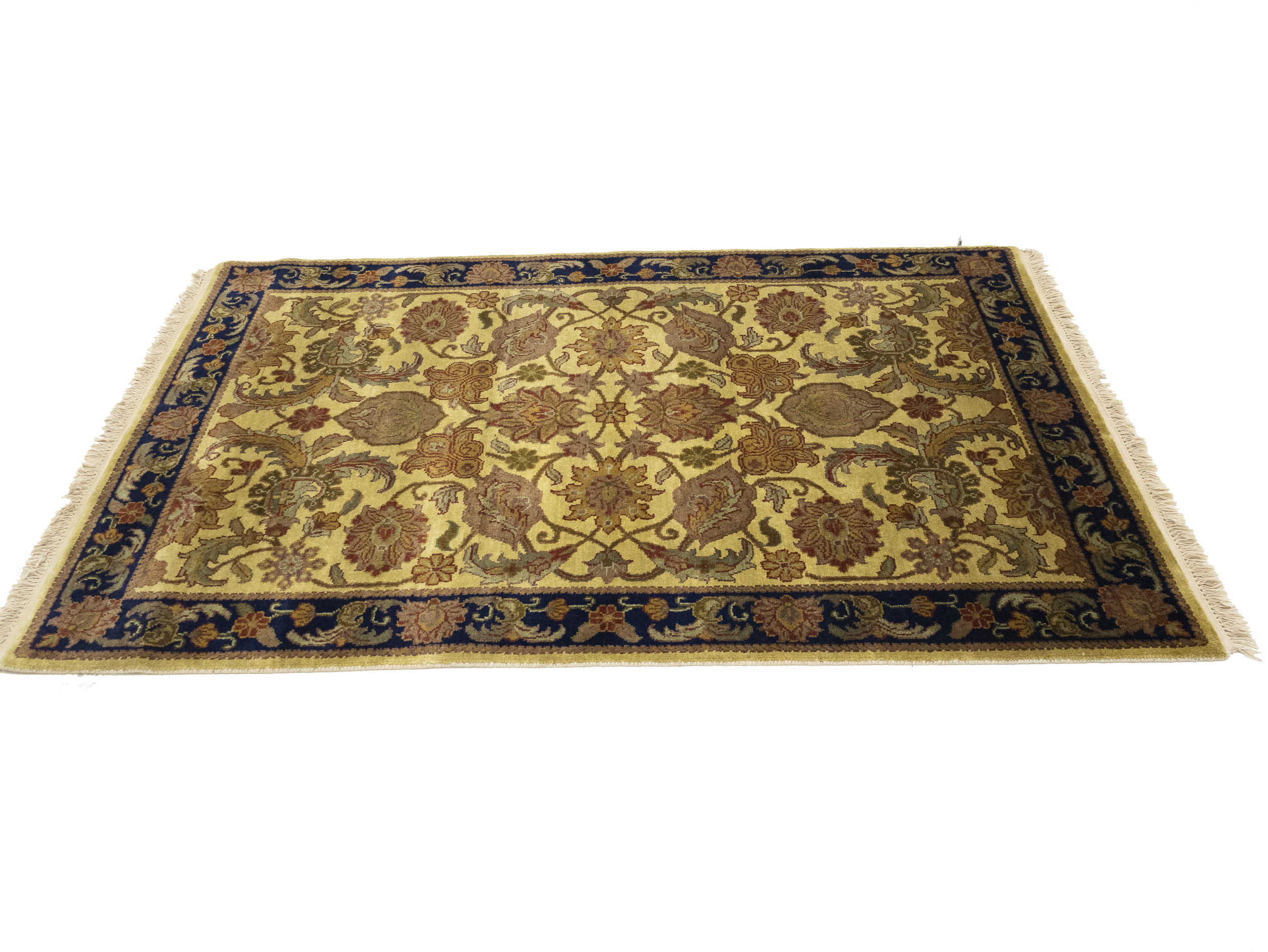 Handmade 4X6 golden beige oriental rug made with vegetable dyes (fine wool pile and cotton foundation), exceptional knot count, and appealing ancient designs. This Oriental rug never will go out of style and would be among your most valuable treasures.