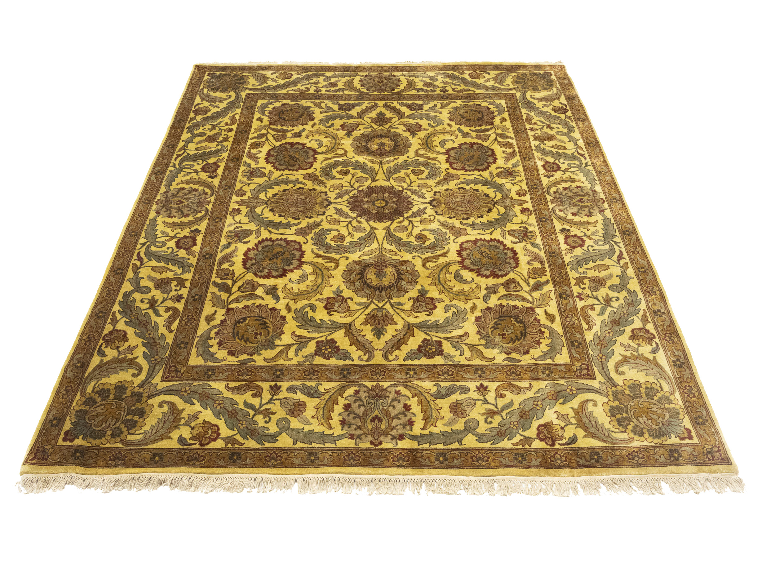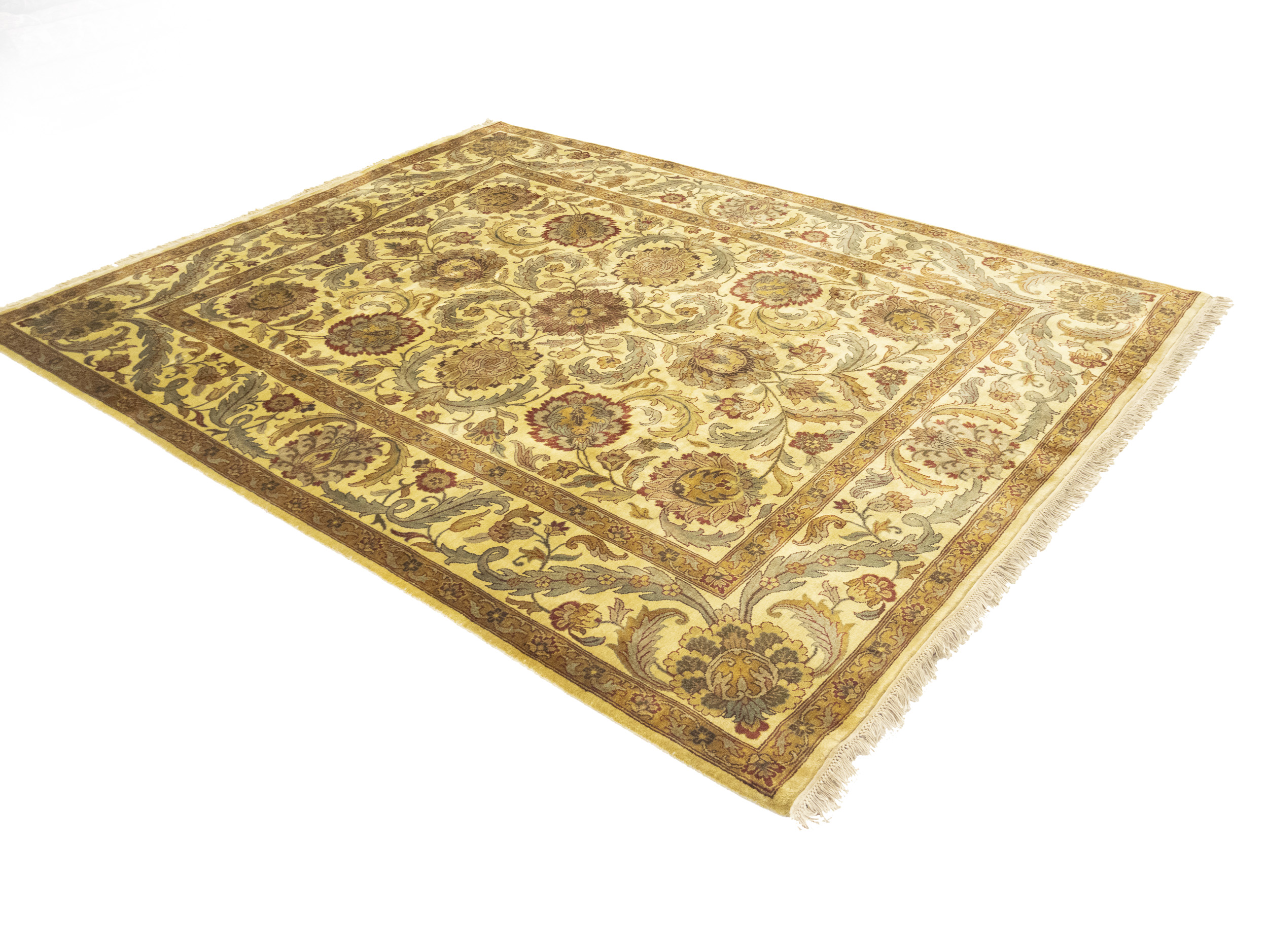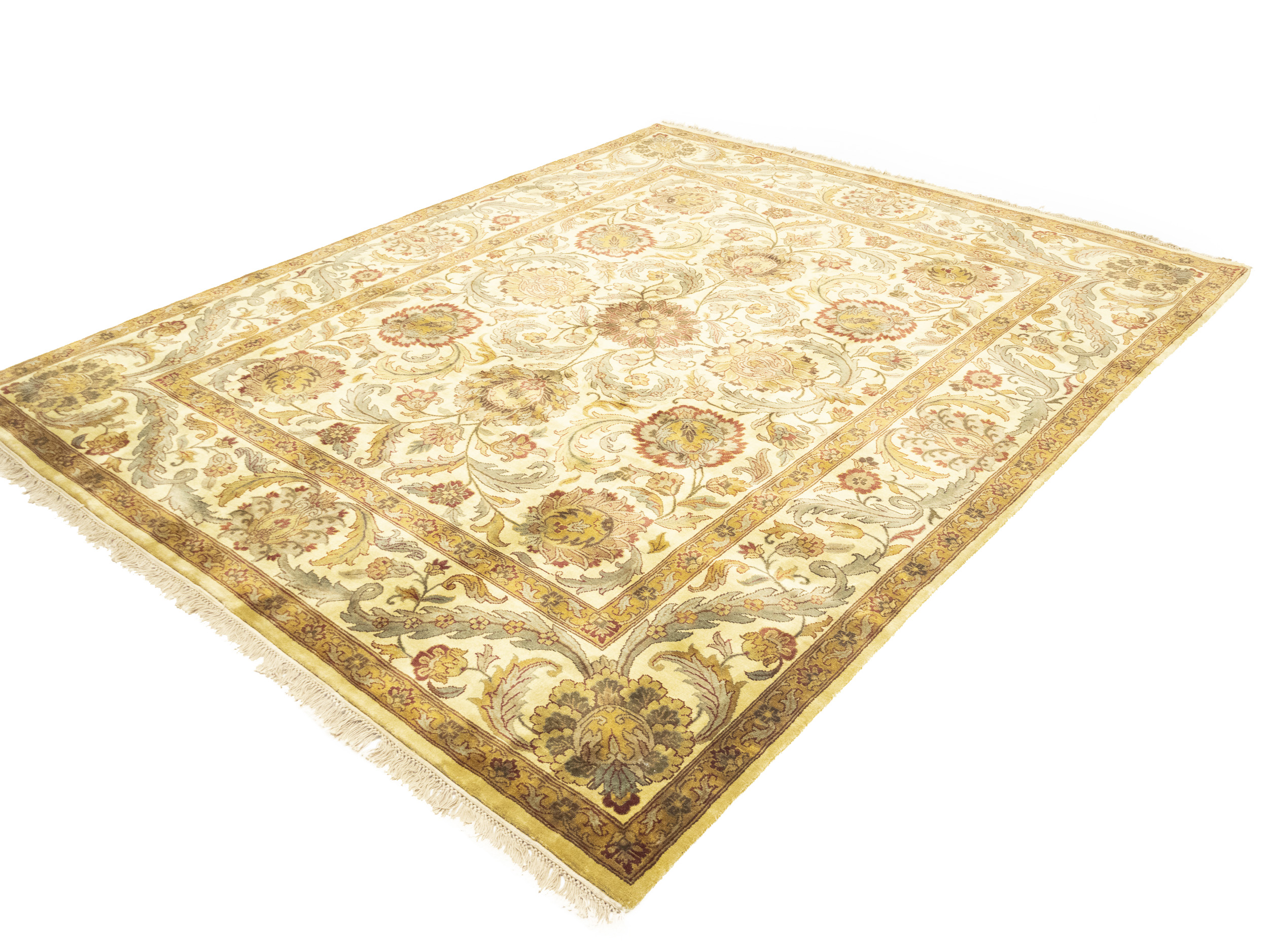 Golden Beige Floral Classic 8X10 Agra Jaipur Oriental Rug