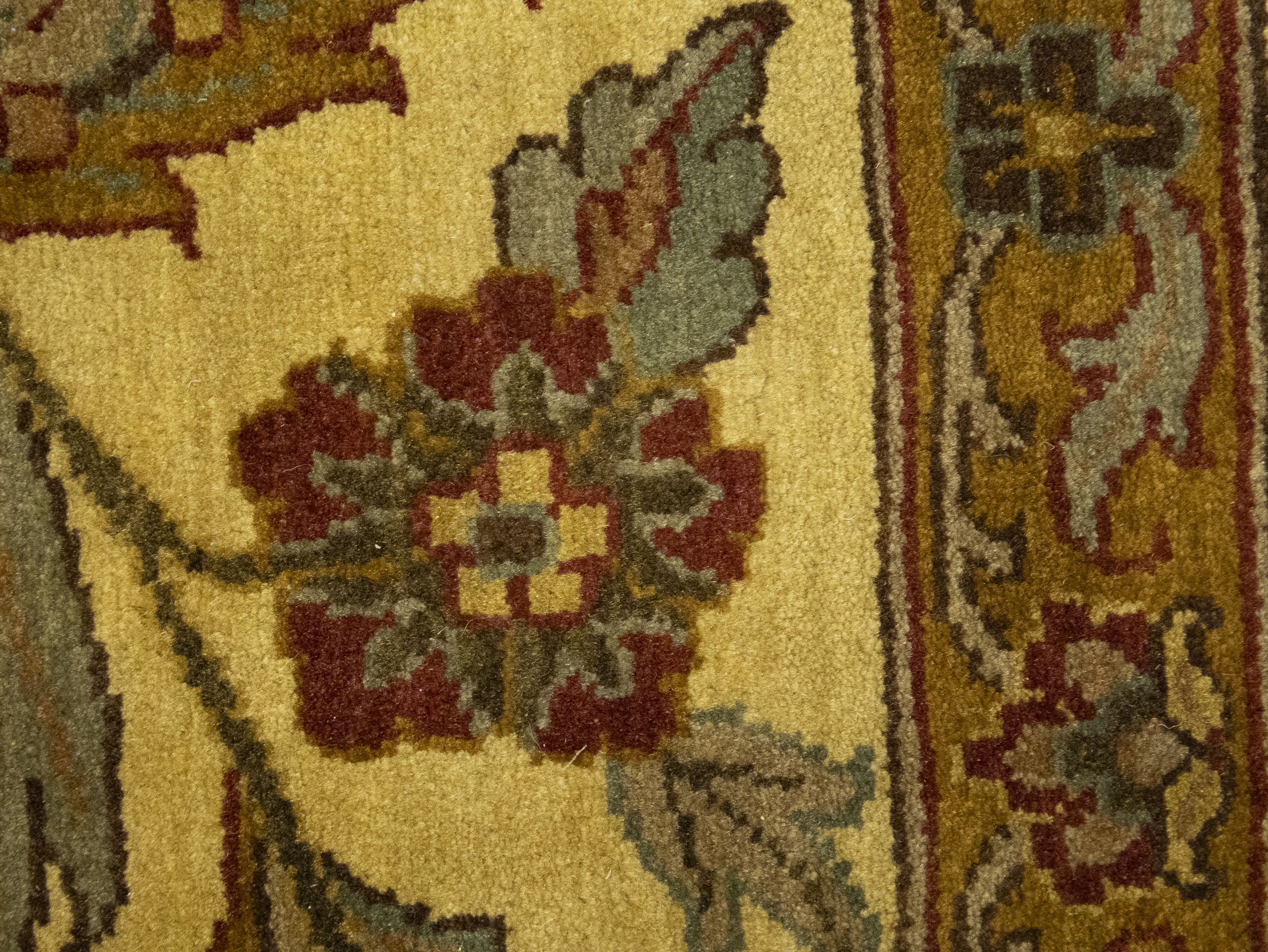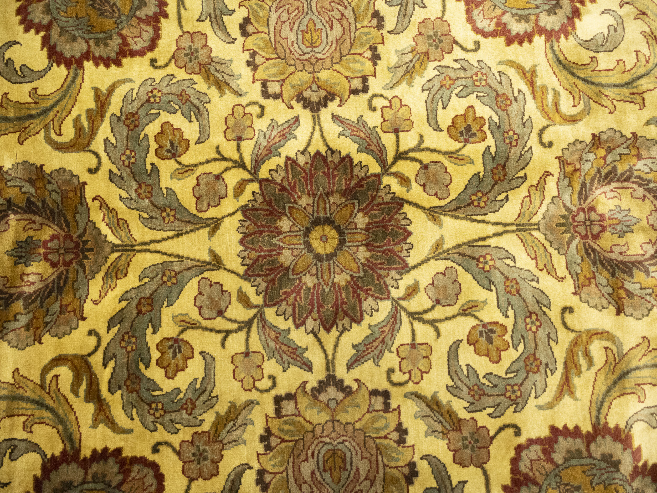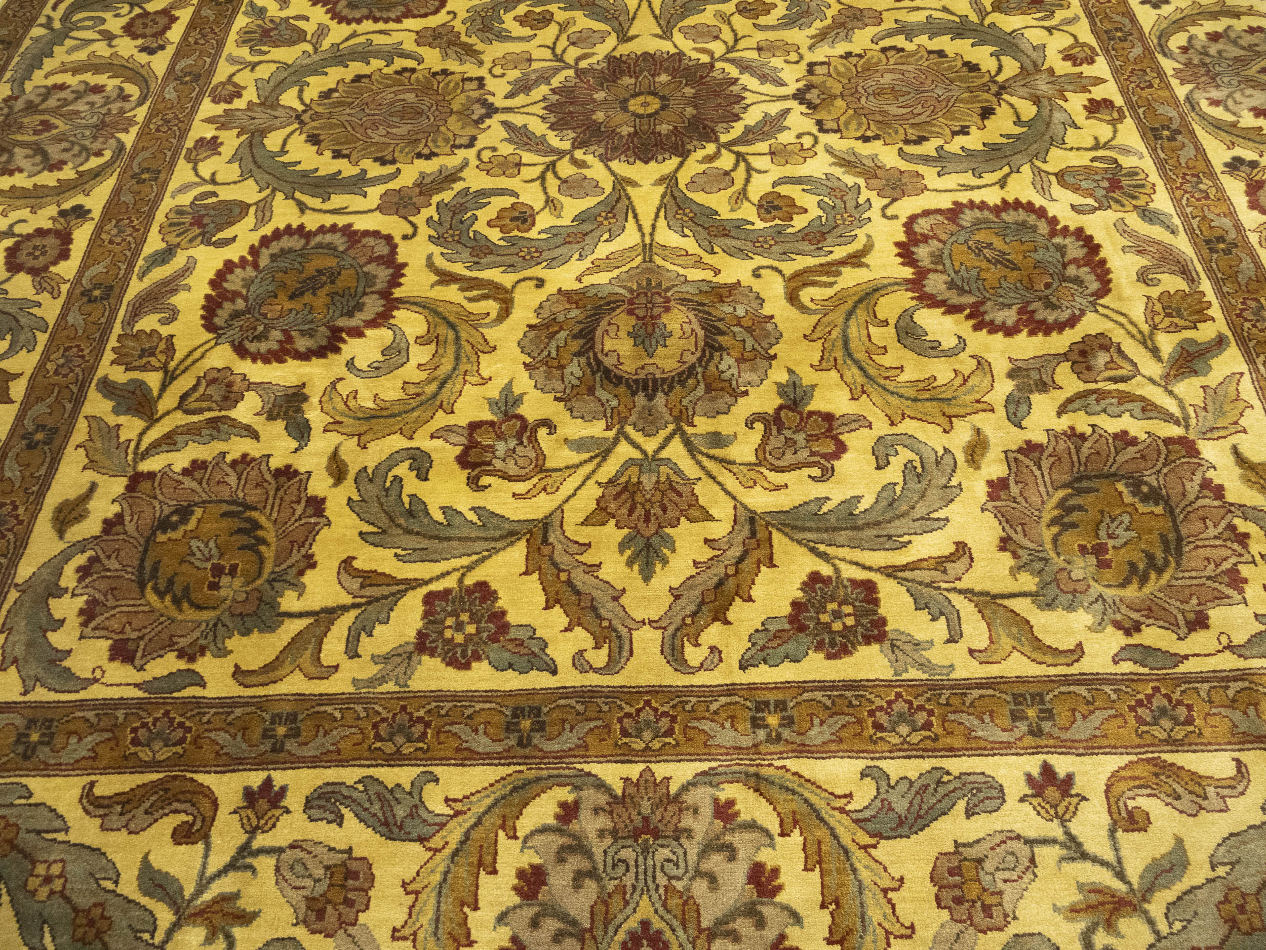 Handmade 8X10 Golden Beige oriental rug made with vegetable dyes (fine wool pile and cotton foundation), exceptional knot count, and appealing ancient designs. This Oriental rug never will go out of style and would be among your most valuable treasures.