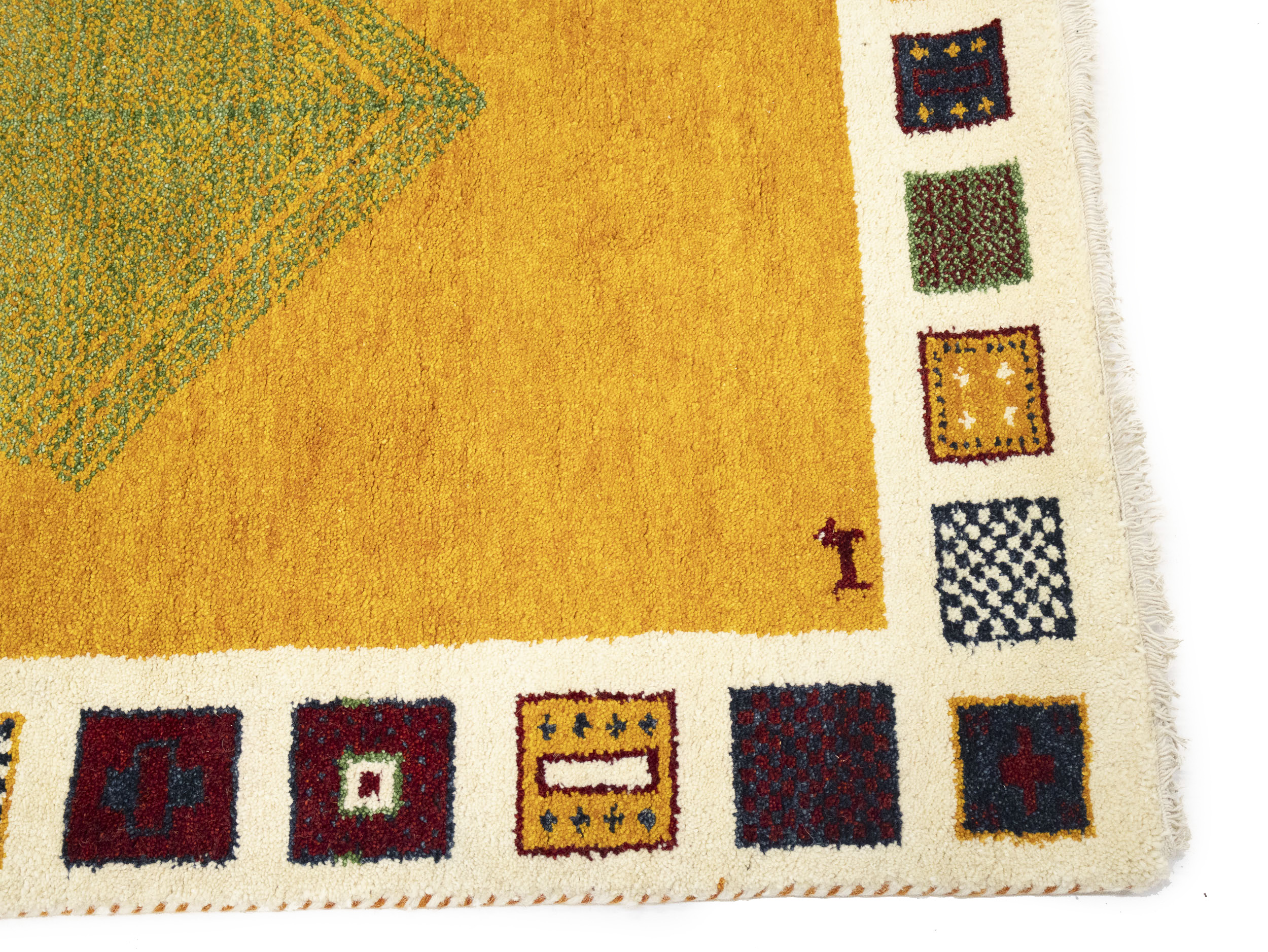 Golden Yellow Bordered 4X6 Indo-Gabbeh Oriental Rug