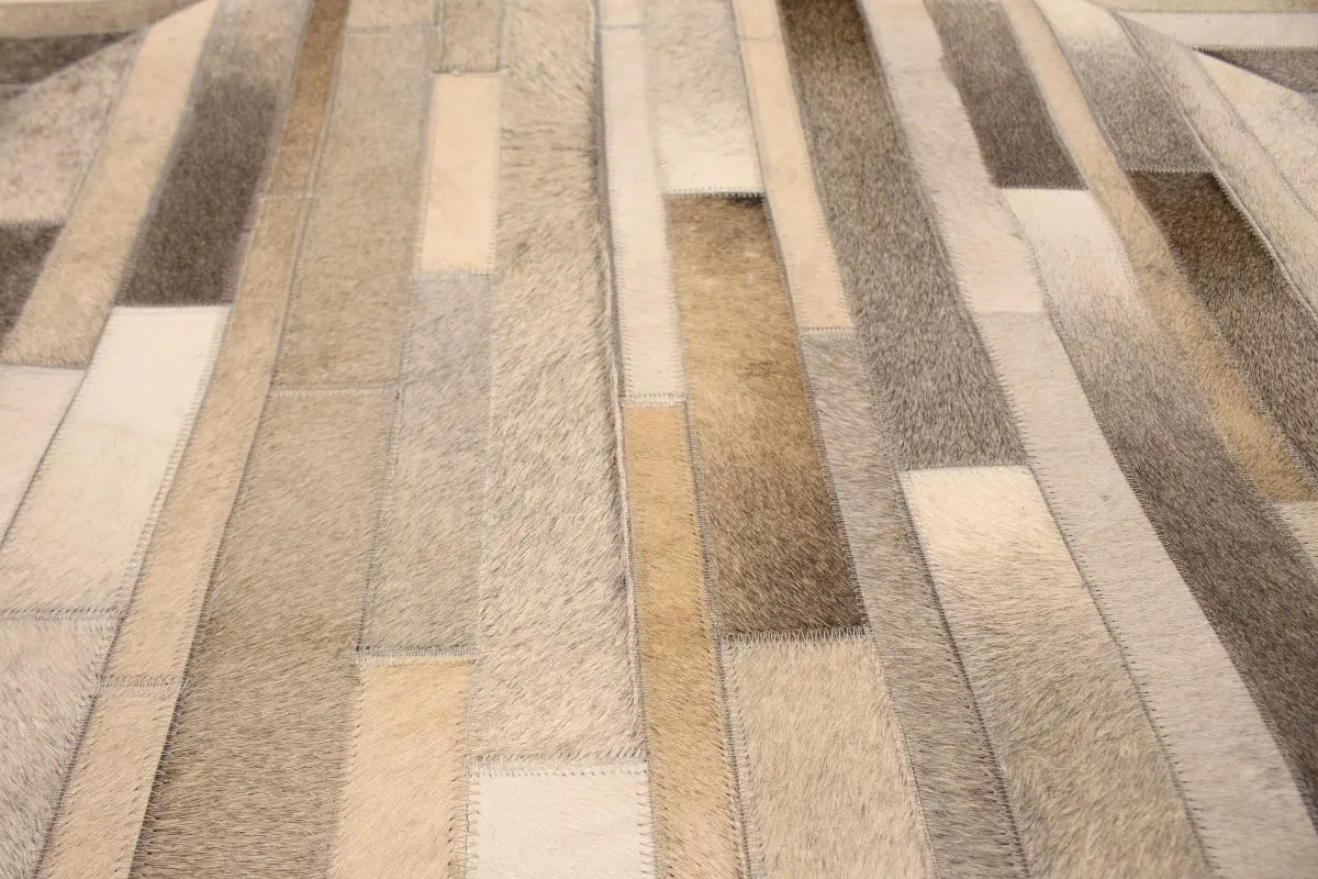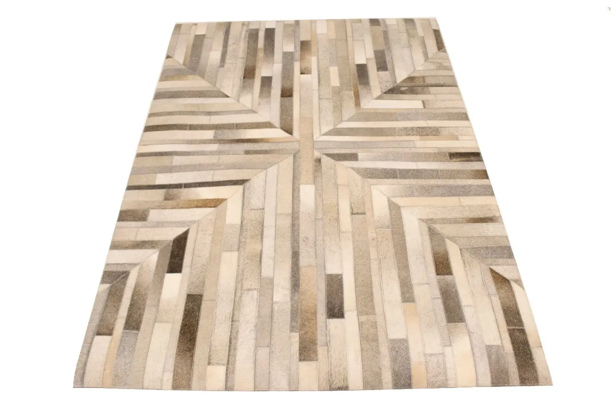 Hand-Crafted Modern Design Gray Cowhide 4X6 Modern Leather Rug Home Decor Carpet