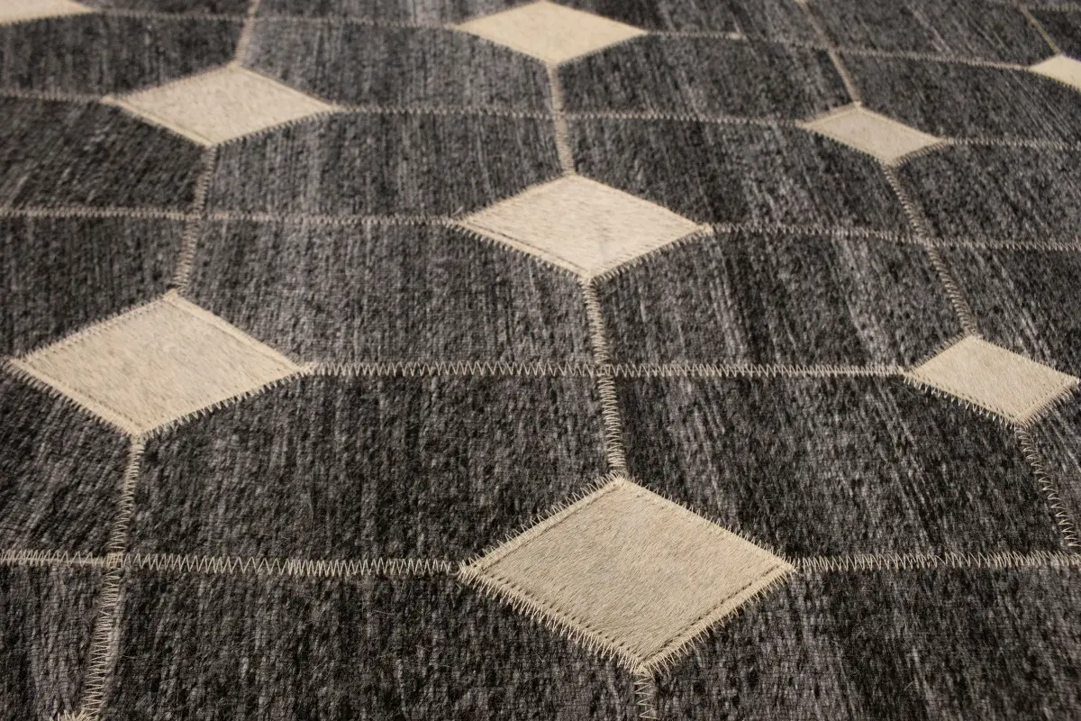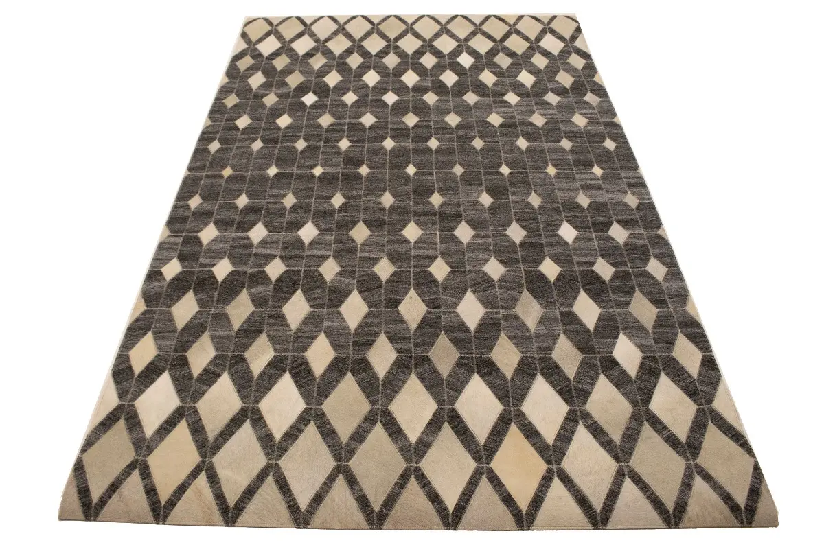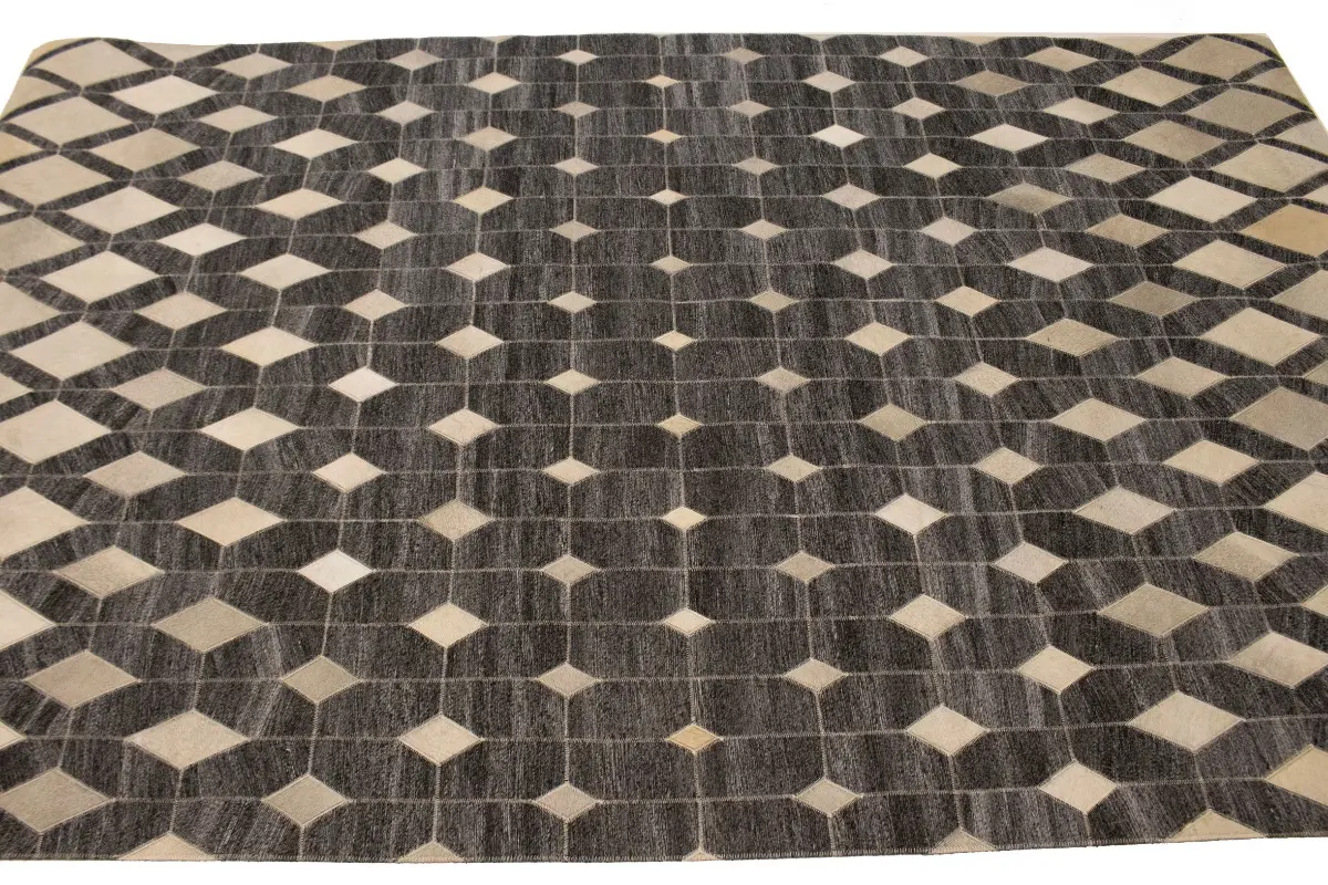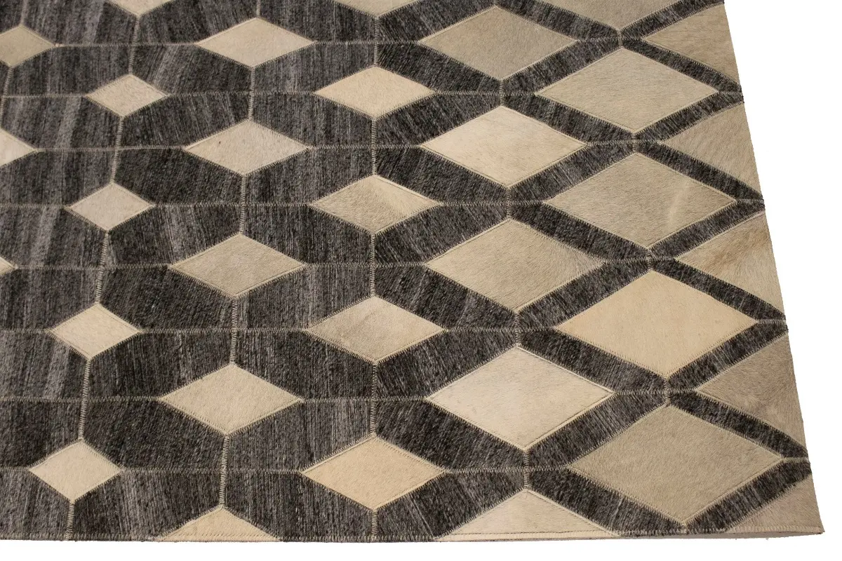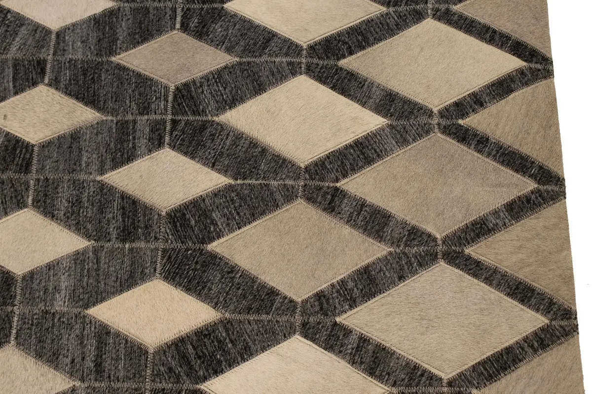 Gray Modern Cowhide Rug Geometric 5X8 Faux Leather Hand-Stitched Decor Carpet