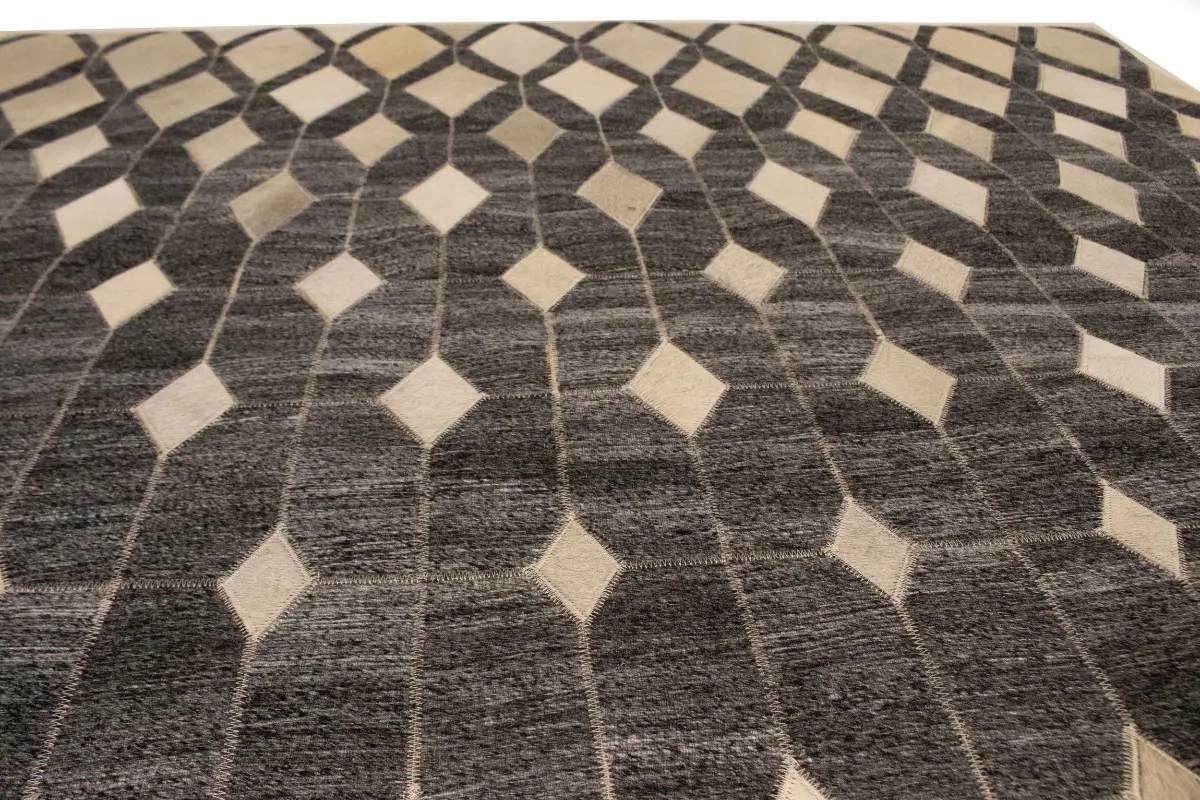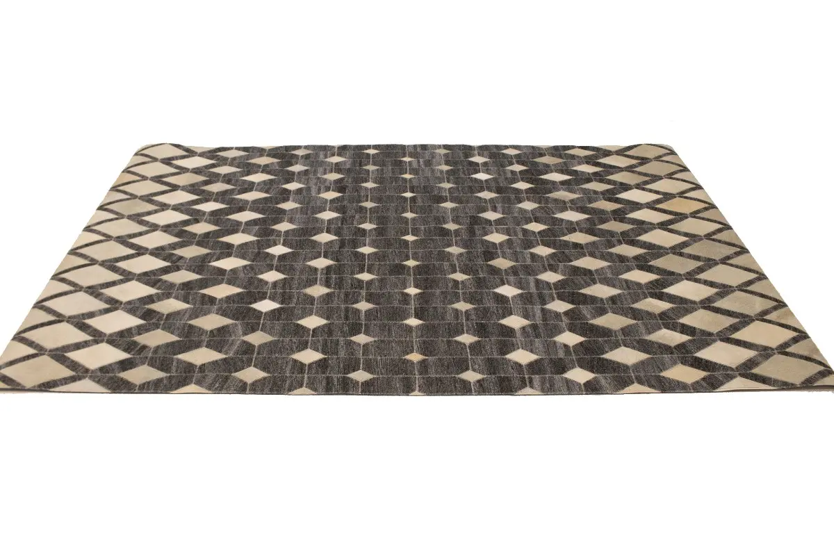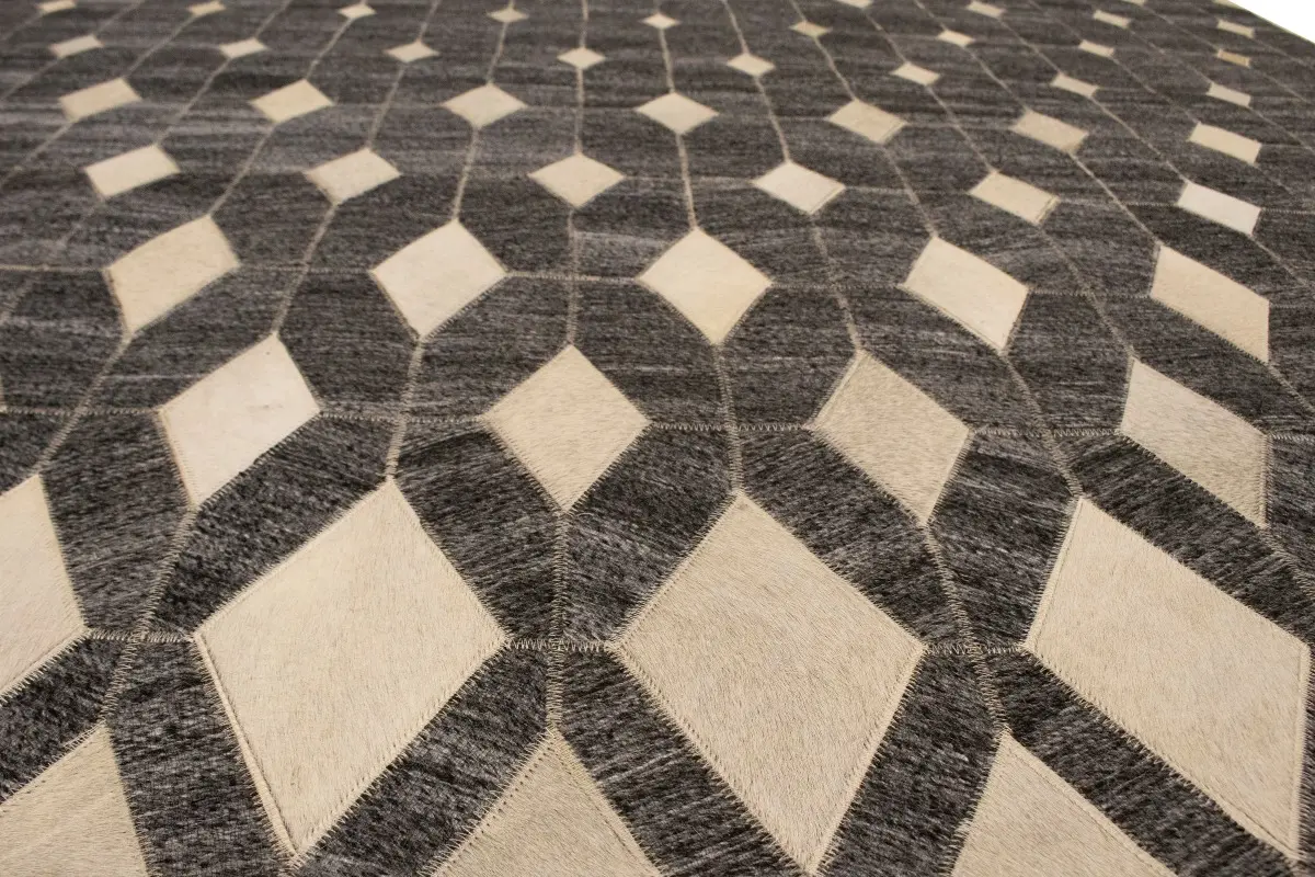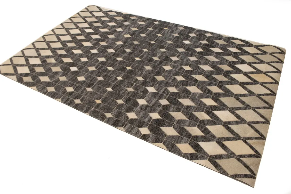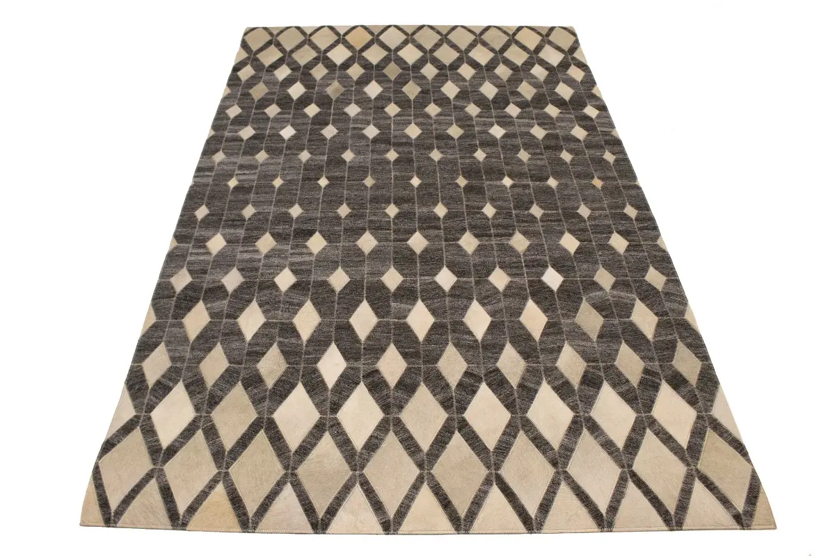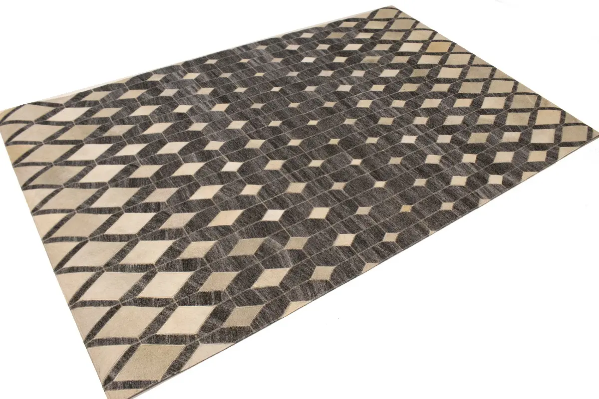 Gray Modern Cowhide Rug Geometric 5X8 Faux Leather Hand-Stitched Decor Carpet
