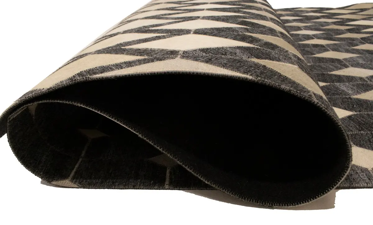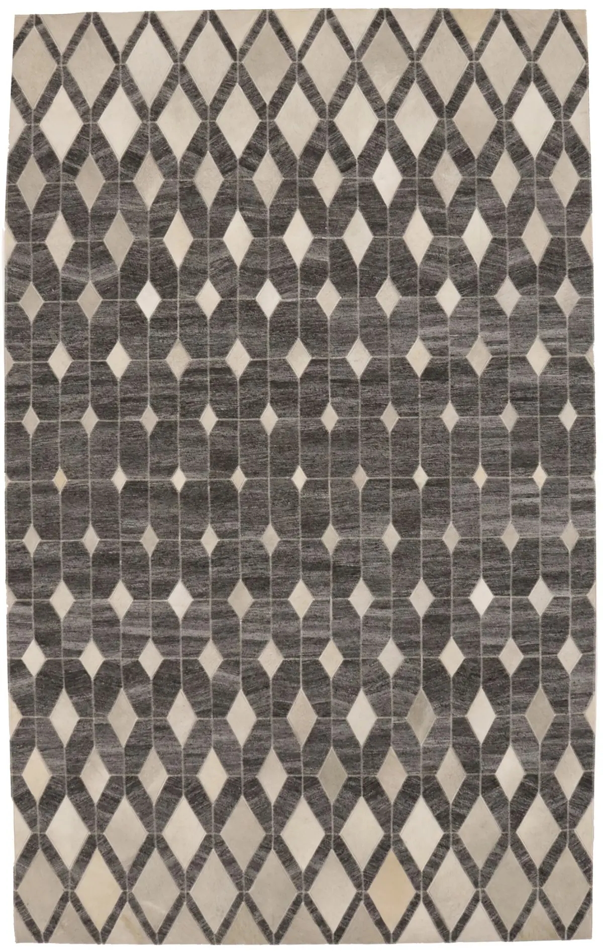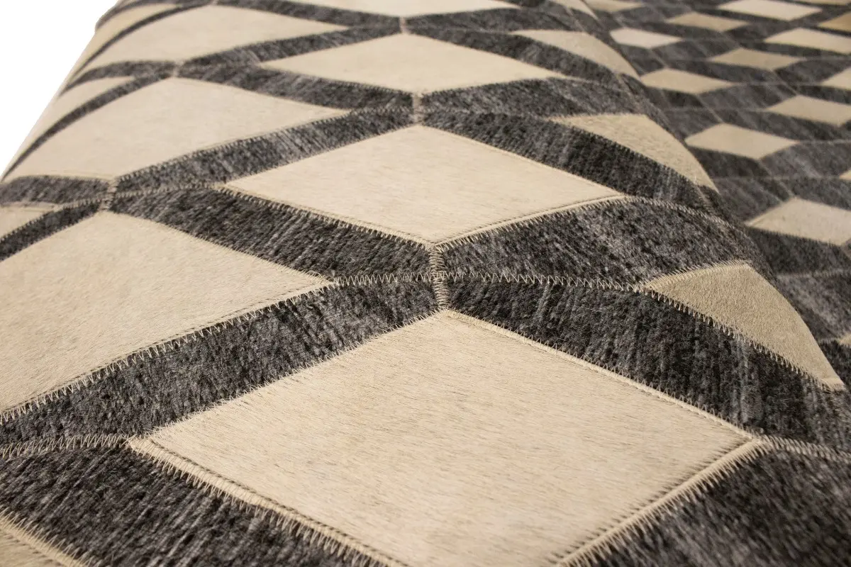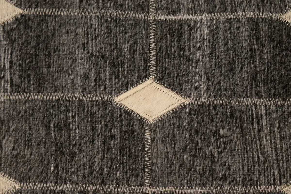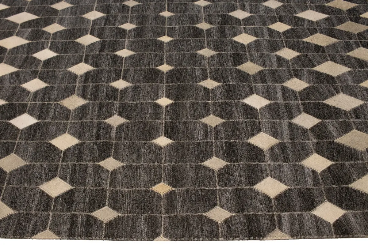 Gray Modern Cowhide Rug Geometric 5X8 Faux Leather Hand-Stitched Decor Carpet