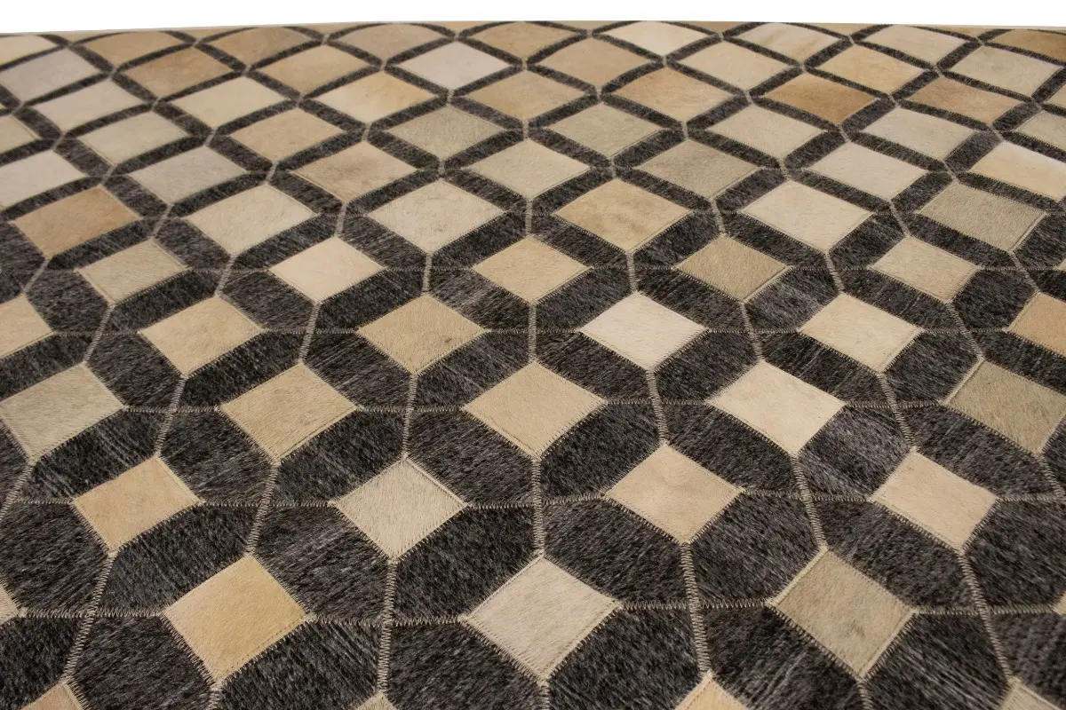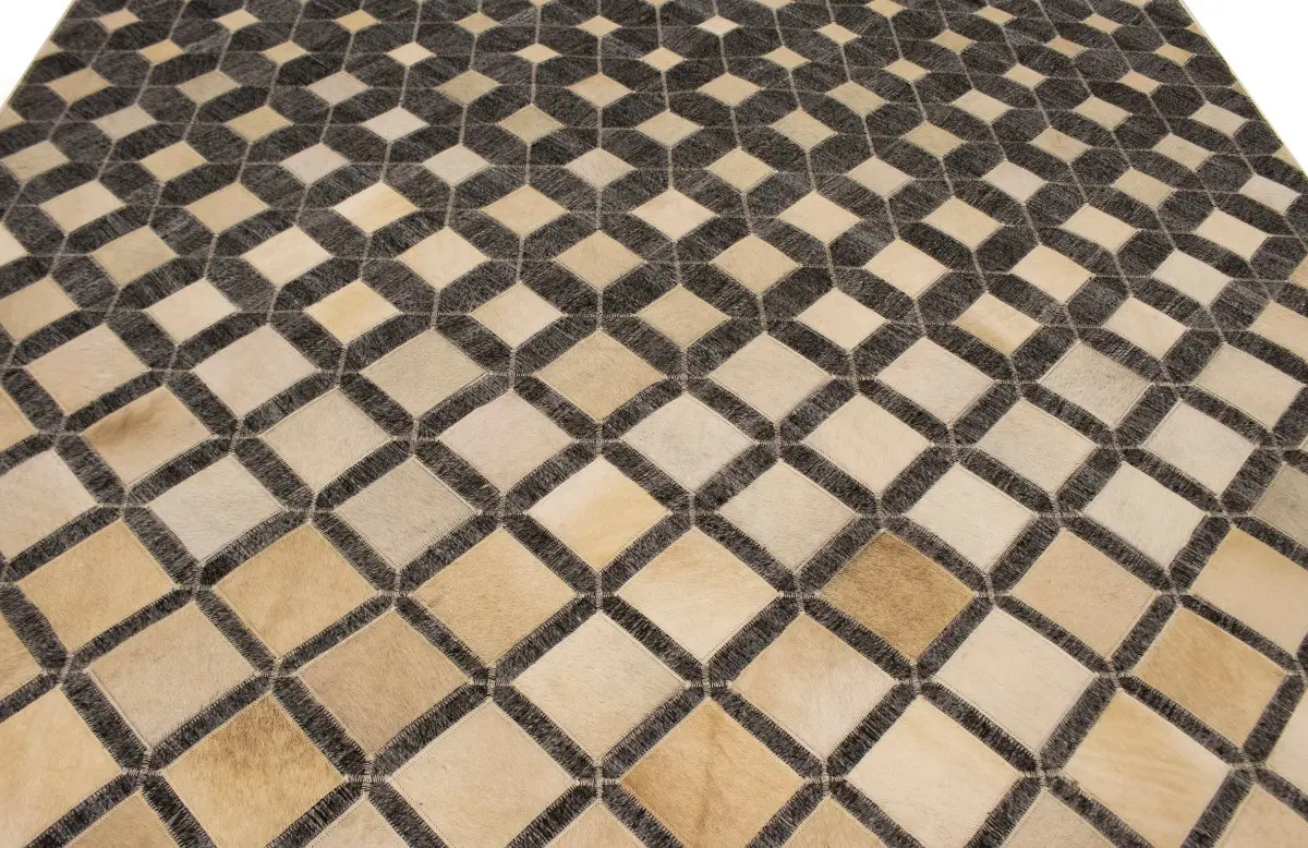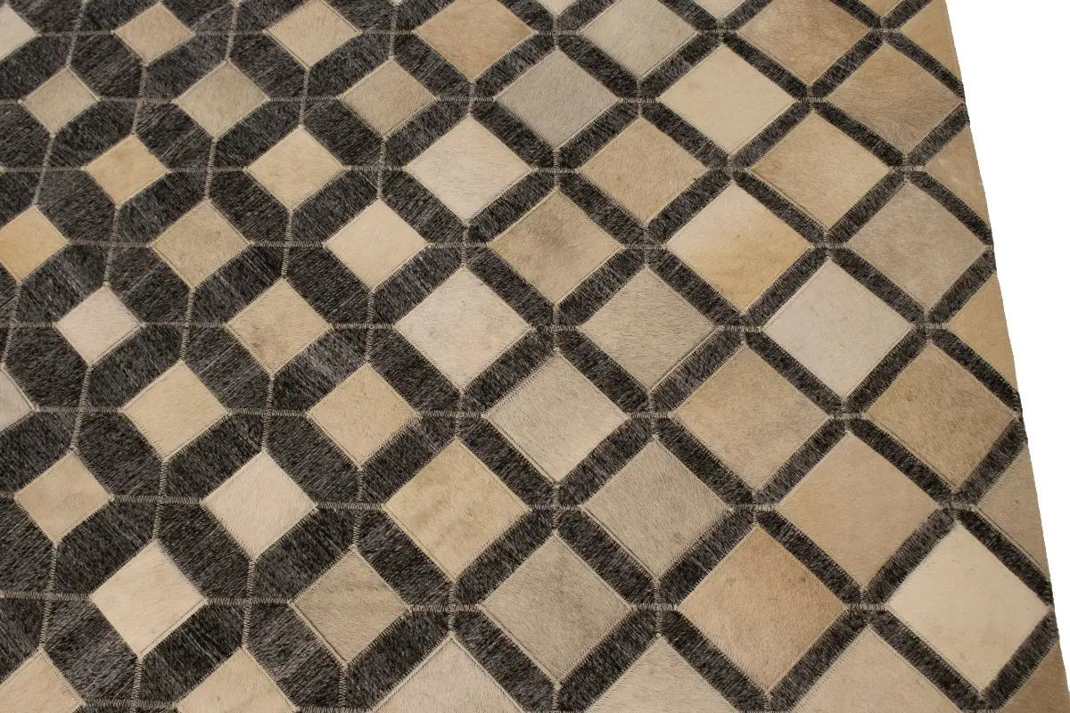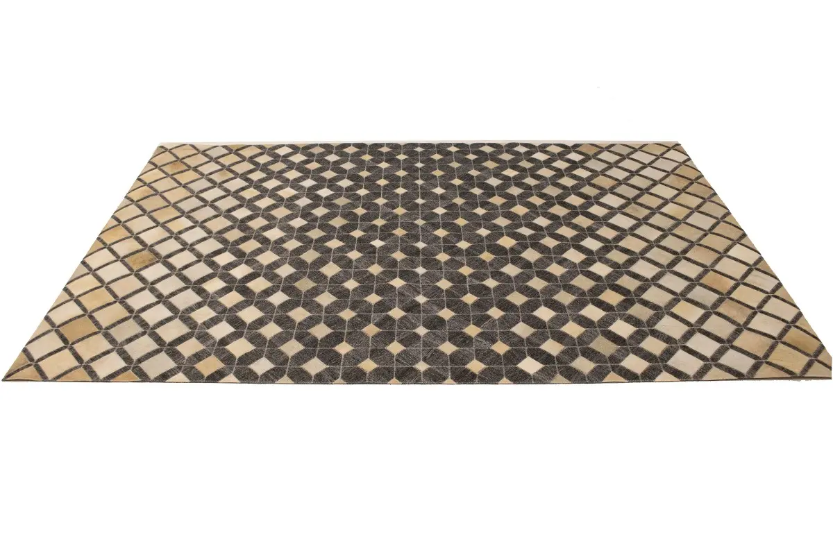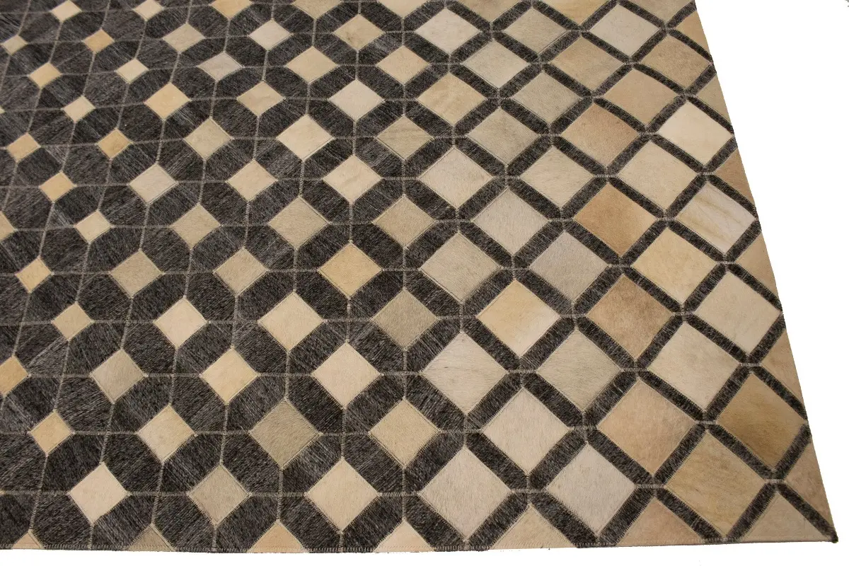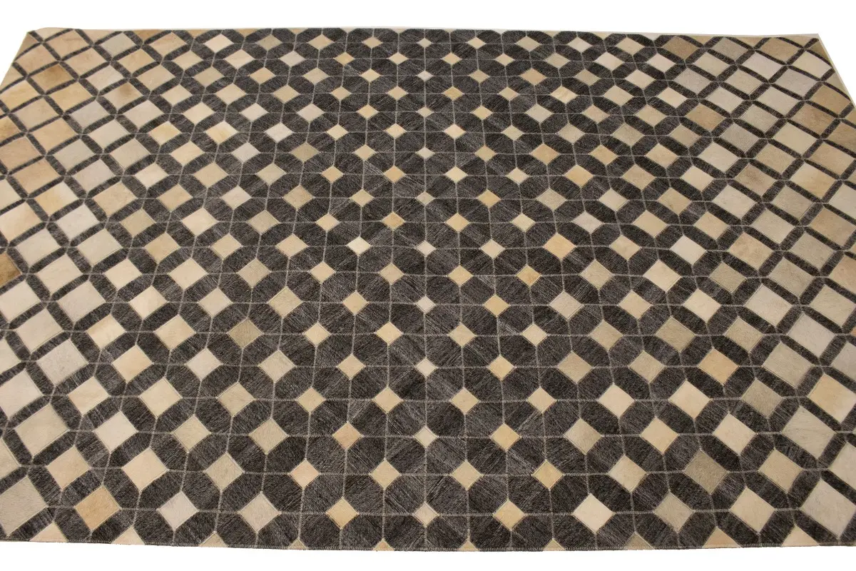 Geometric Modern Design Faux Leather 5X8 Cowhide Rug Hand-Stitched Decor Carpet