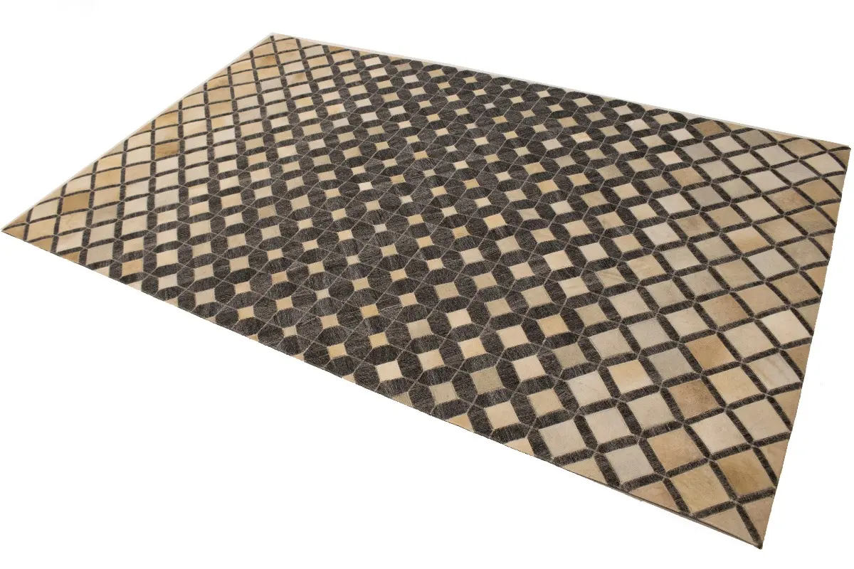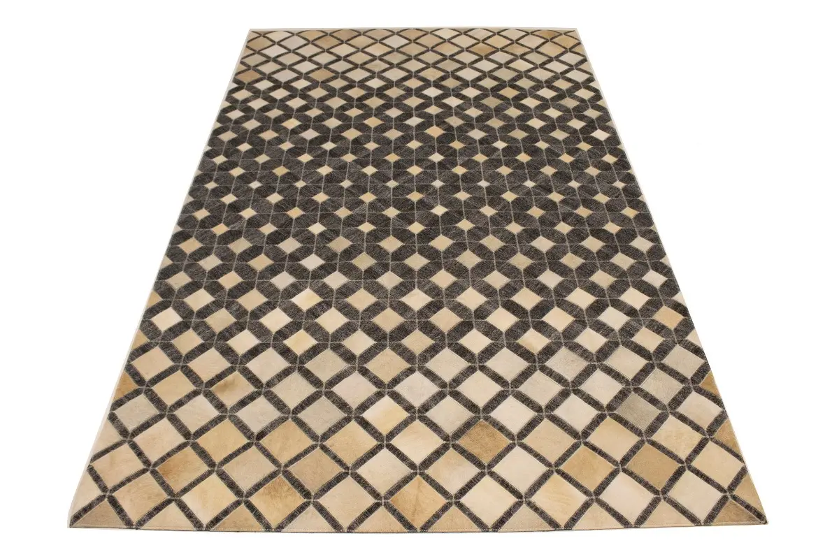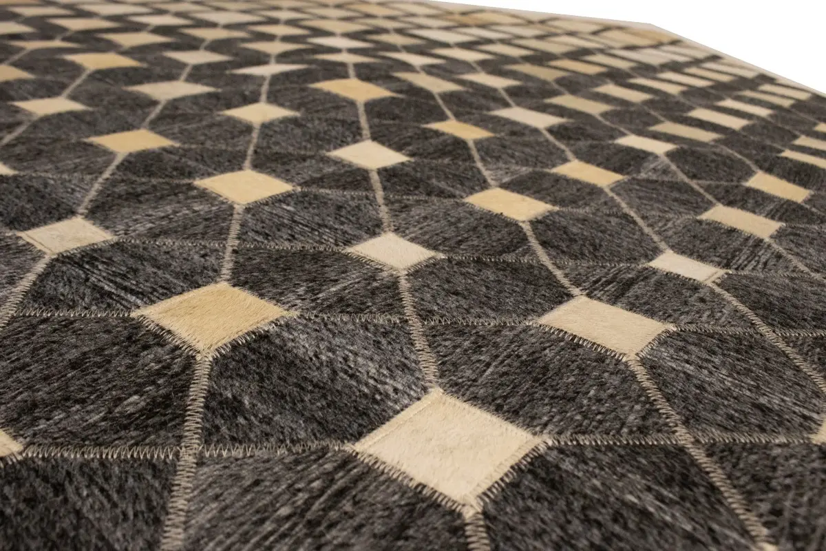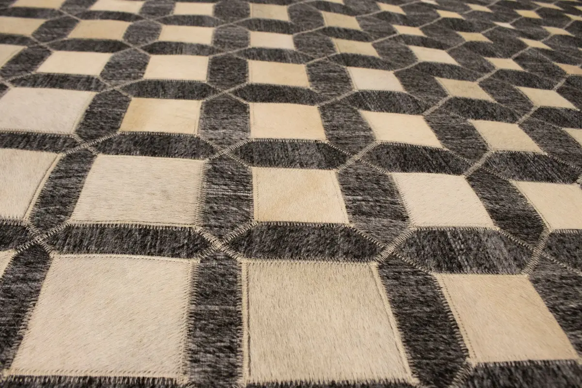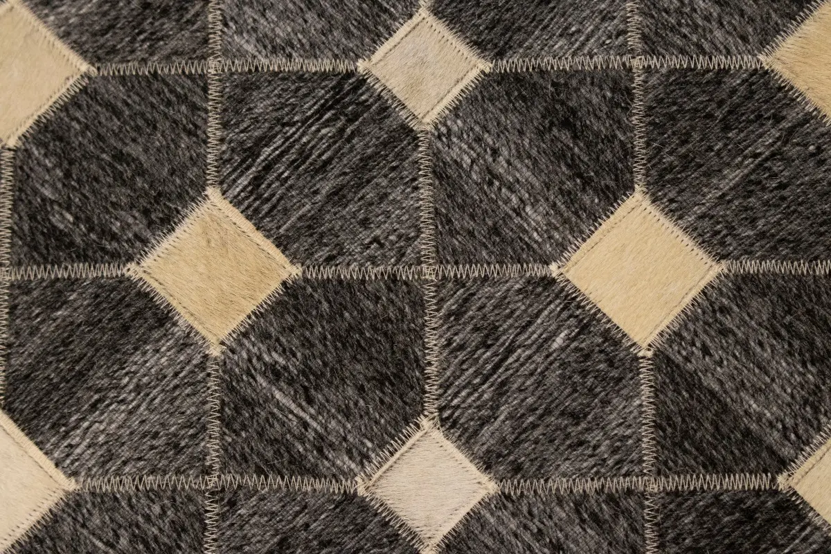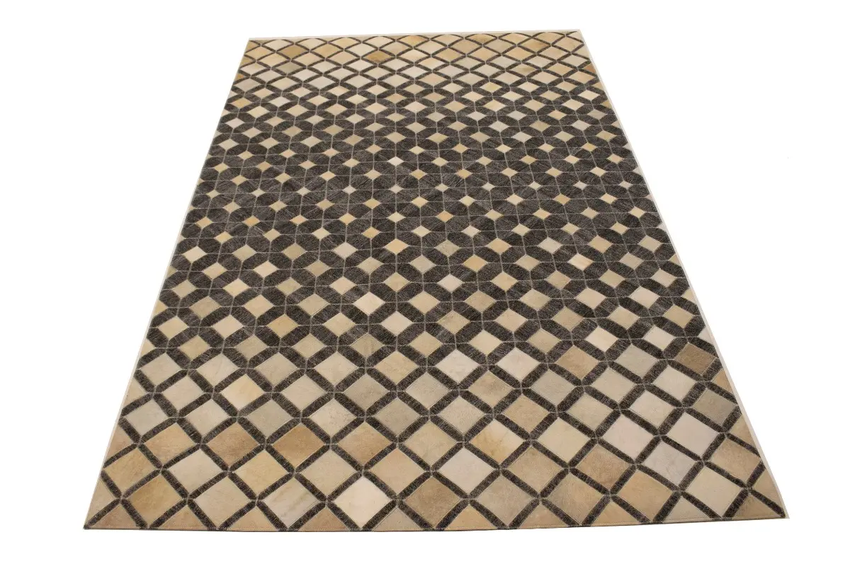 Geometric Modern Design Faux Leather 5X8 Cowhide Rug Hand-Stitched Decor Carpet