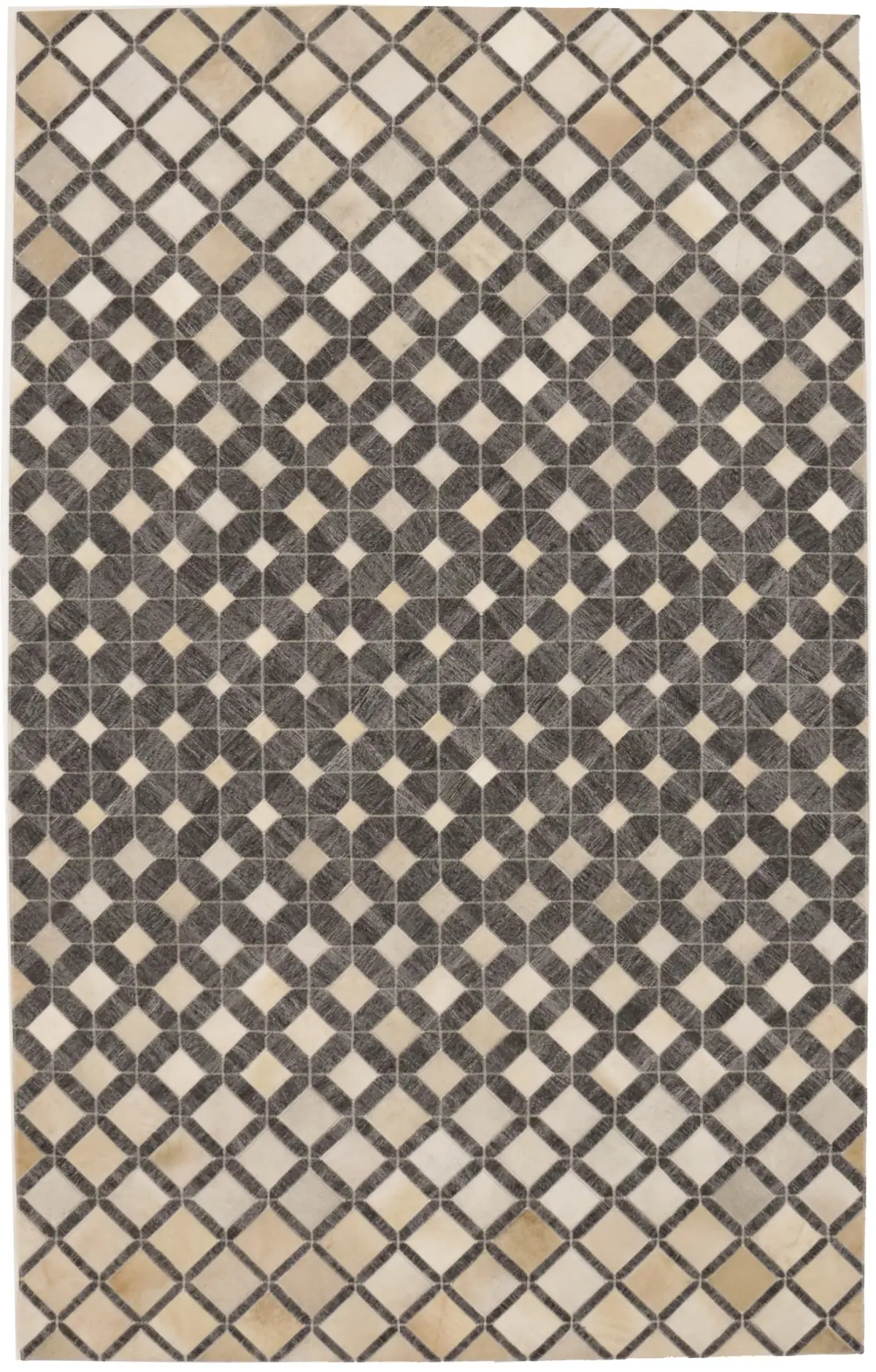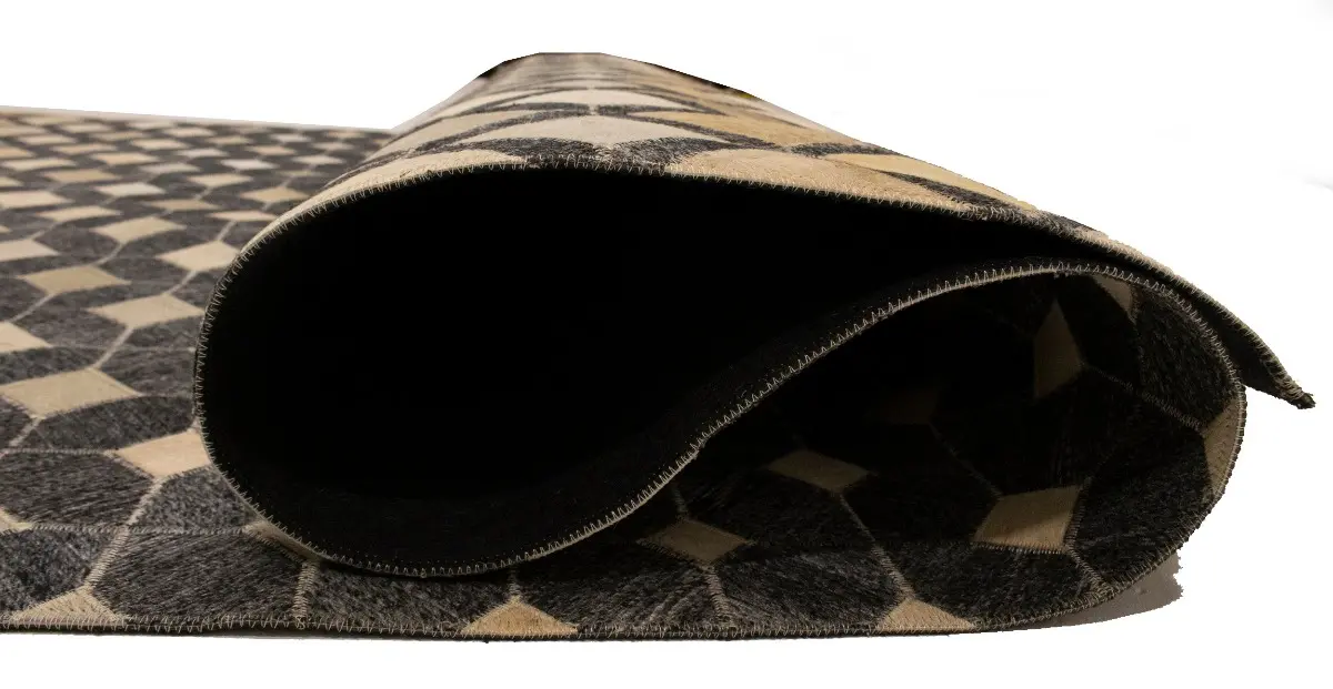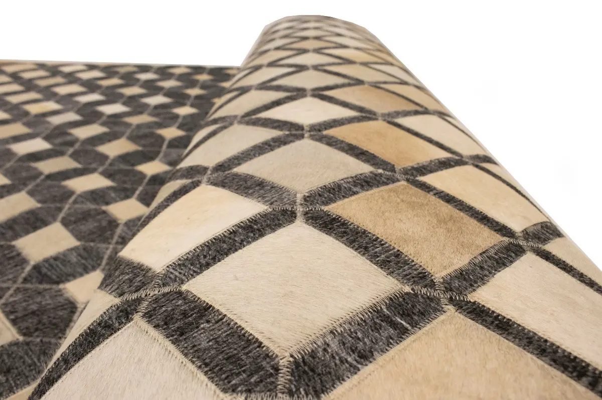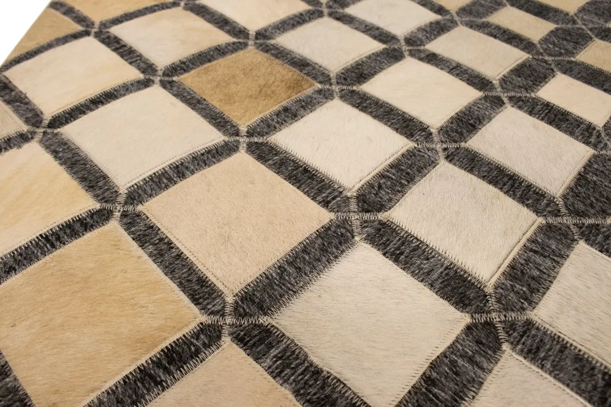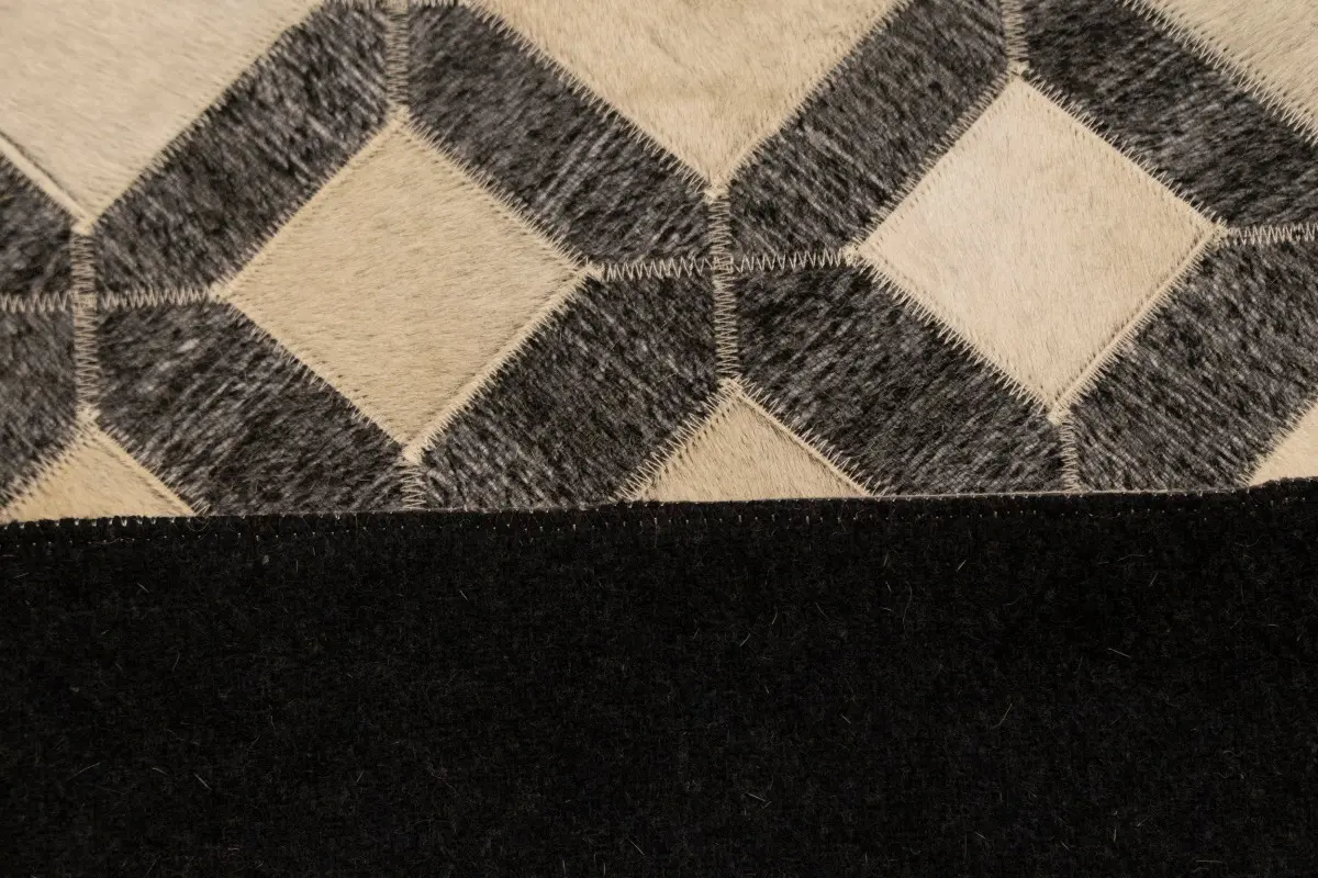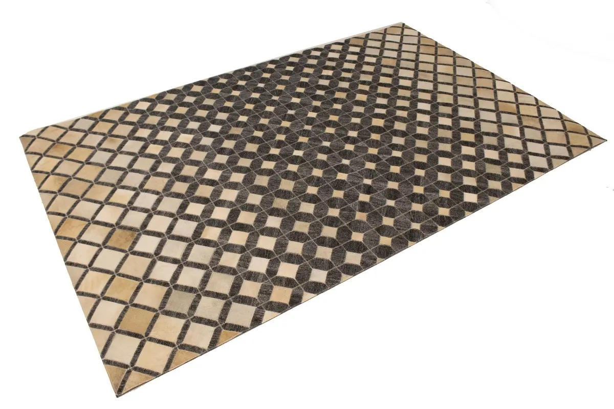 Geometric Modern Design Faux Leather 5X8 Cowhide Rug Hand-Stitched Decor Carpet