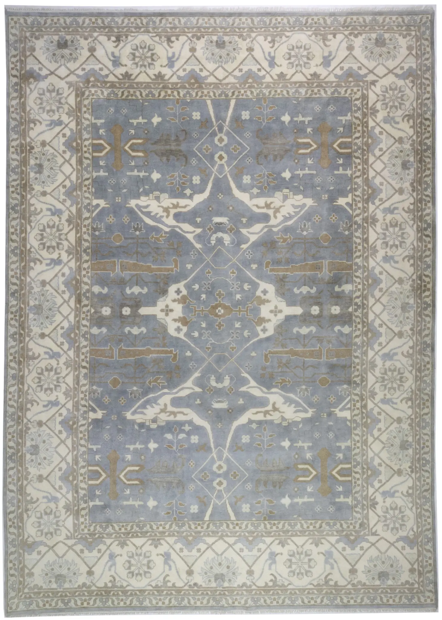 Handmade 13X18 gray oriental rug made with vegetable dyes (fine wool pile and cotton foundation), superior knot count, and appealing ancient designs. This Oriental rug never will go out of style and would be among your most valuable treasures.