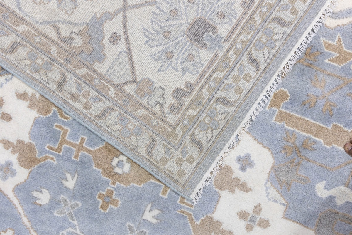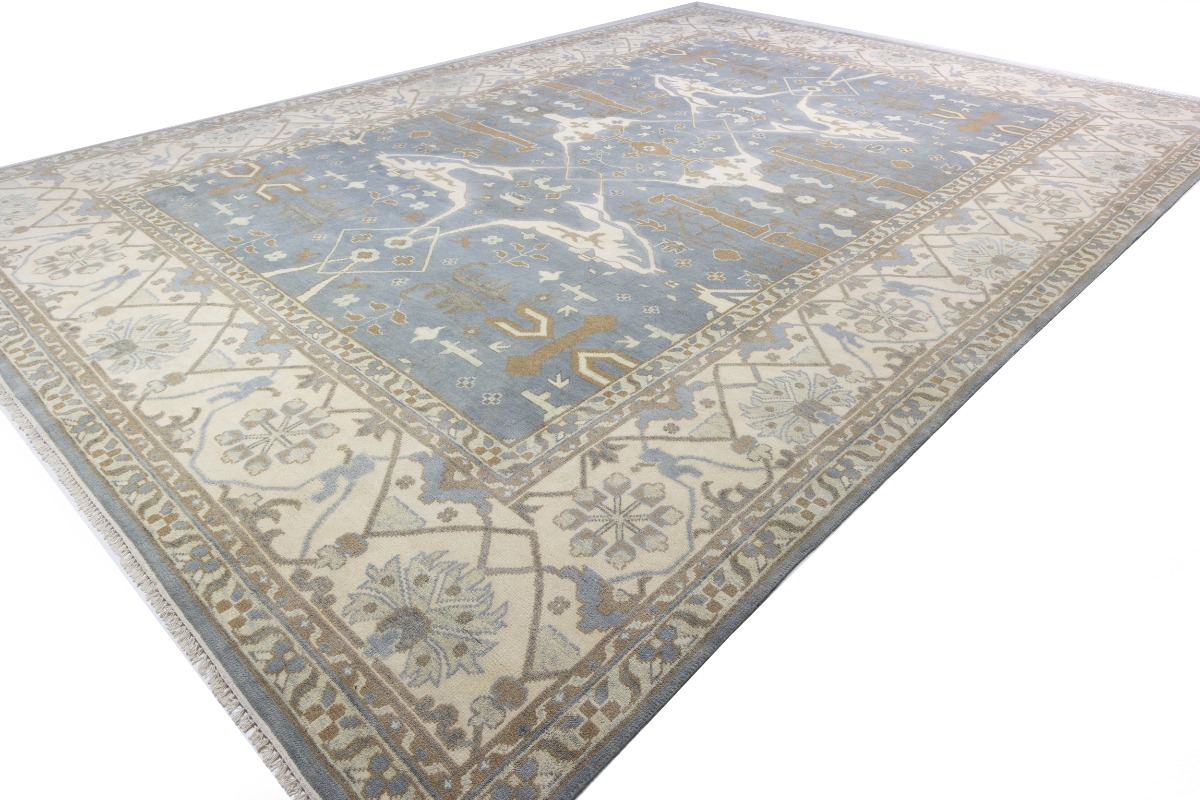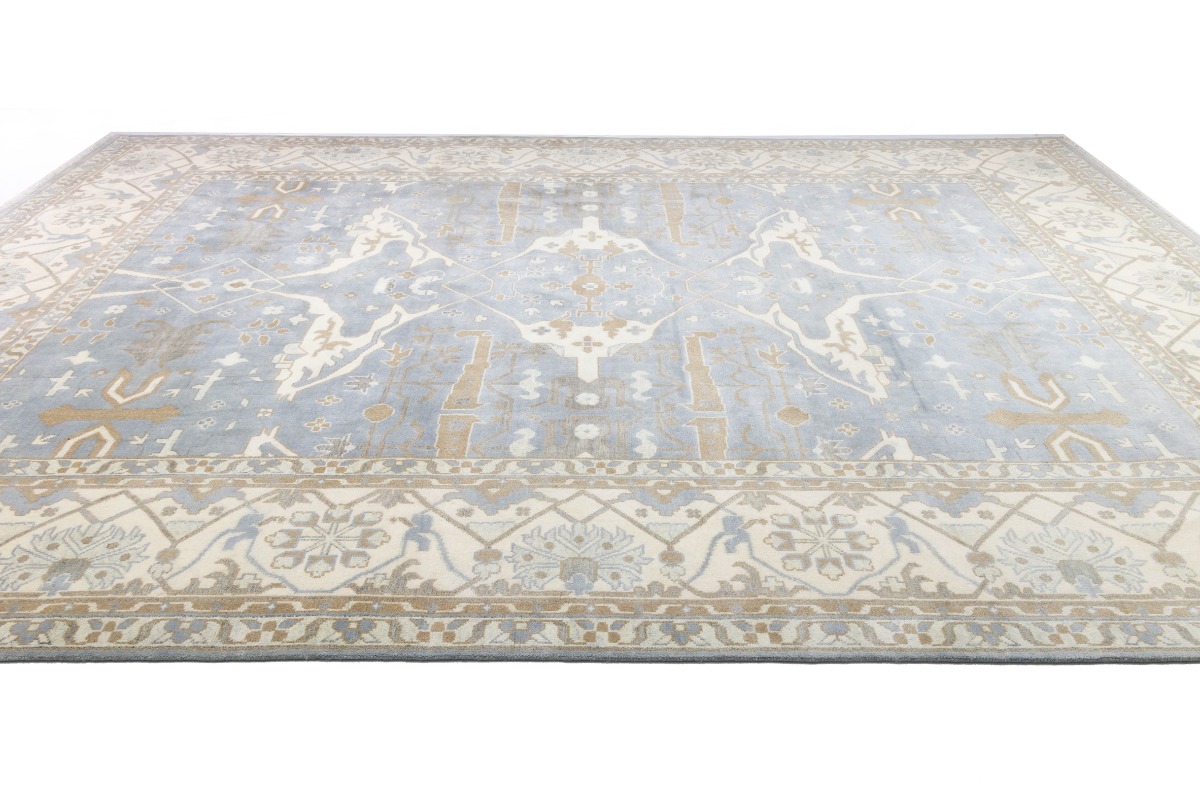 This genuine 13X18 gray new Oriental rug was made by the hands of gifted weavers inspired by a variety of spectacular artistic designs, to recreate the aged look of the original piece with a richness of color and ornately patterned background field. What set this vintage style Oriental area rug from the others are the material and dye used (wool pile and cotton foundation), knot count, ancient designs, fantastic grades, and its regional historical connection: it has deep roots, from the story of the people who produced it to the meaning of the symbols and colors displayed across its canvas that have been praised for centuries. This Indian home décor carpet will be completely cozy and inviting that never will go out of style! Also, this Oriental rug would be among your most valuable treasures, it is a great investment that accrues value over time, and it will last for generations because was woven with high-quality, all-natural wool. Environmentally friendly, opulent yet affordable; this rug will give you a thorough amount of character to help define your living space with elegance and warmth that will capture the eyes and attention of your audience (homeowners, designers, decorators, family and friends). OT-7555