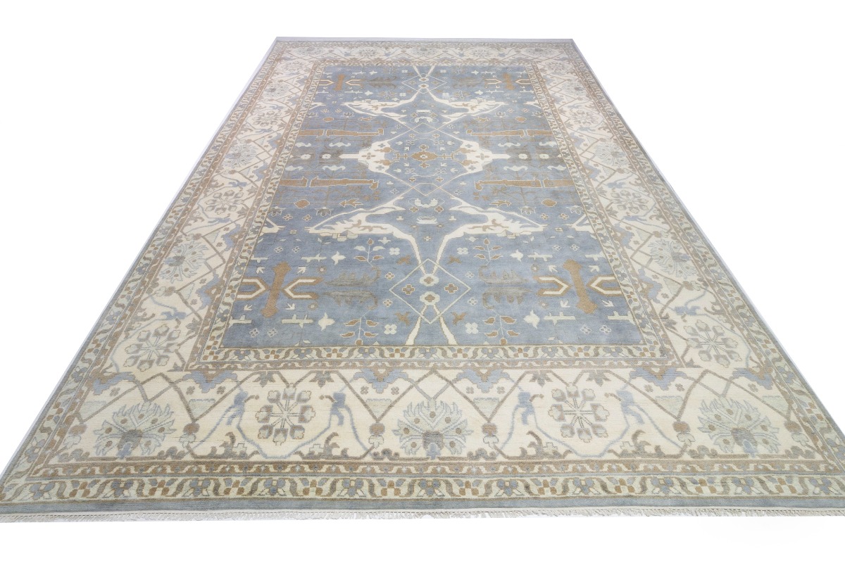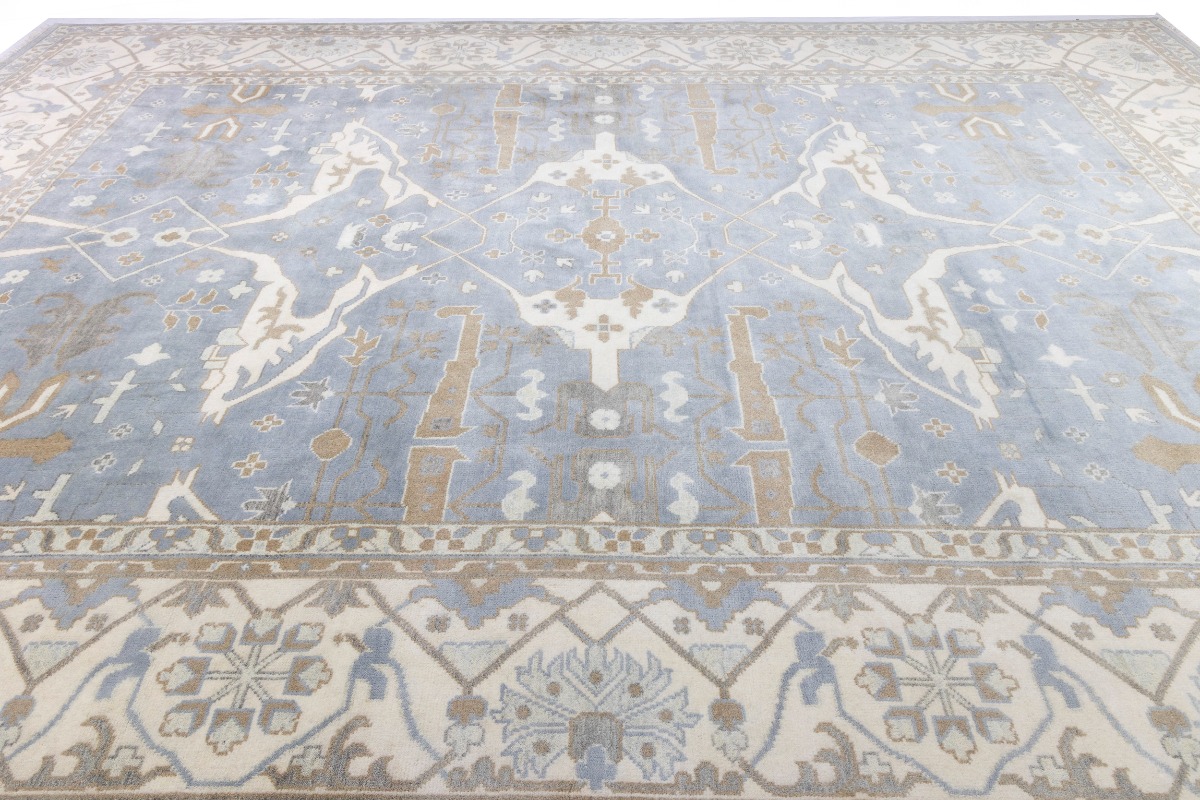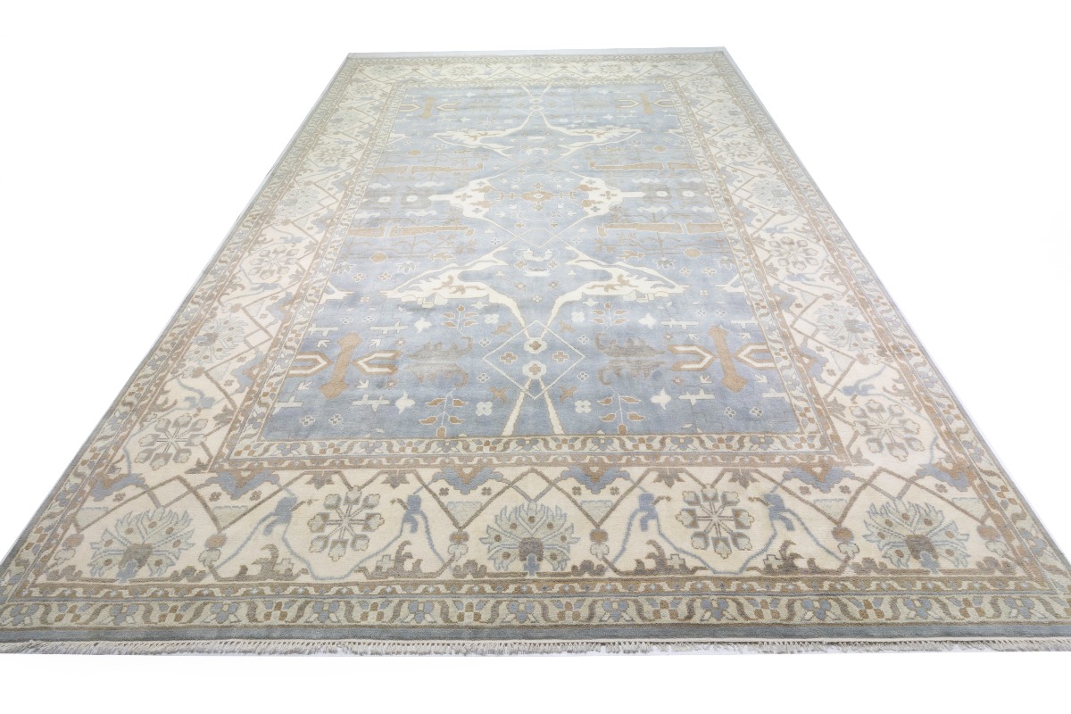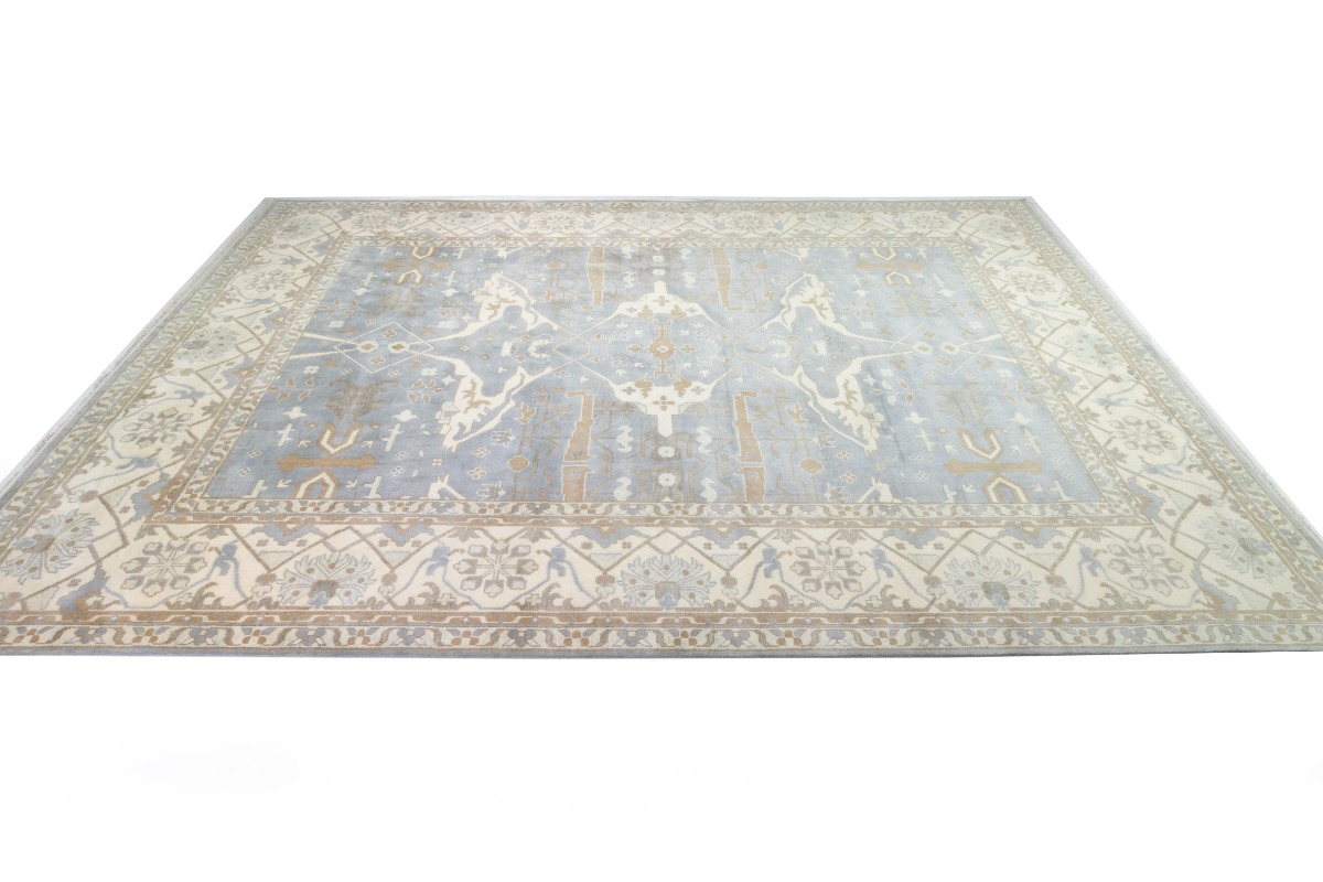This genuine 13X18 gray new Oriental rug was made by the hands of gifted weavers inspired by a variety of spectacular artistic designs, to recreate the aged look of the original piece with a richness of color and ornately patterned background field. What set this vintage style Oriental area rug from the others are the material and dye used (wool pile and cotton foundation), knot count, ancient designs, fantastic grades, and its regional historical connection: it has deep roots, from the story of the people who produced it to the meaning of the symbols and colors displayed across its canvas that have been praised for centuries. This Indian home décor carpet will be completely cozy and inviting that never will go out of style! Also, this Oriental rug would be among your most valuable treasures, it is a great investment that accrues value over time, and it will last for generations because was woven with high-quality, all-natural wool. Environmentally friendly, opulent yet affordable; this rug will give you a thorough amount of character to help define your living space with elegance and warmth that will capture the eyes and attention of your audience (homeowners, designers, decorators, family and friends). OT-7555