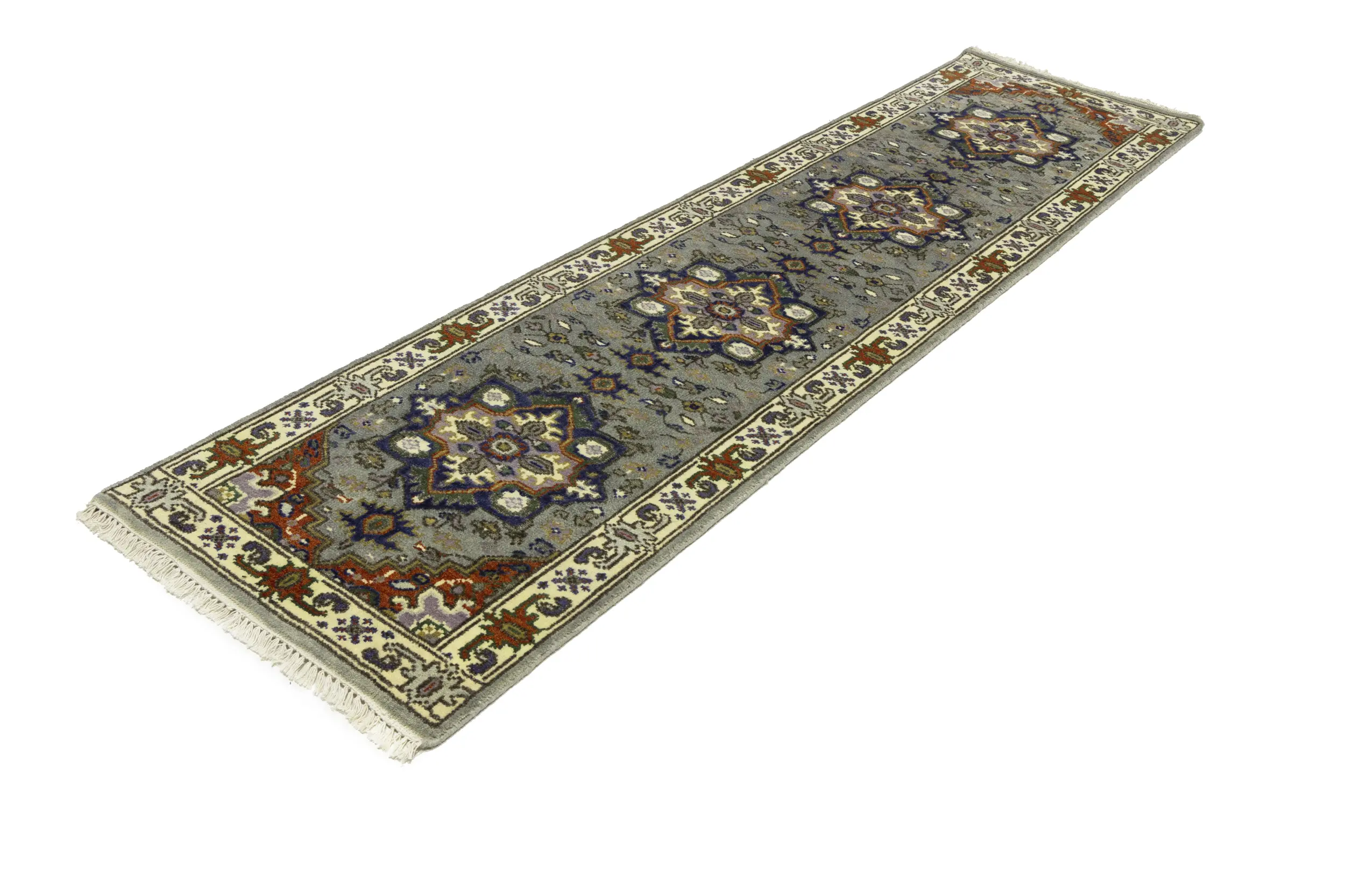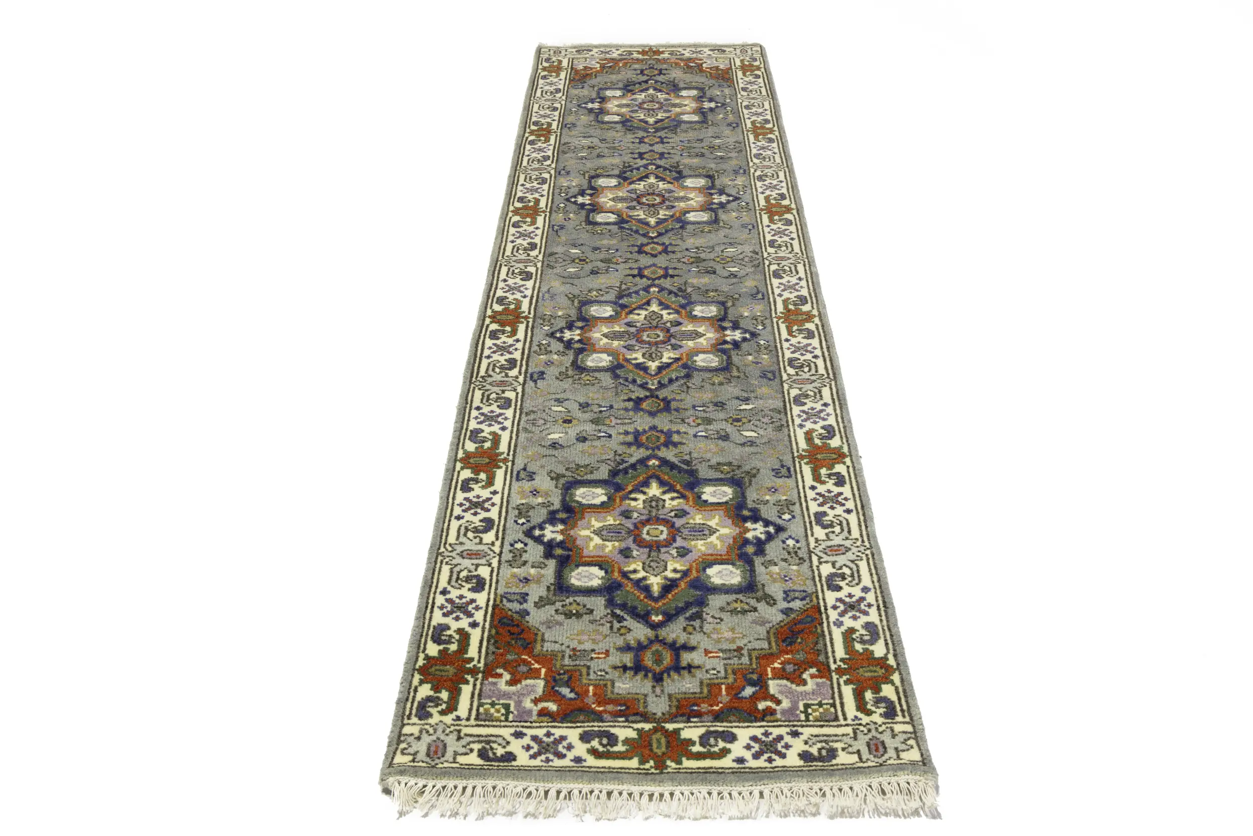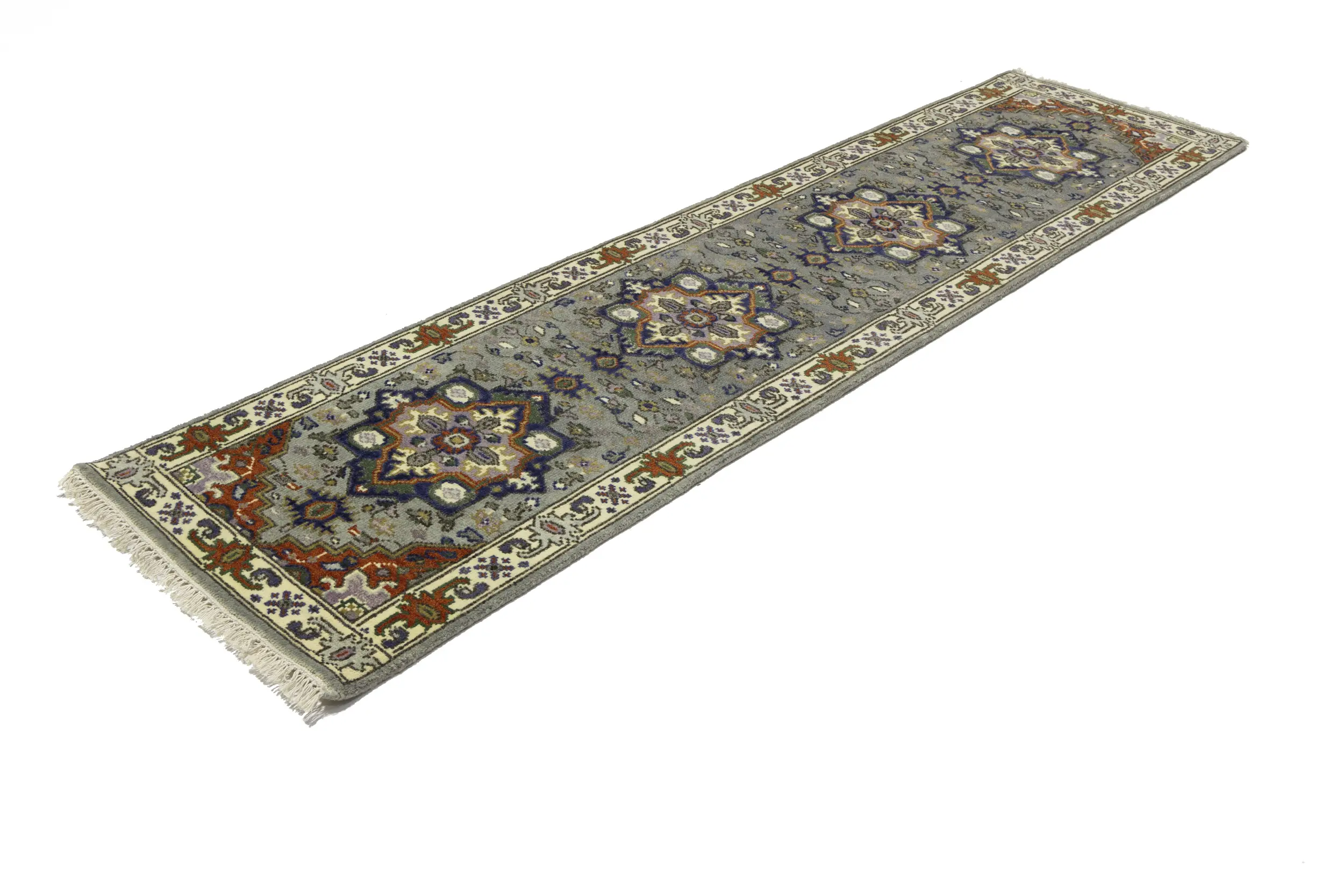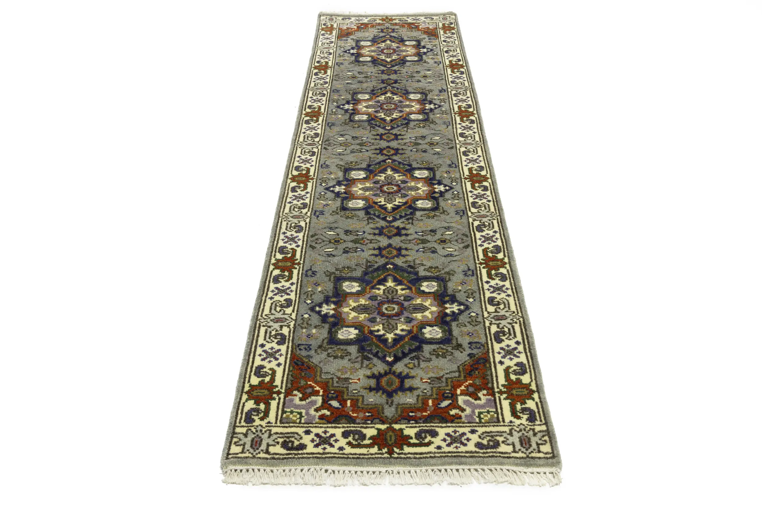 Handmade 2'7X10'2 gray Oriental runner made with vegetable dyes (fine wool pile and cotton foundation), superior knot count, and appealing ancient designs. This Oriental runner never will go out of style and would be among your most valuable treasures.